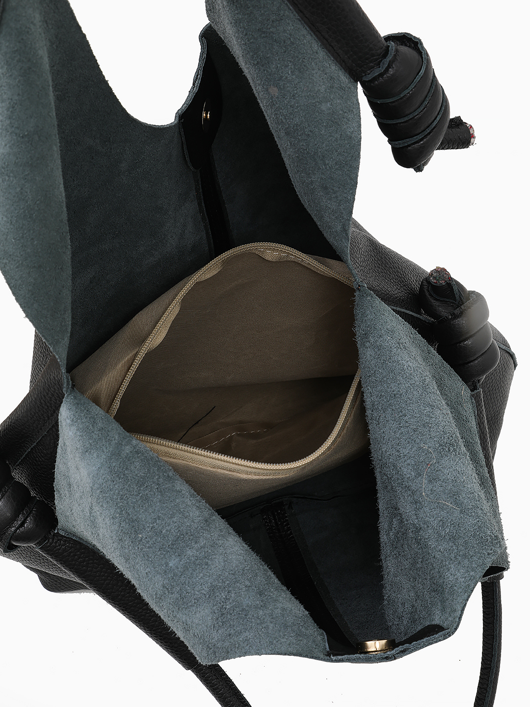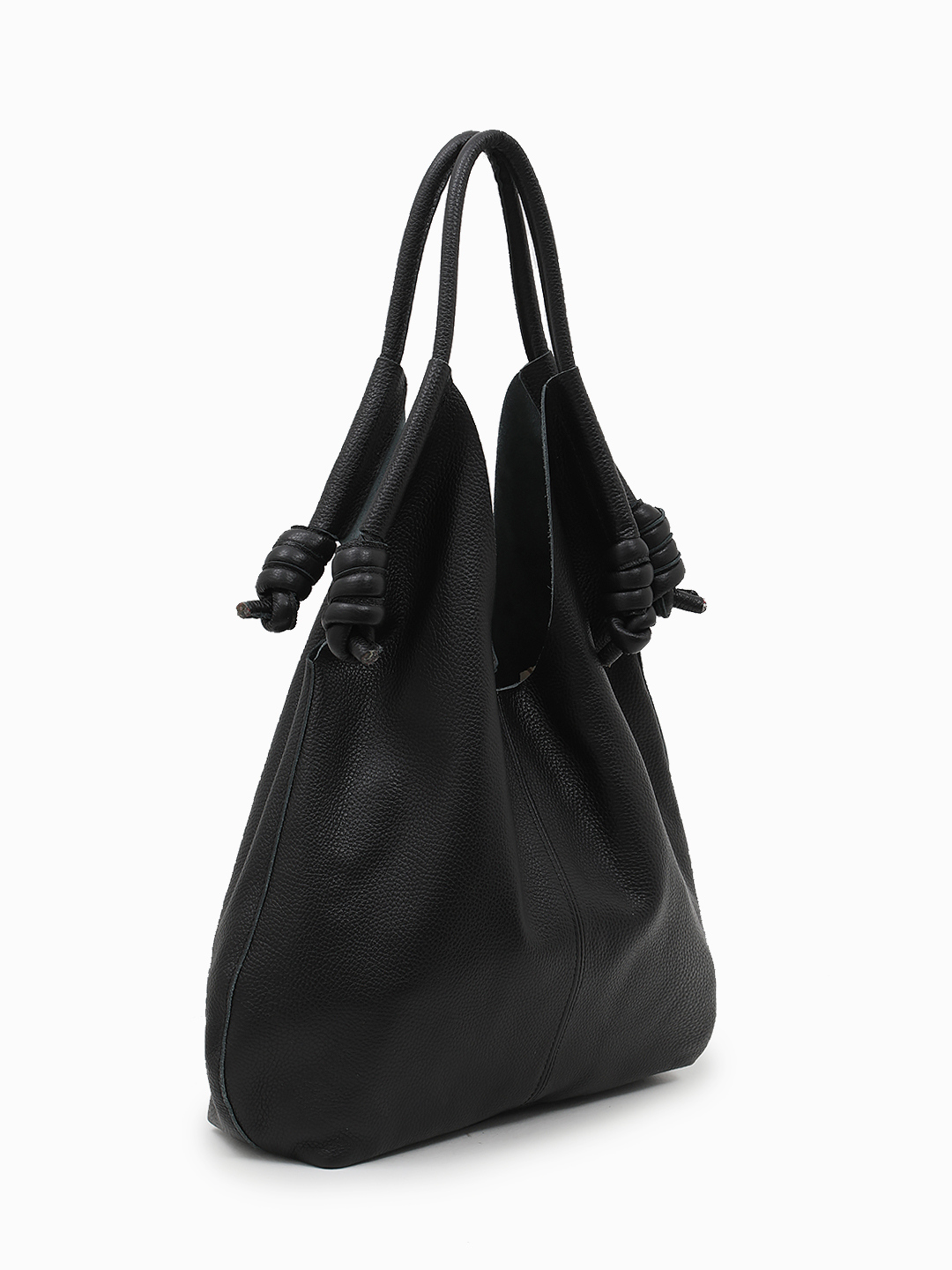 Чёрная сумка-мешок с кожаными узлами на ручках от FOLLE