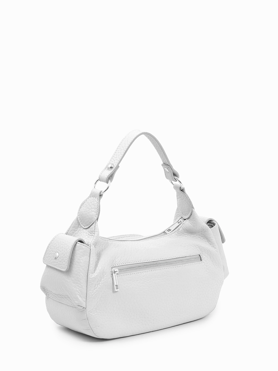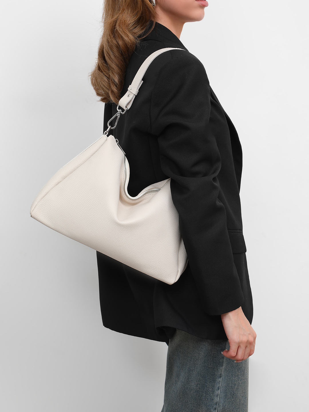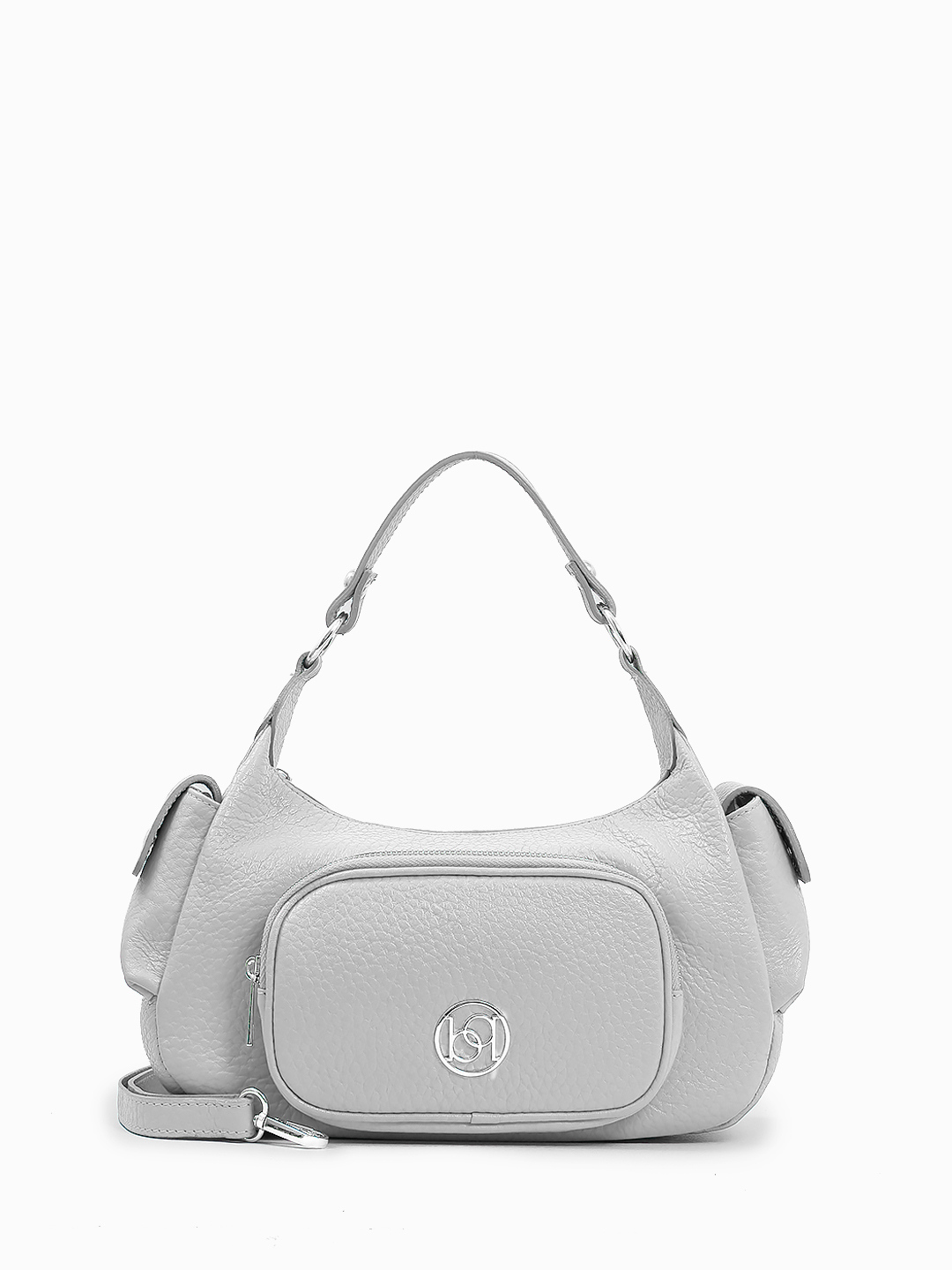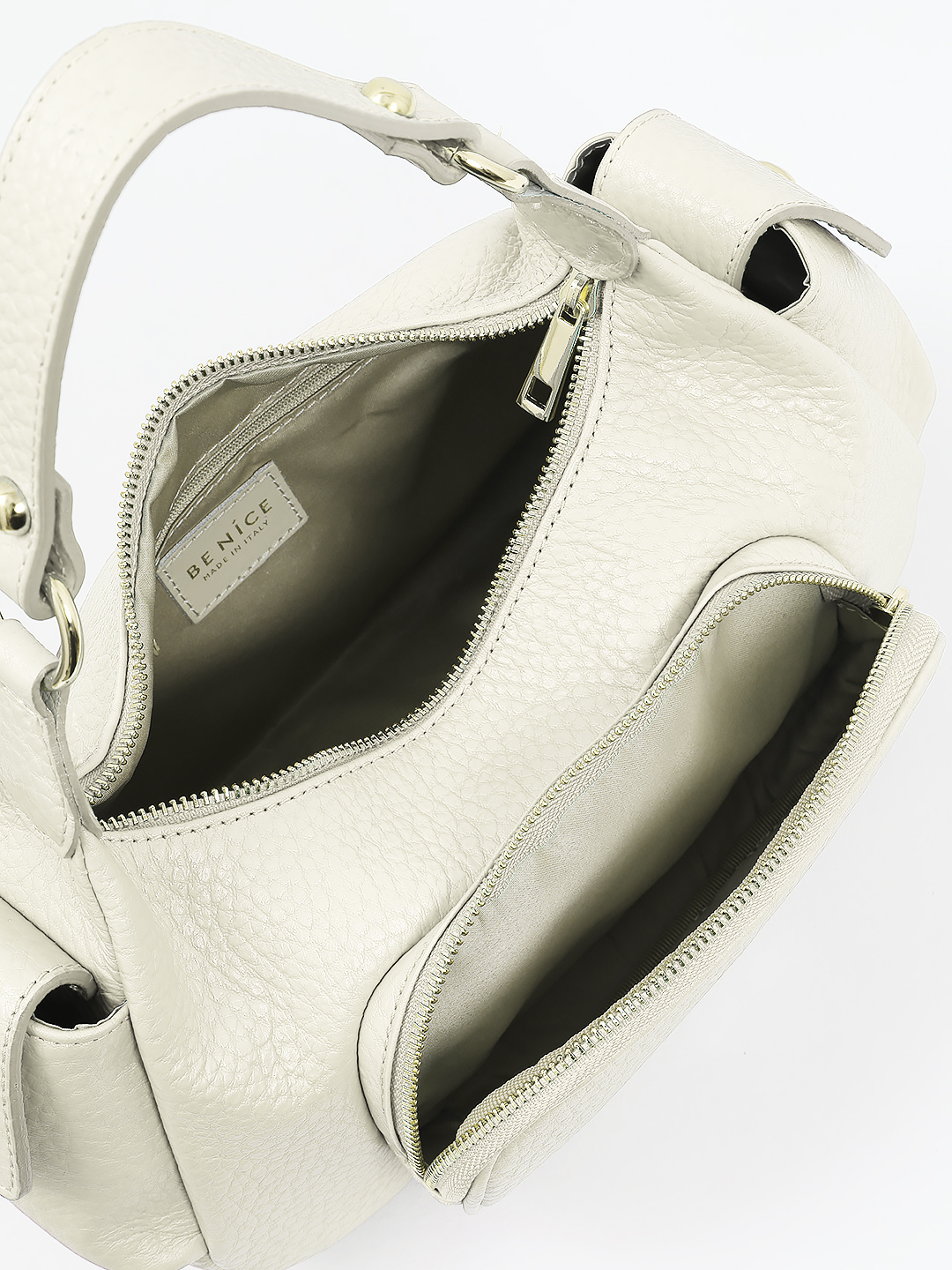 Сумка-хобо "VALITA" с дополнительными карманами от BE NICE из крупнозернистой кожи светло-серого оттенка