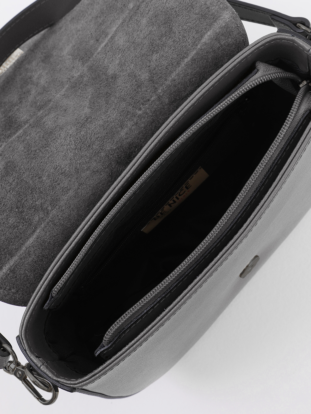 Полукруглая сумка "TIAMO" с фурнитурой в виде буквы "T" от BE NICE серого цвета
