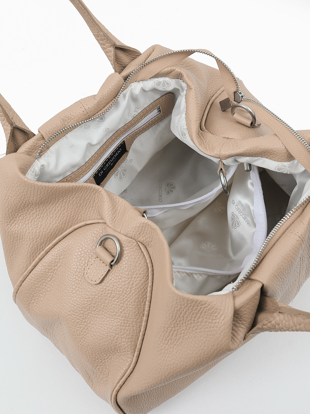 Тоут с дополнительной сумкой-косметичкой на молнии от Di Gregorio нюдового оттенка