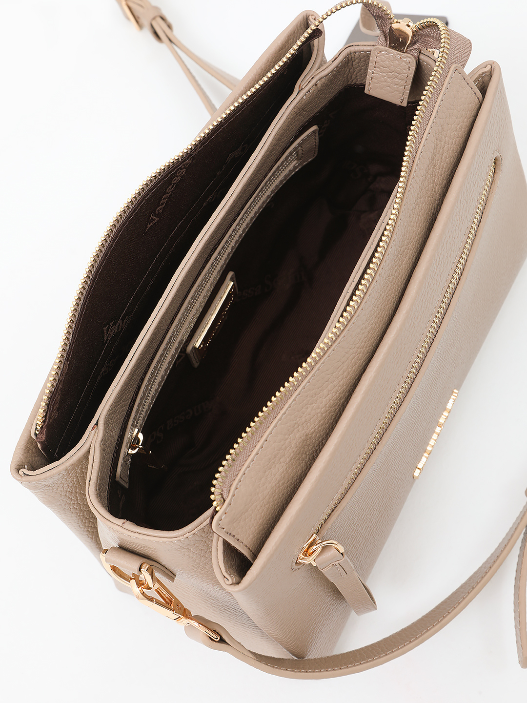Прямоугольная кросс-боди на плечо с тремя отделениями от Vanessa Scani в оттенке тауп