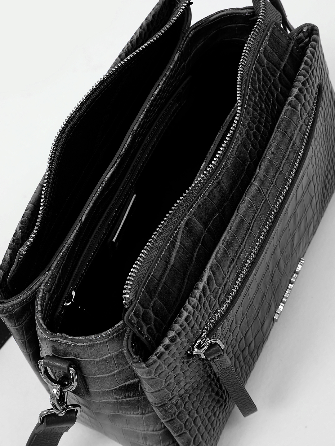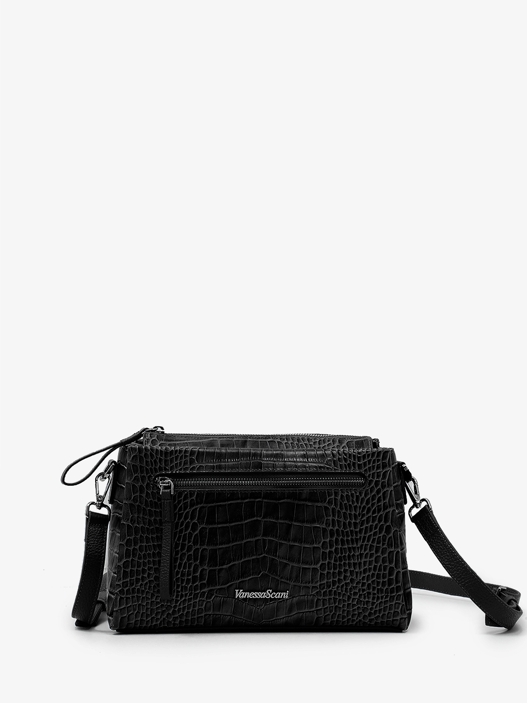 Прямоугольная кросс-боди с тремя отделениями от Vanessa Scani из кожи под крокодила чёрного цвета