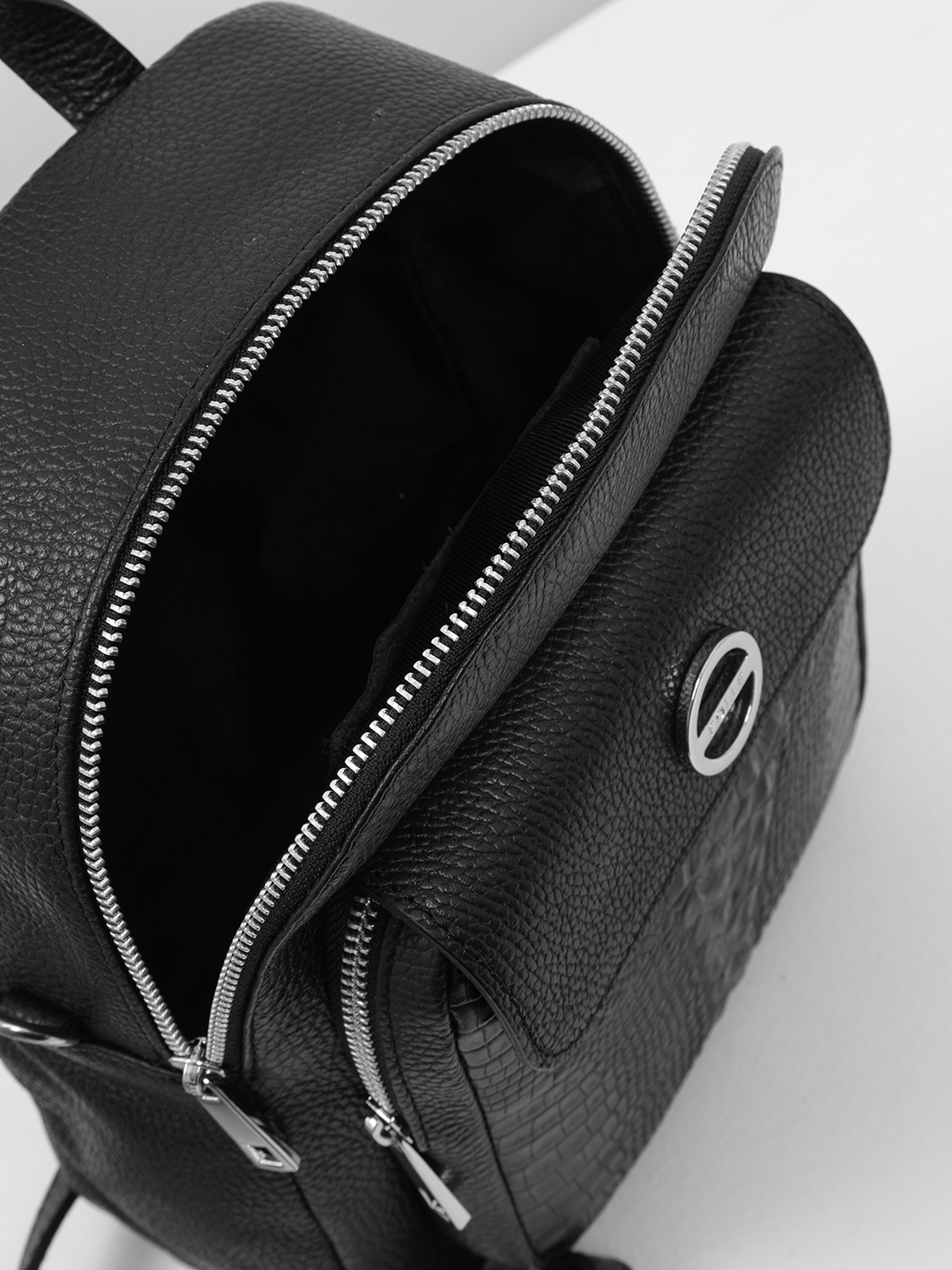 Чёрный рюкзак с тиснением под крокодила на внешнем кармане от FOLLE