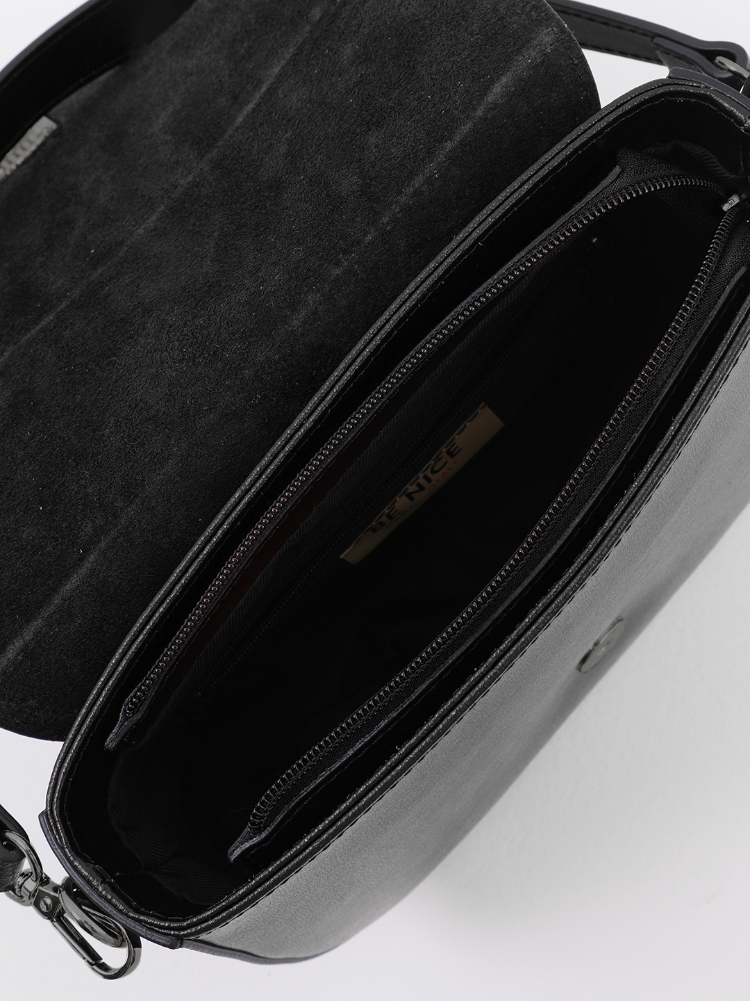 Полукруглая сумка "TIAMO" с фурнитурой в виде буквы "T" от BE NICE чёрного цвета