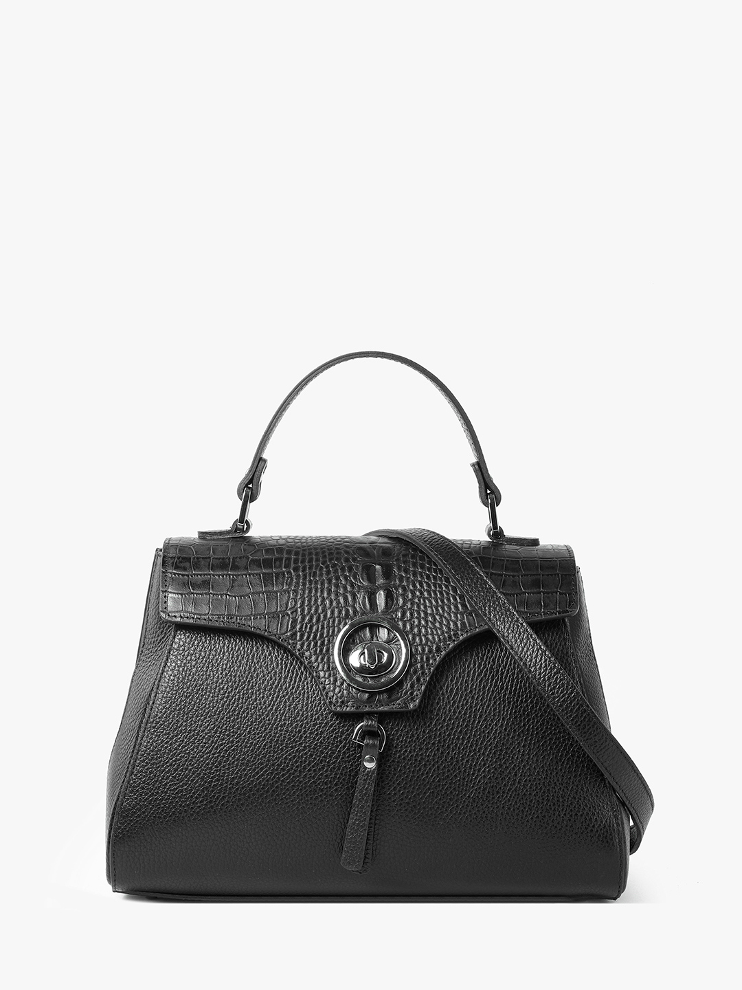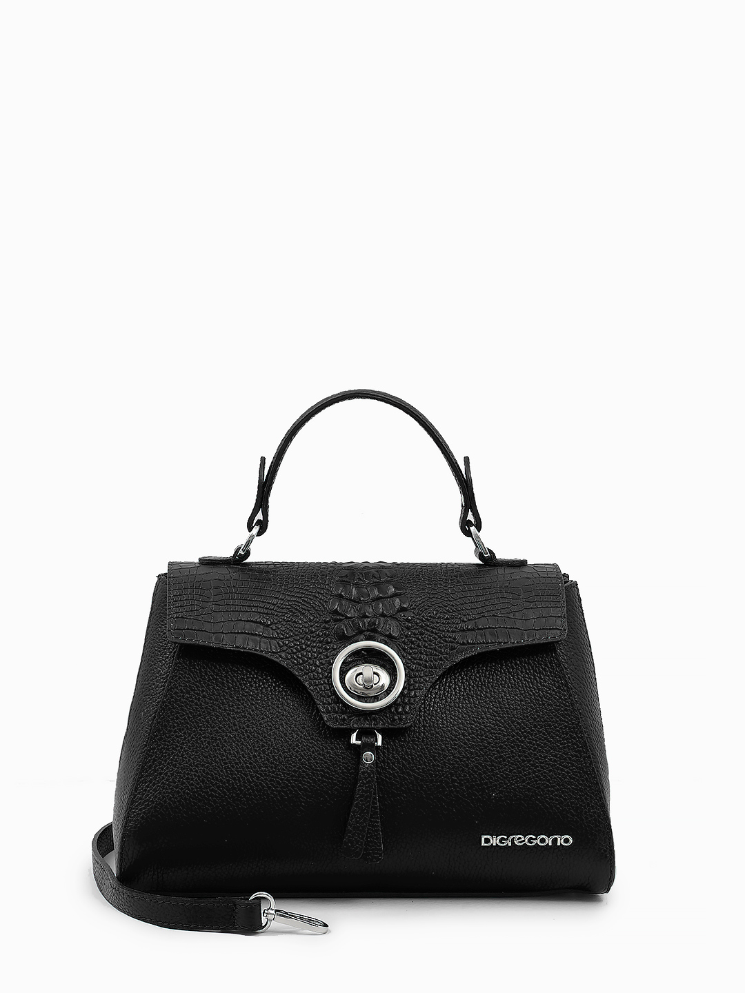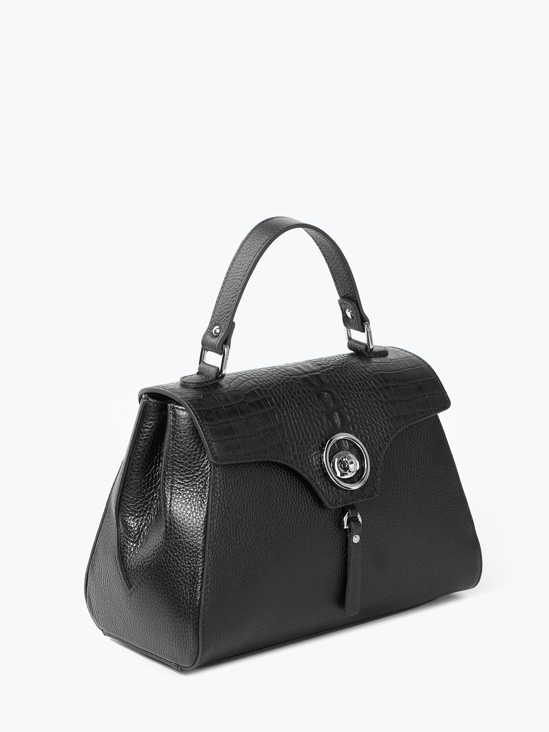 Чёрный сэтчел с изогнутым клапаном под крокодила от Di Gregorio