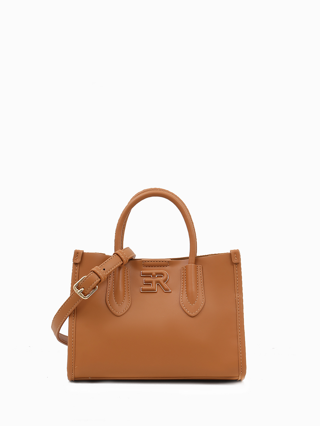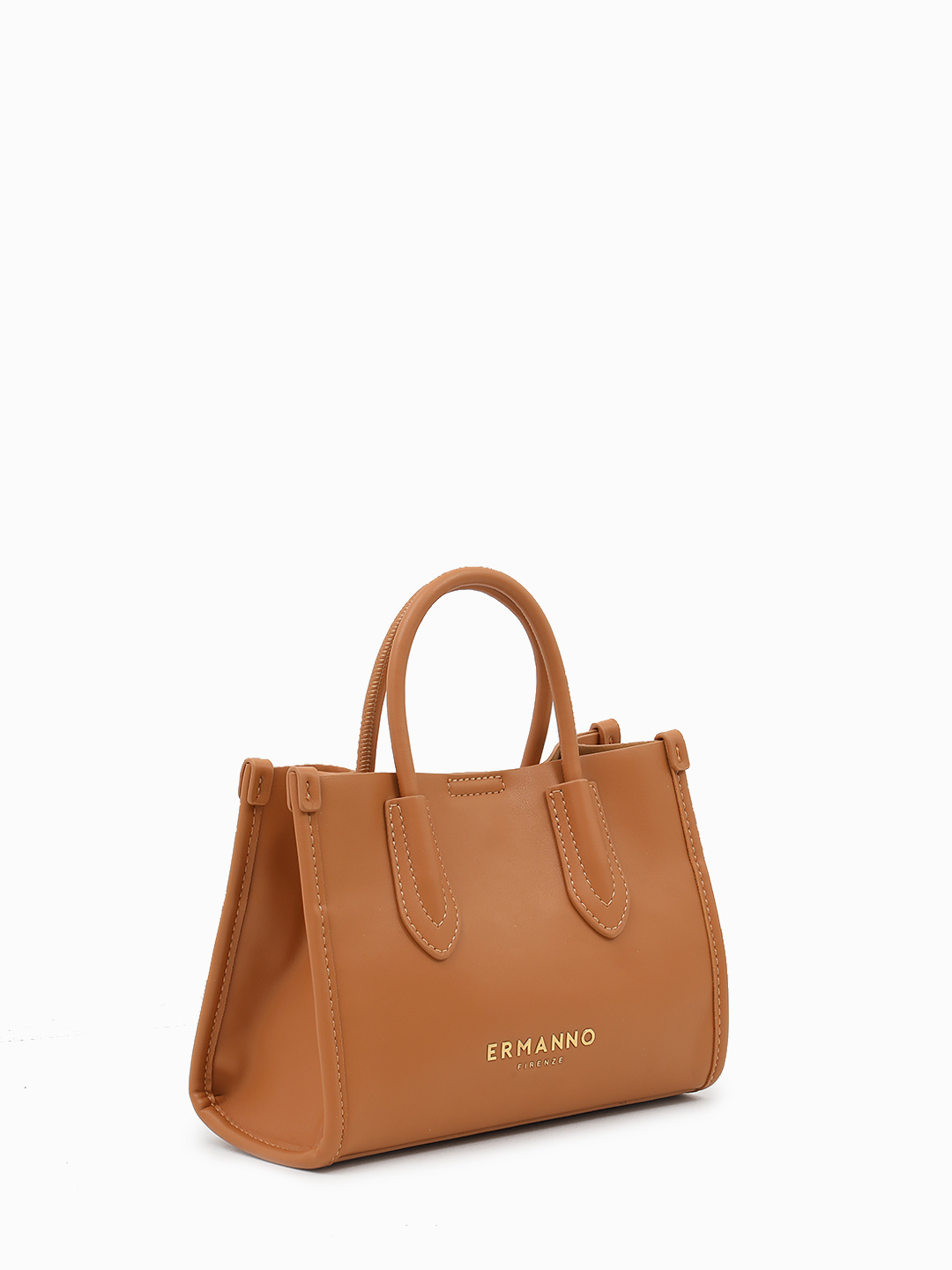 Сумка-тоут в размере S с золотистым логотипом ERMANNO FIRENZE оттенка загара tan