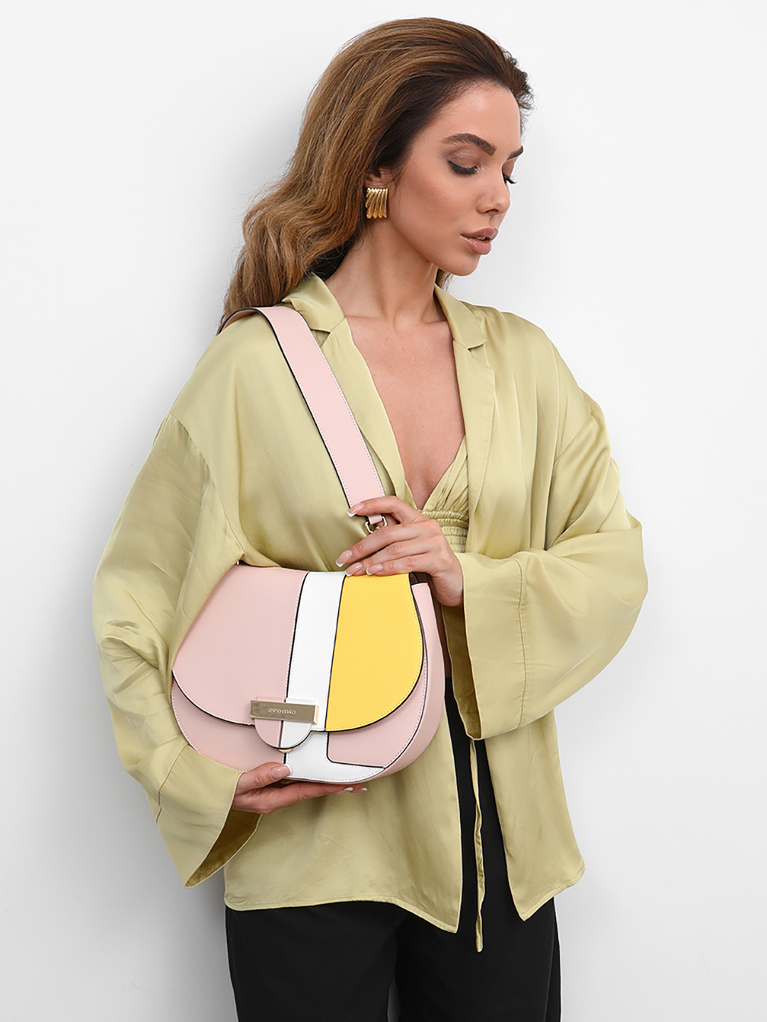 Сумка на плечо с поворотной фурнитурой от FOLLE в мраморном оттенке