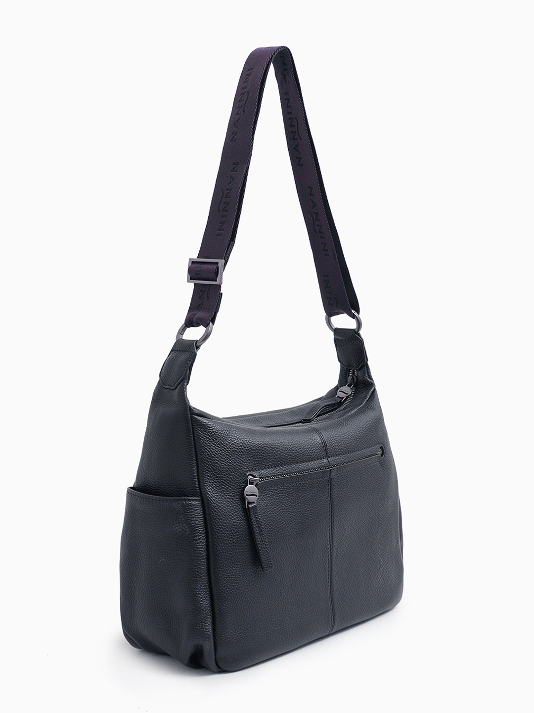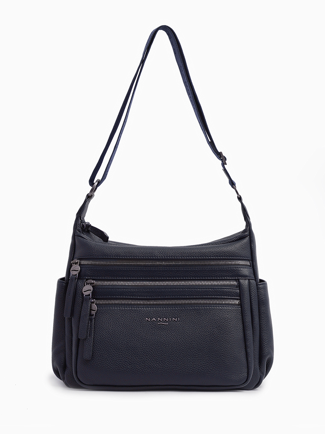 Синяя сумка на плечо с текстильным именным ремнём от NANNINI