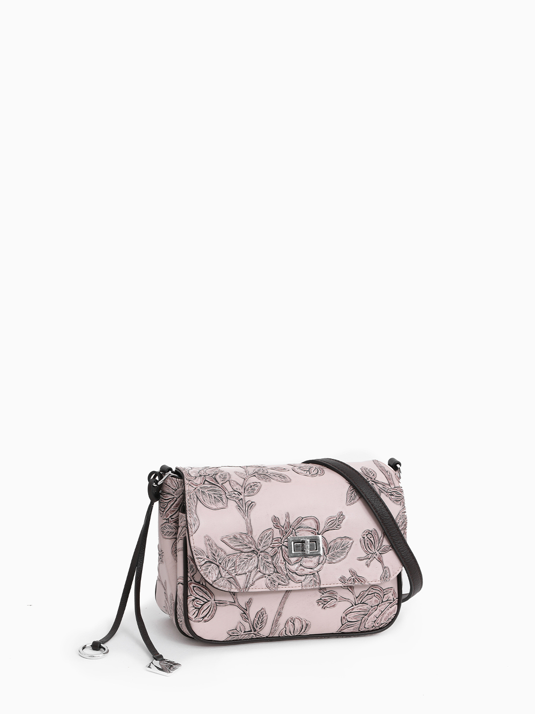 Кросс-боди на плечо с цветочным тиснением от Alessandro Beato розового оттенка