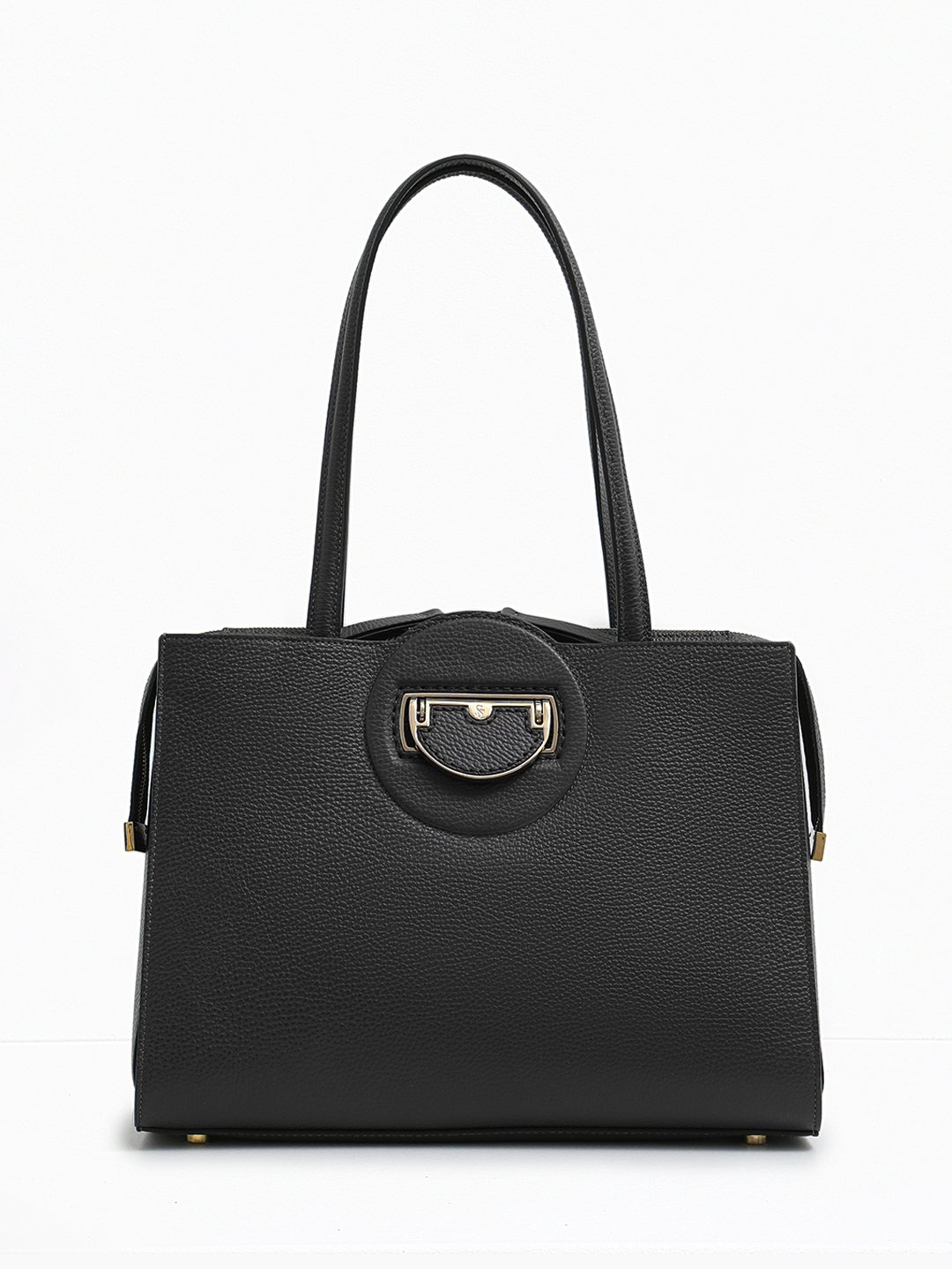 Классическая сумка с круглой кожаной пряжкой от Carlo Salvatelli в чёрном цвете