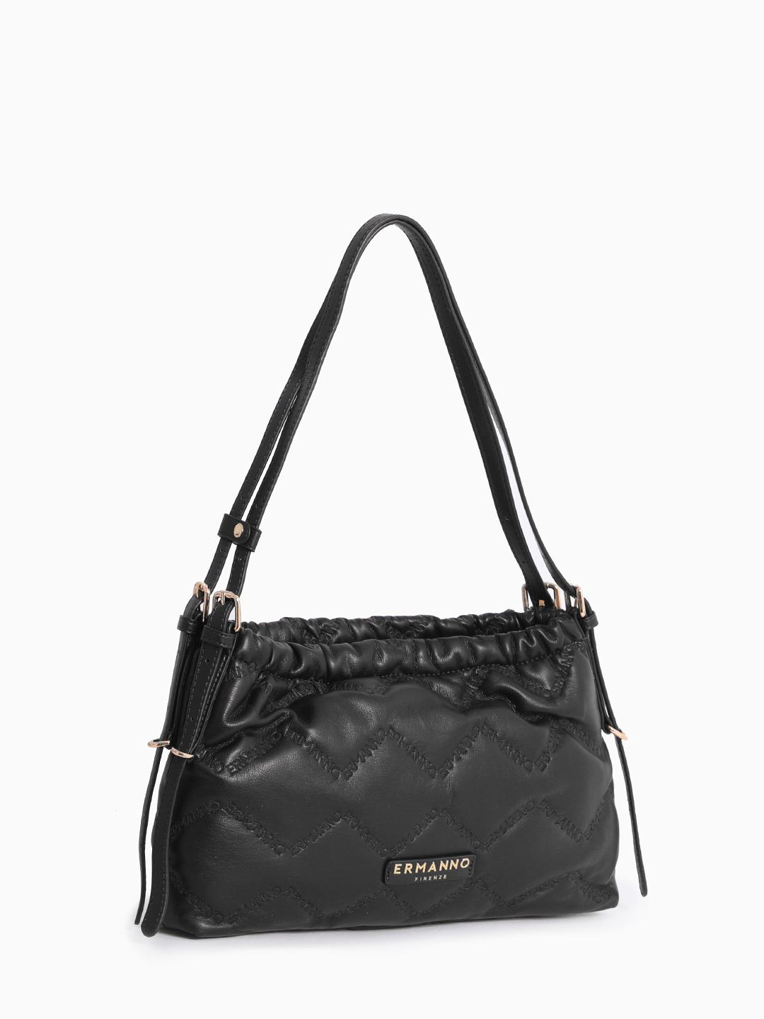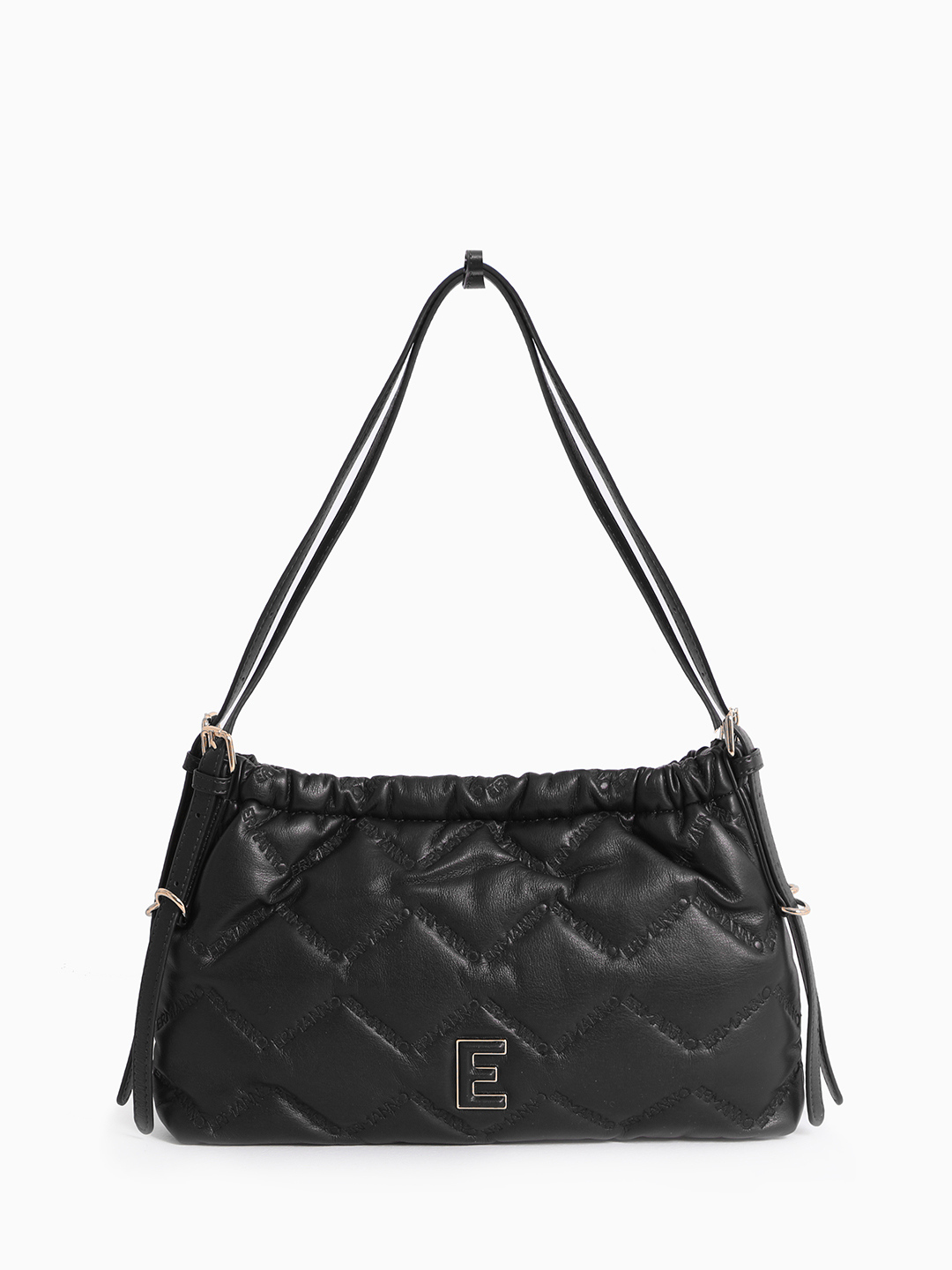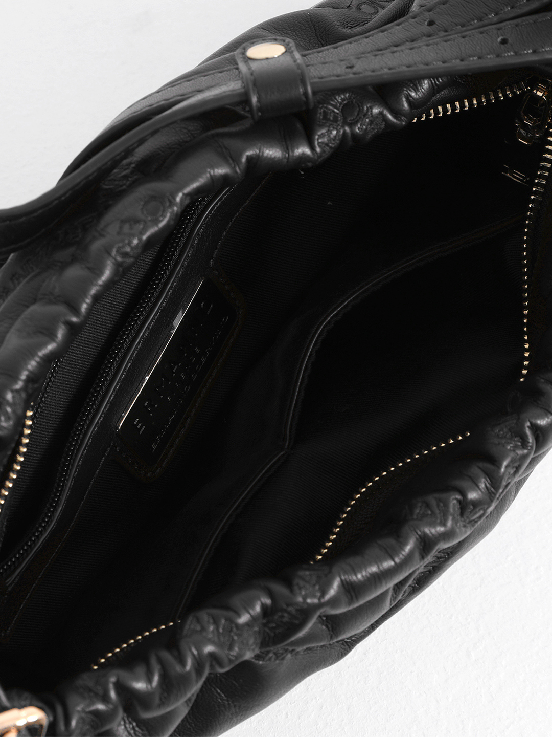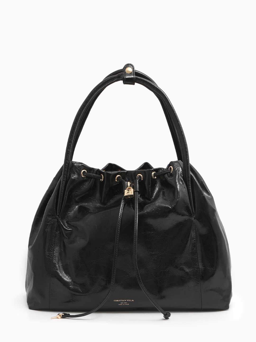 Сумка в силуэте а-ля кисет с фурнитурой-замком от Christian Villa в чёрном цвете