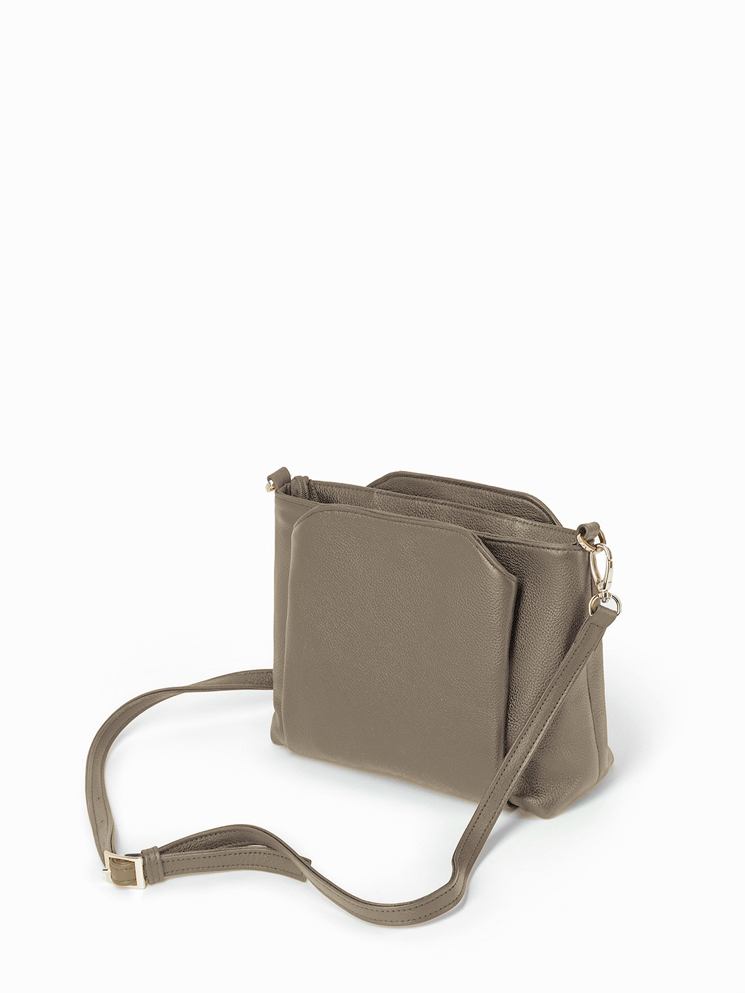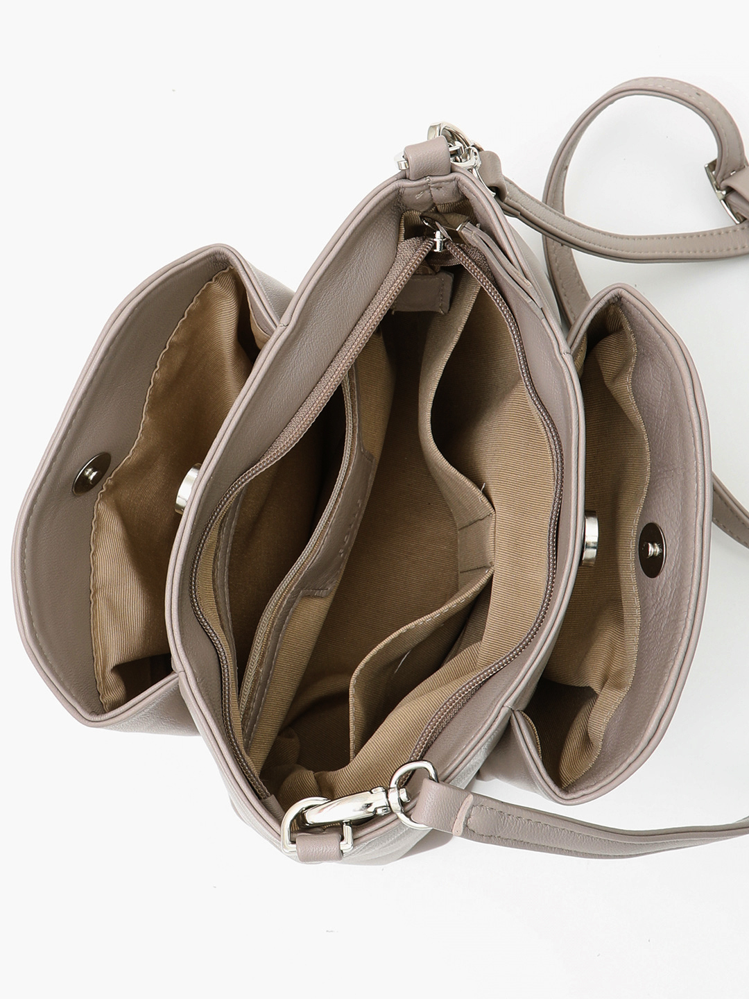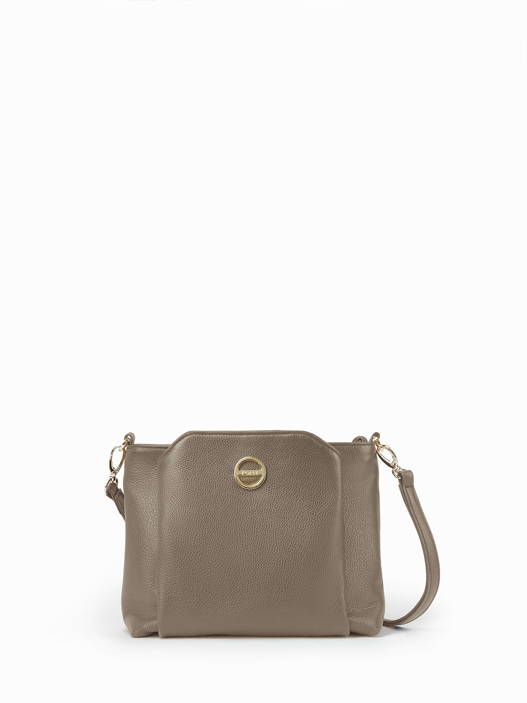 Базовая кросс-боди на плечо с круглой фирменной фурнитурой от FOLLE оттенка тауп