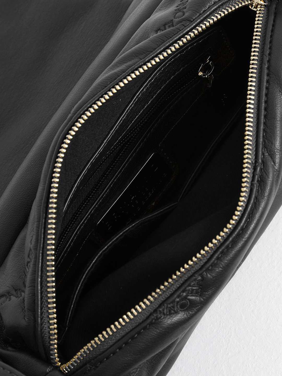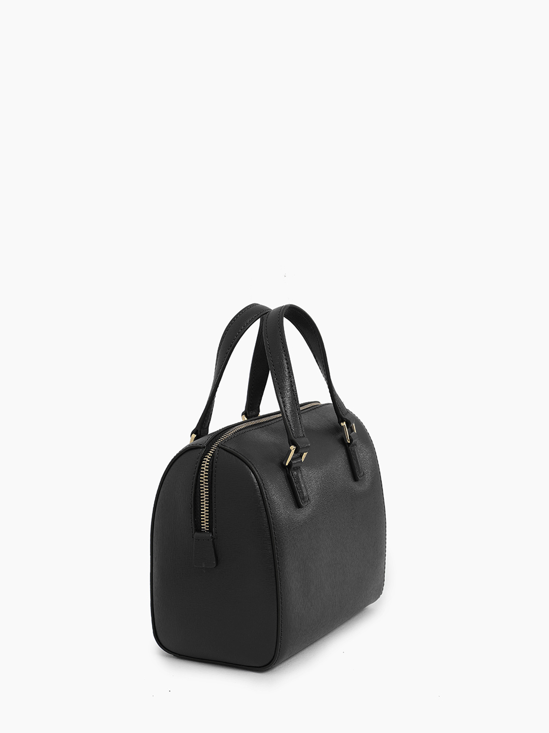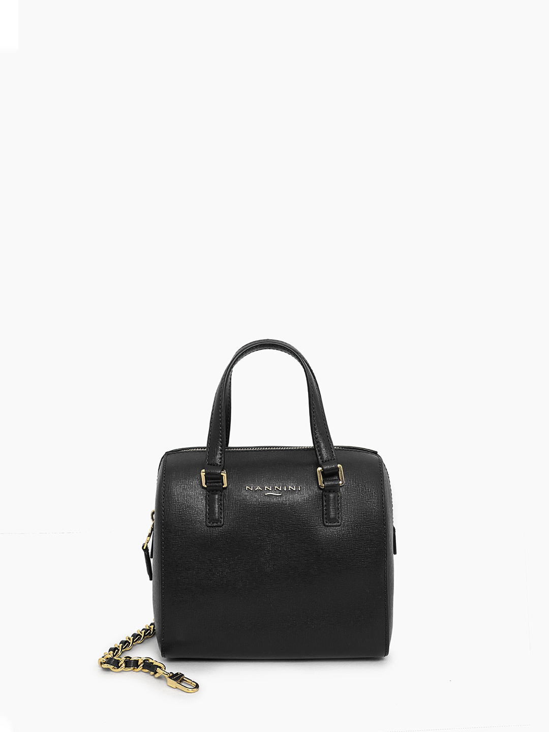 Чёрная сумка-боулер с именной надписью золотистого оттенка от NANNINI