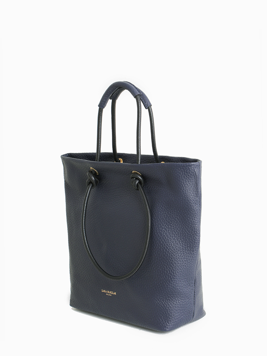 Синяя сумка-шоппер с объёмными узлами на ручках от Sara Burglar