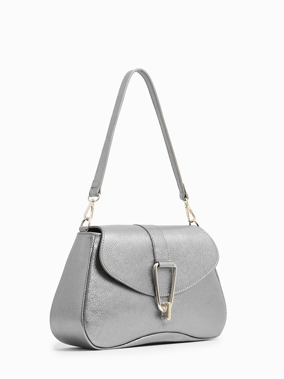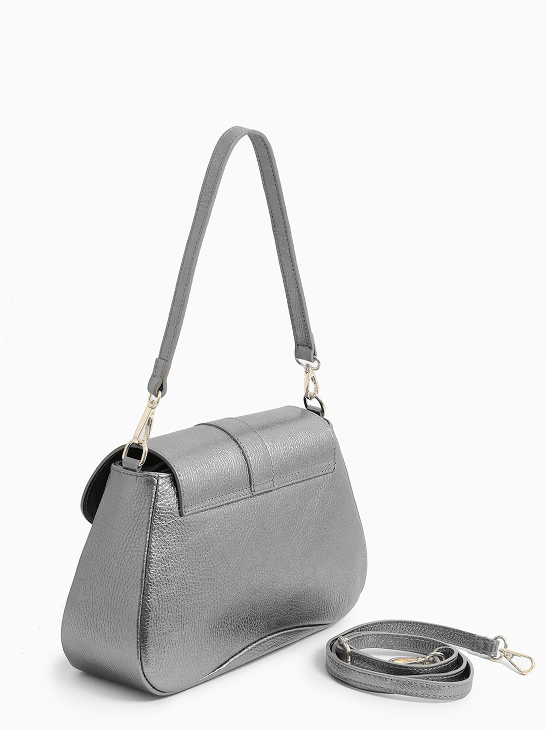 Сумка-багет "Adelina" с именным штампом BE NICE металлизированного серебристого оттенка