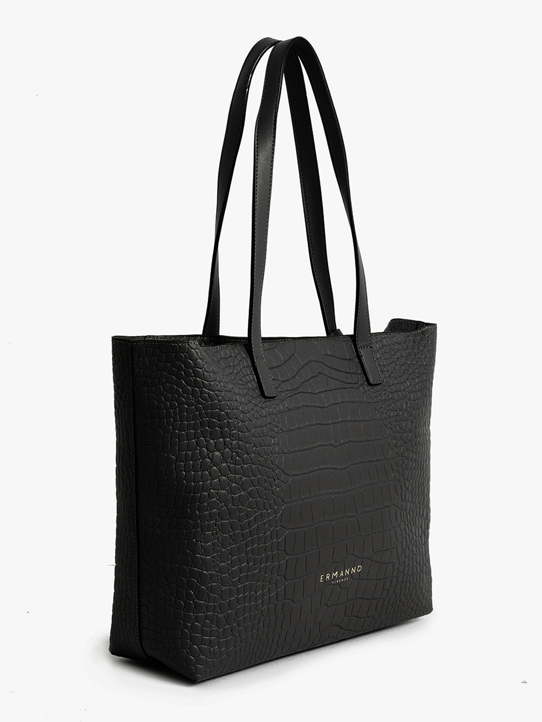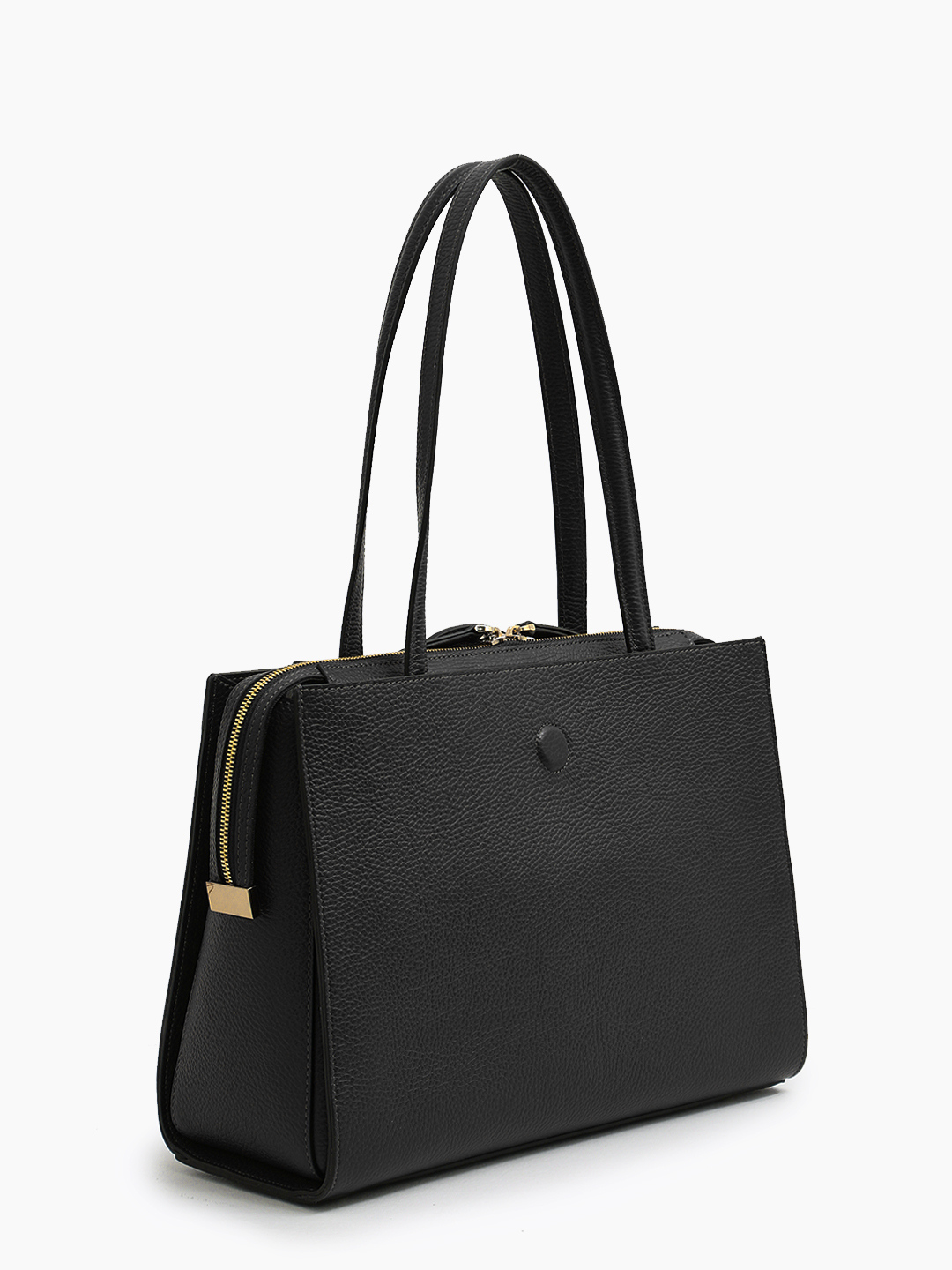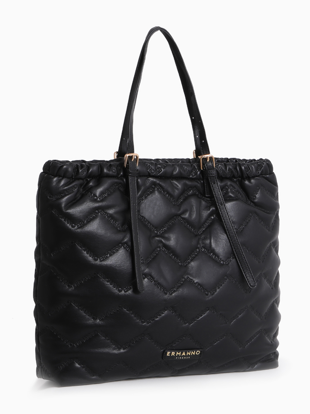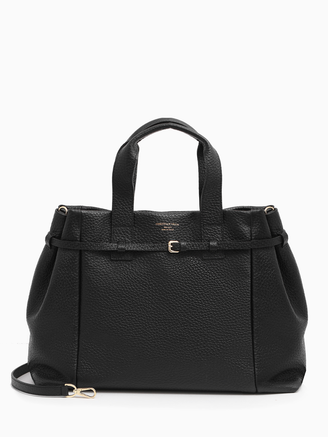 Прямоугольная сумка-тоут с фирменной строчкой от Christian Villa в чёрном цвете