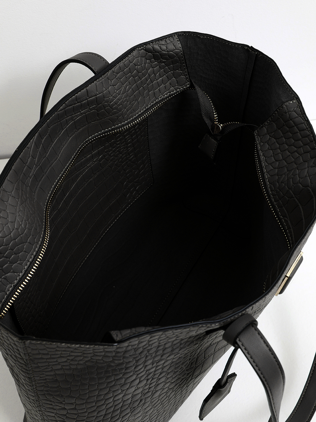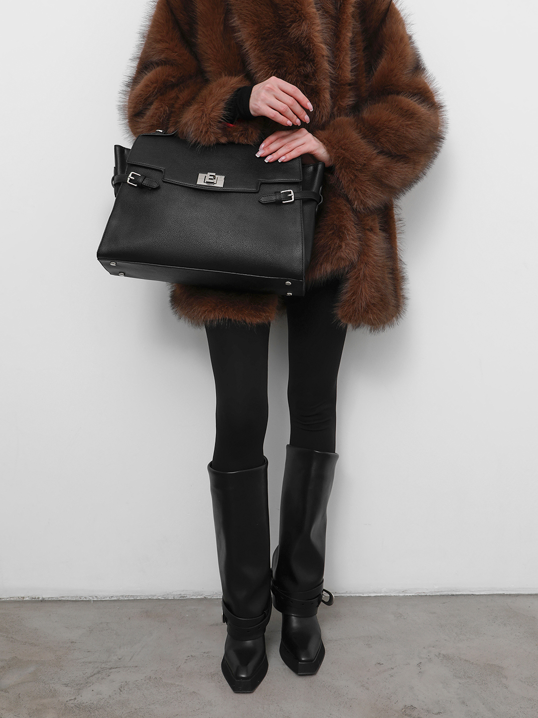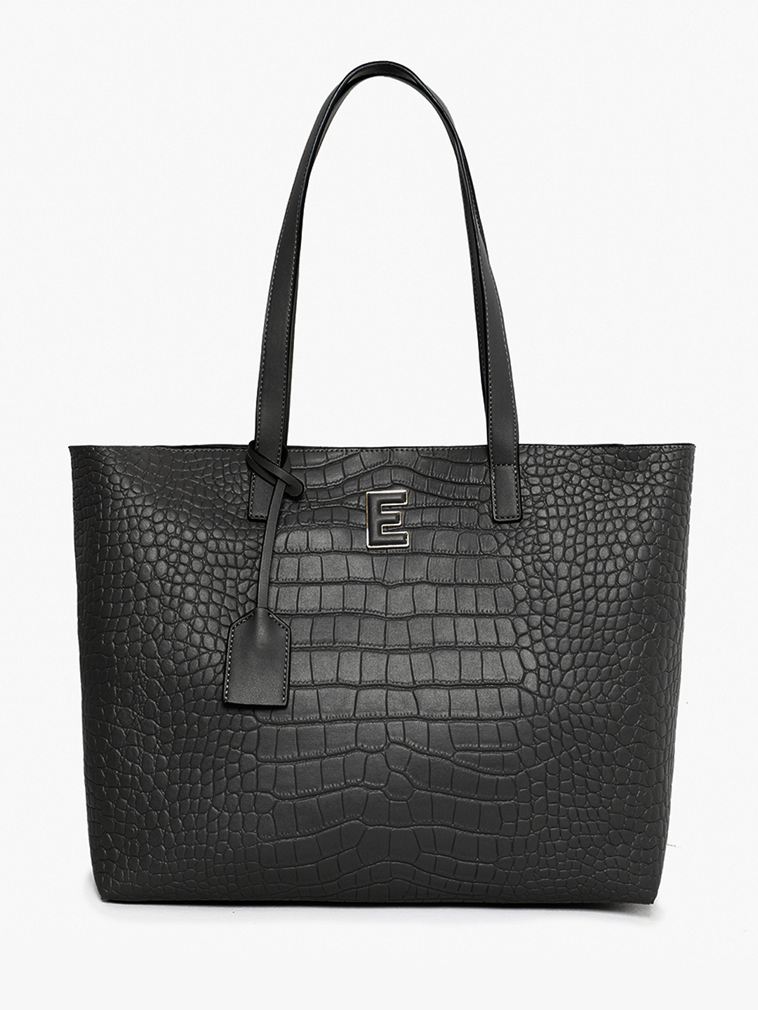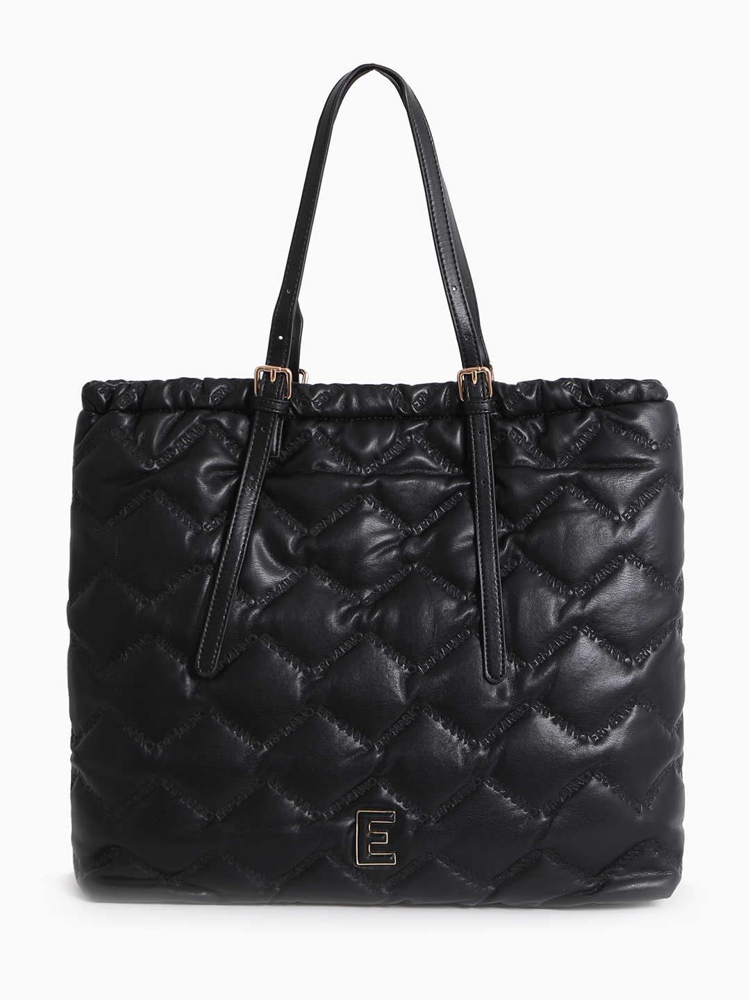 Прямоугольная сумка-тоут с фирменной строчкой от Christian Villa в чёрном цвете