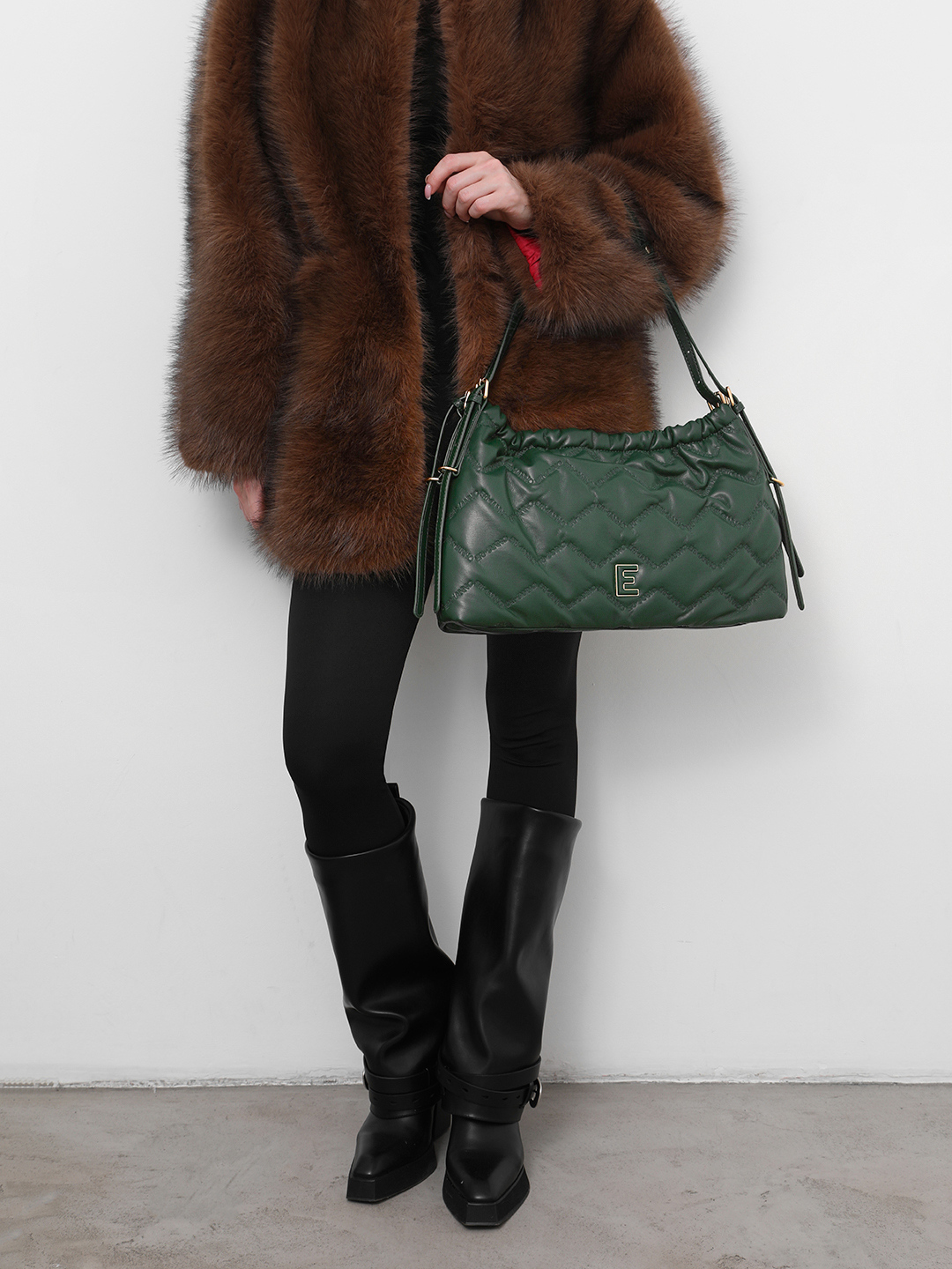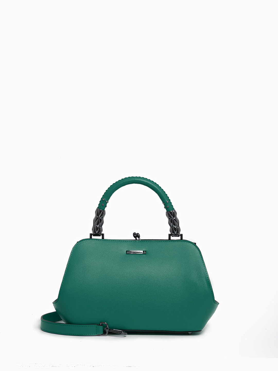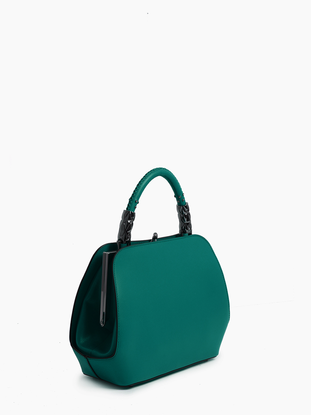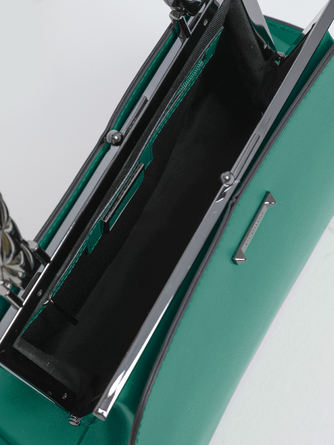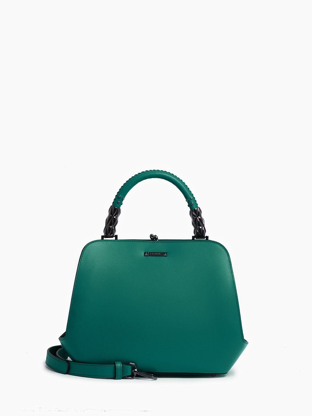 Сумка-ридикюль с комбинированной ручкой и именной плашкой CROMIA зелёного цвета