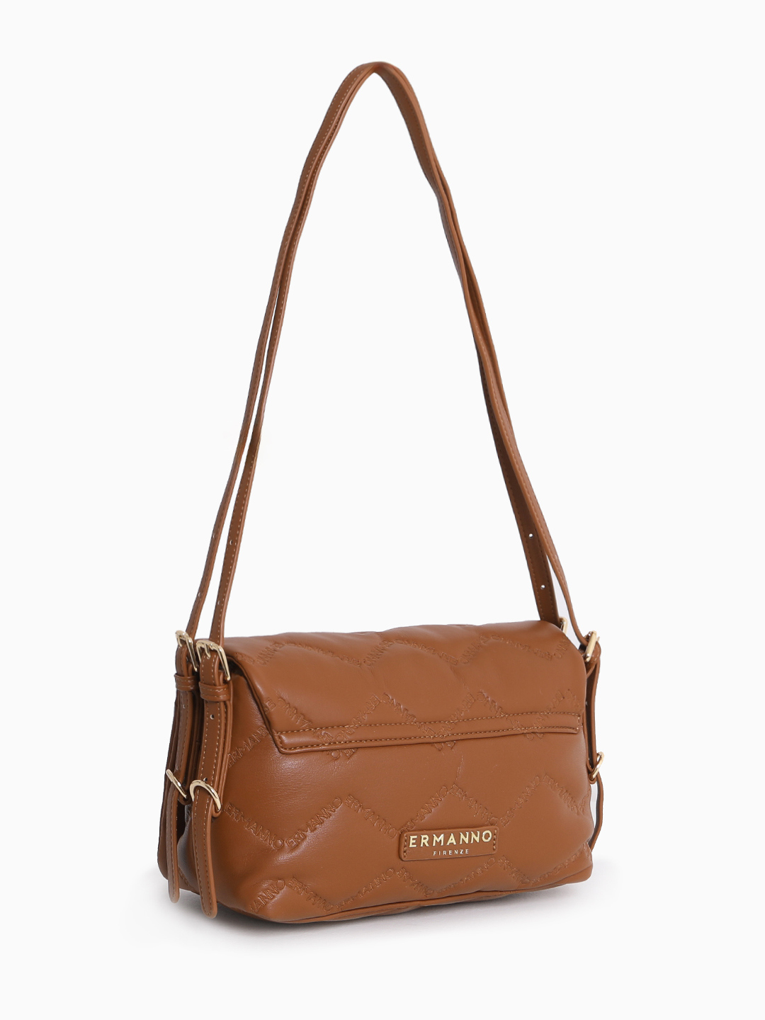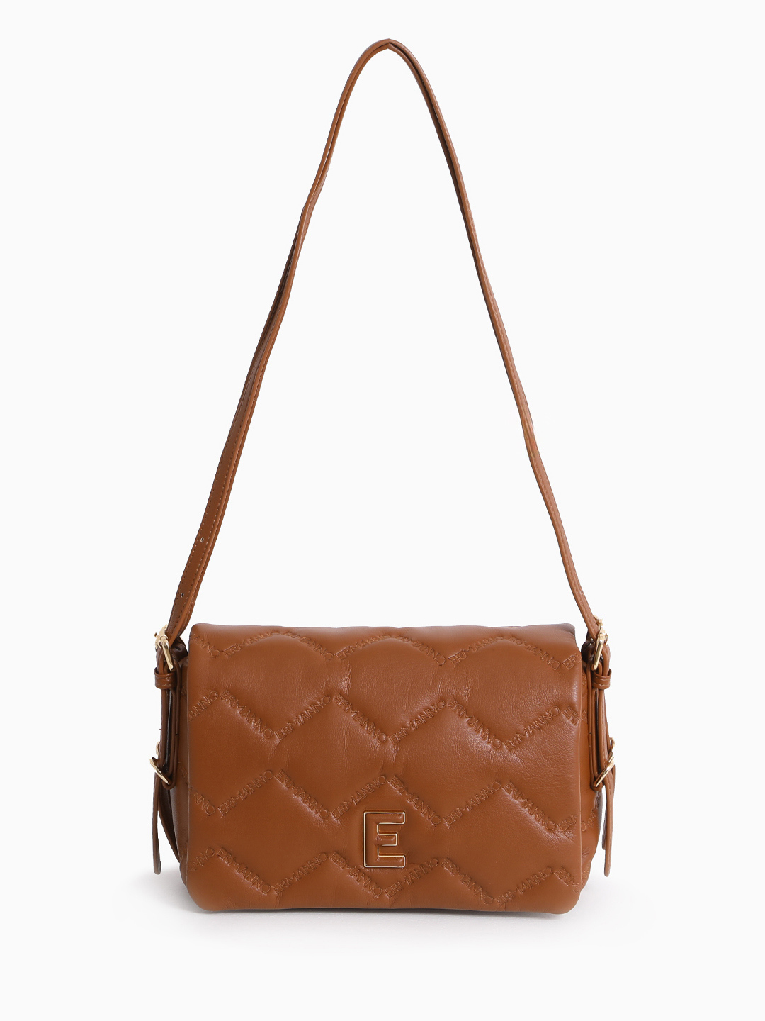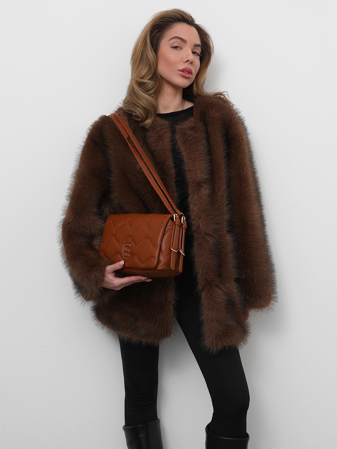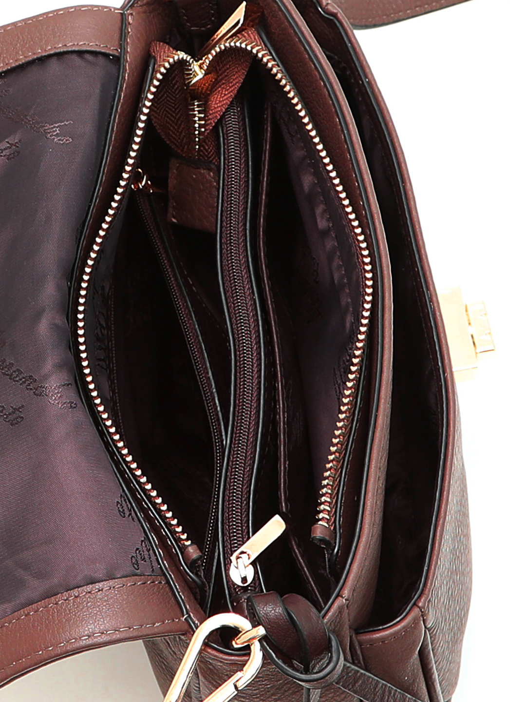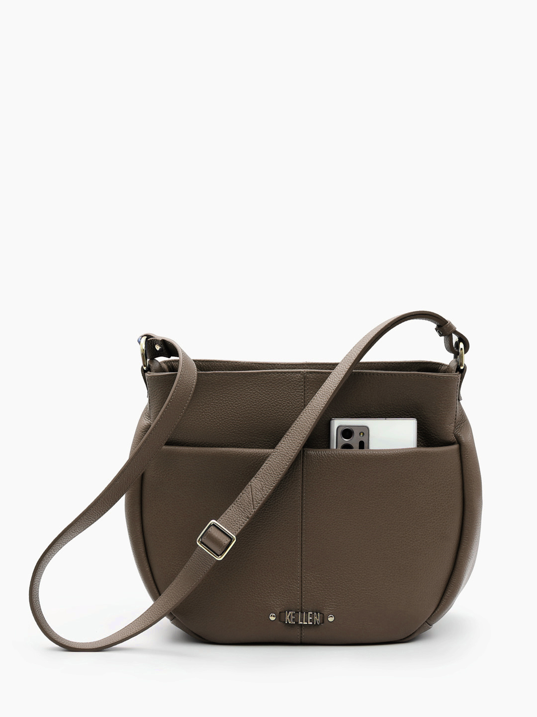 Полукруглая кросс-боди с металлическими буквами KELLEN в шоколадном оттенке