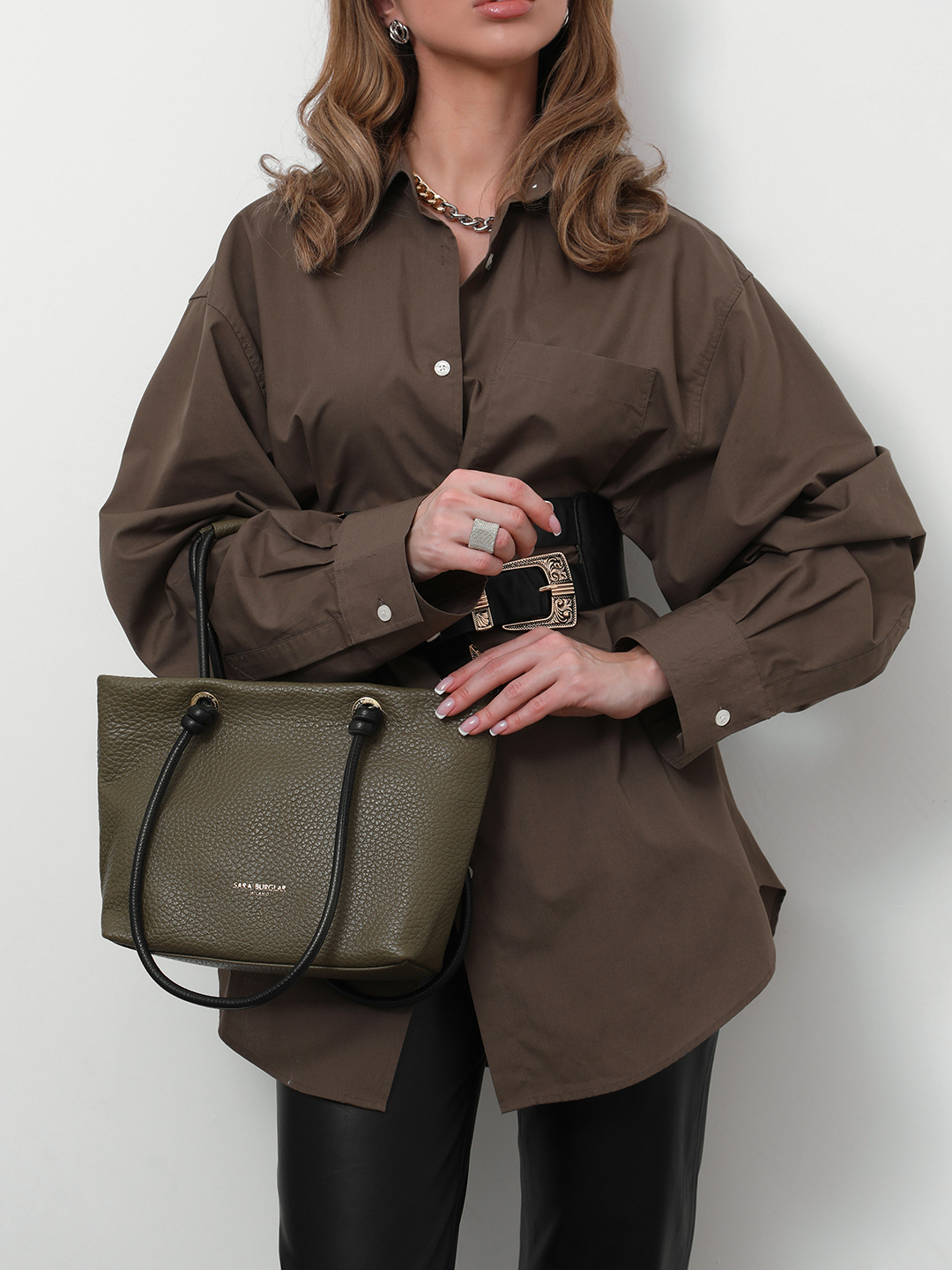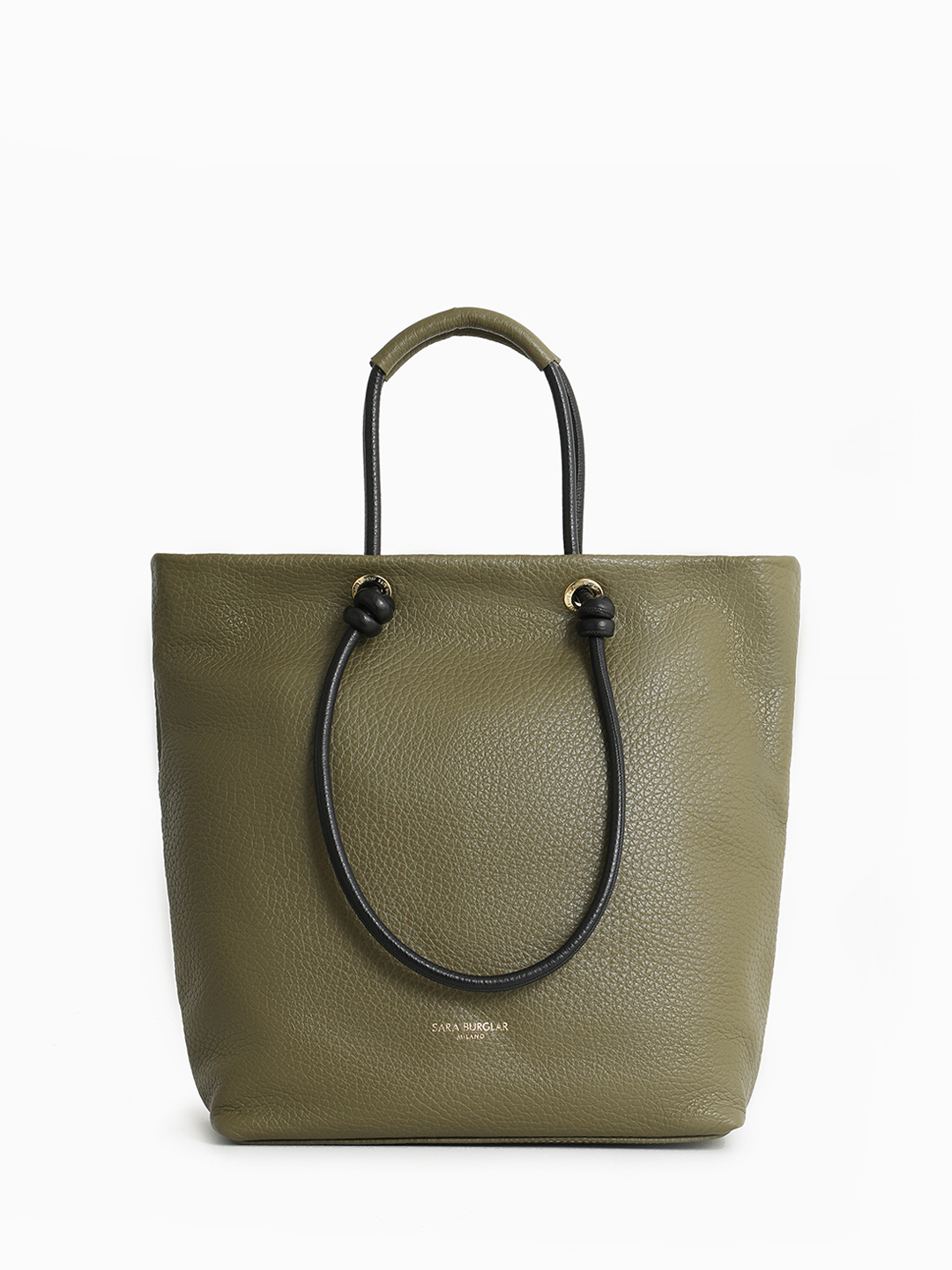 Сумка-шоппер в размере М с двойными ручками с узлами от Sara Burglar в зелёном цвете