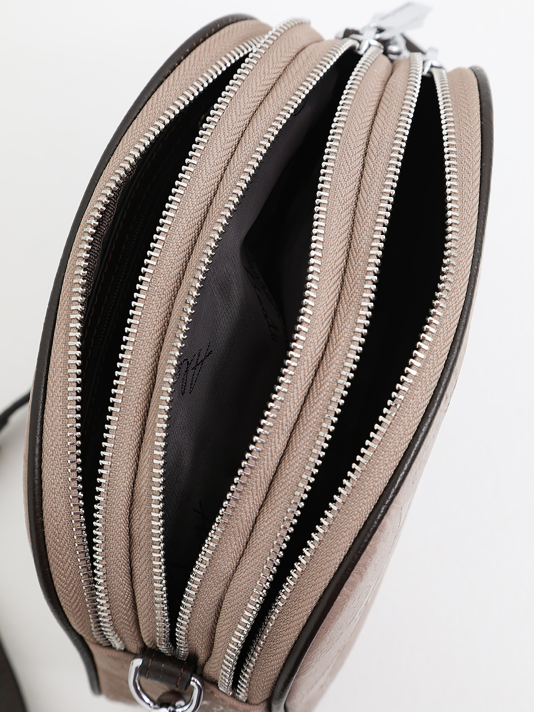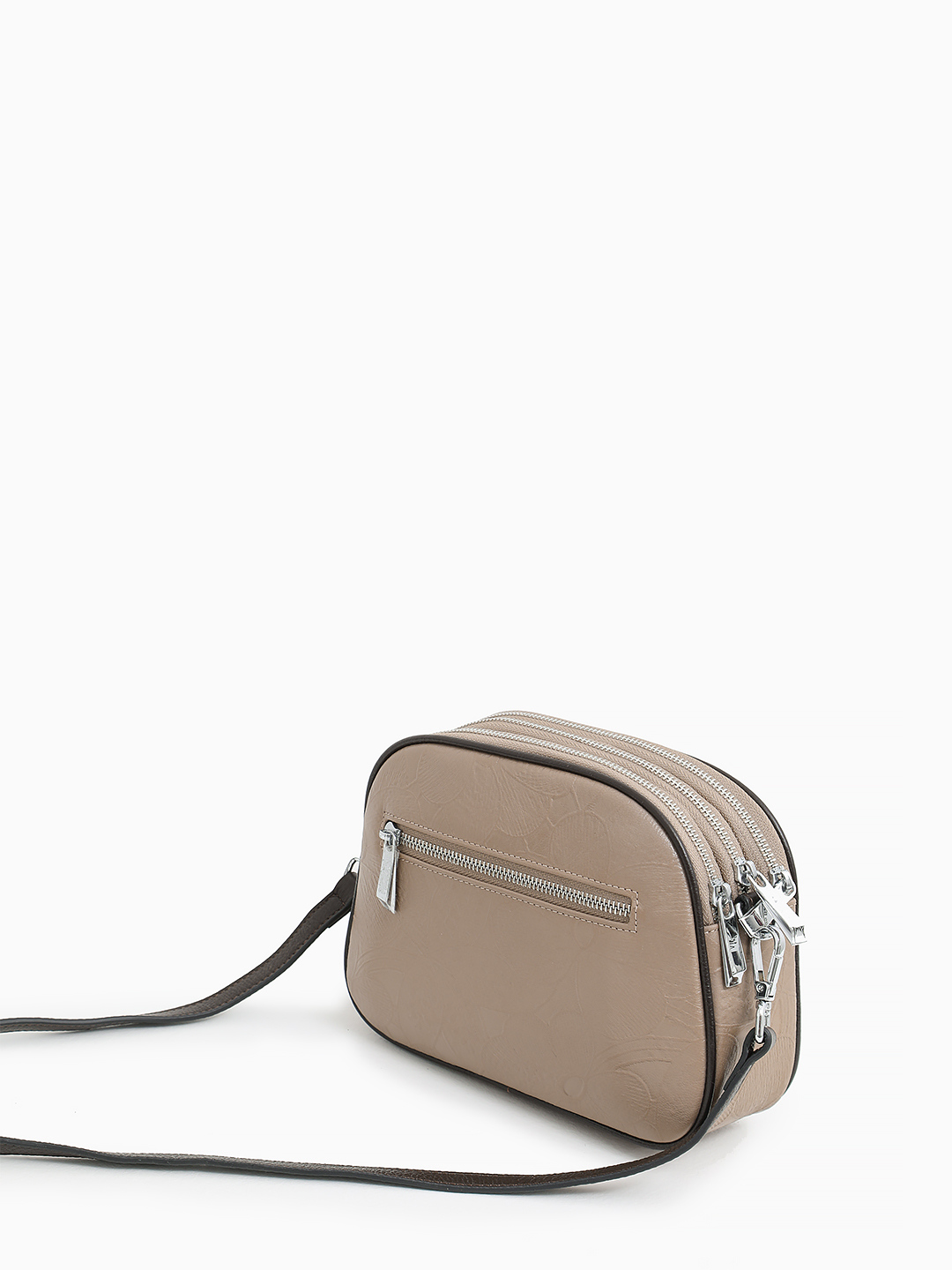 Кросс-боди с тремя отделениями и узорным тиснением от Alessandro Beato оттенка тауп