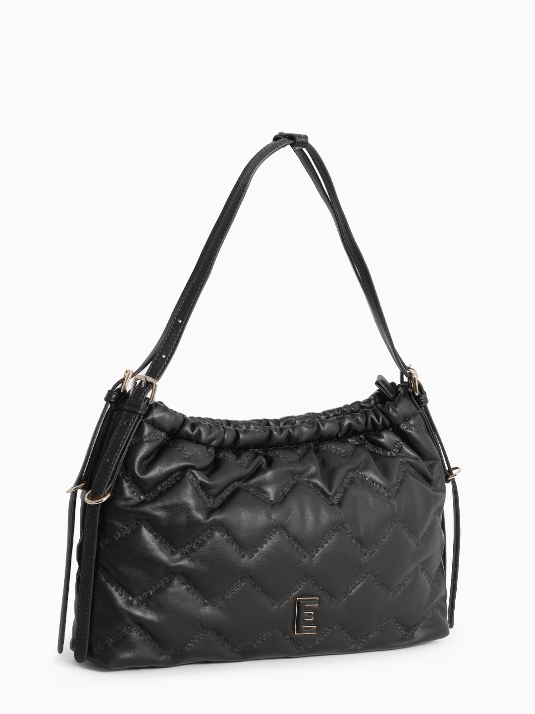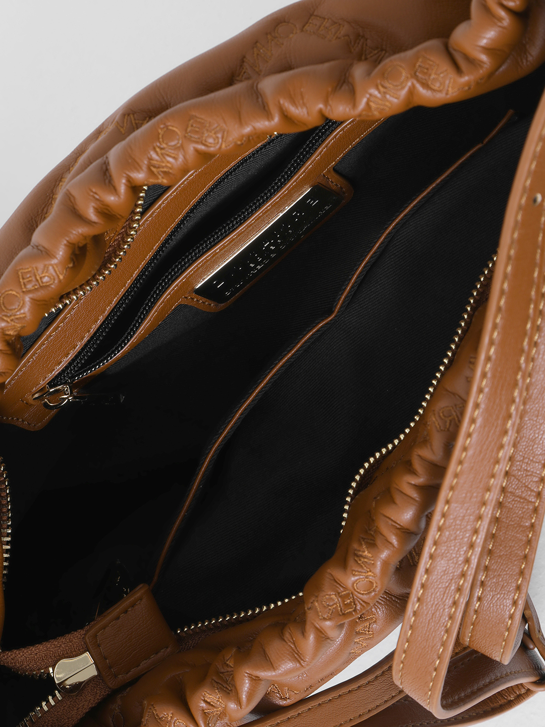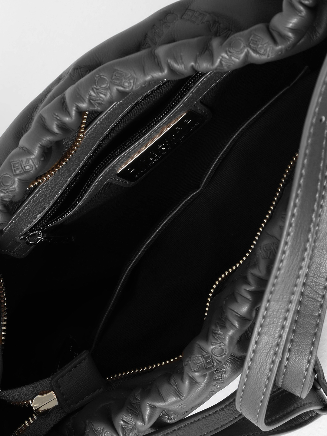 Чёрная сумка-тоут с кожаными складками и логотипом Christian Villa