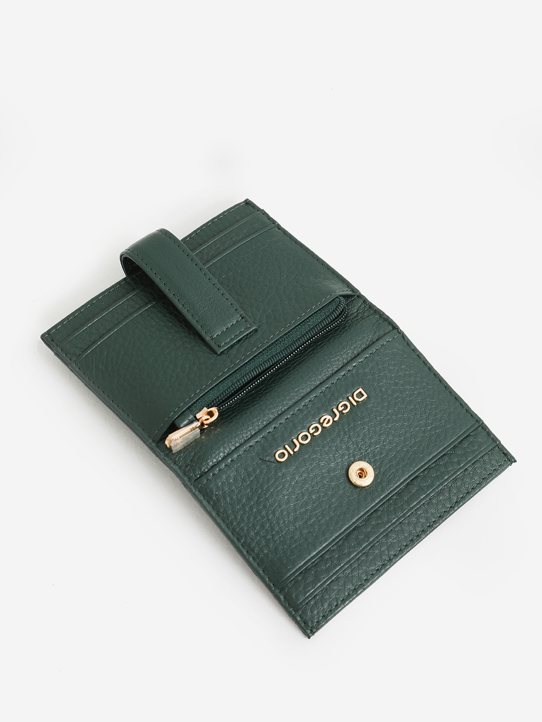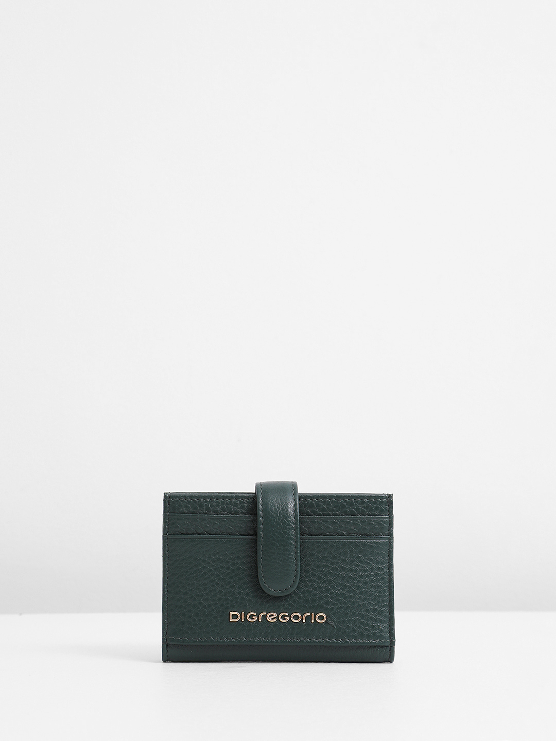 Картхолдер-визитница с именной гравировкой Di Gregorio зелёного цвета