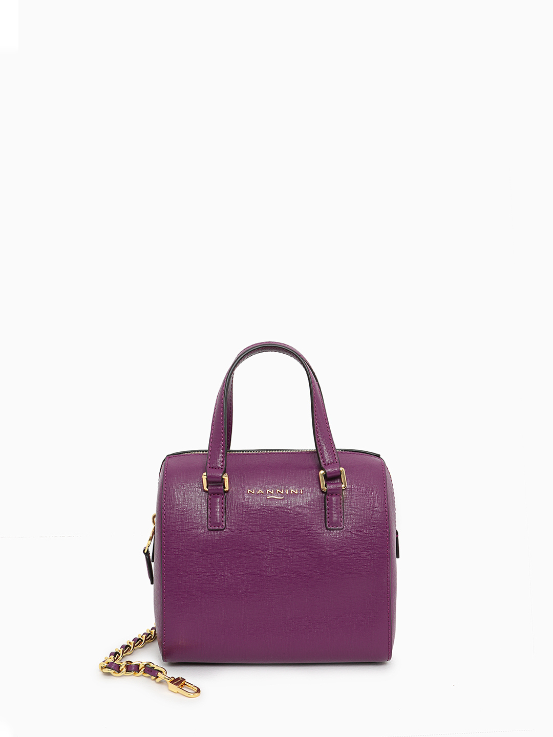 Баклажановая сумка-боулер с именной надписью золотистого оттенка от NANNINI