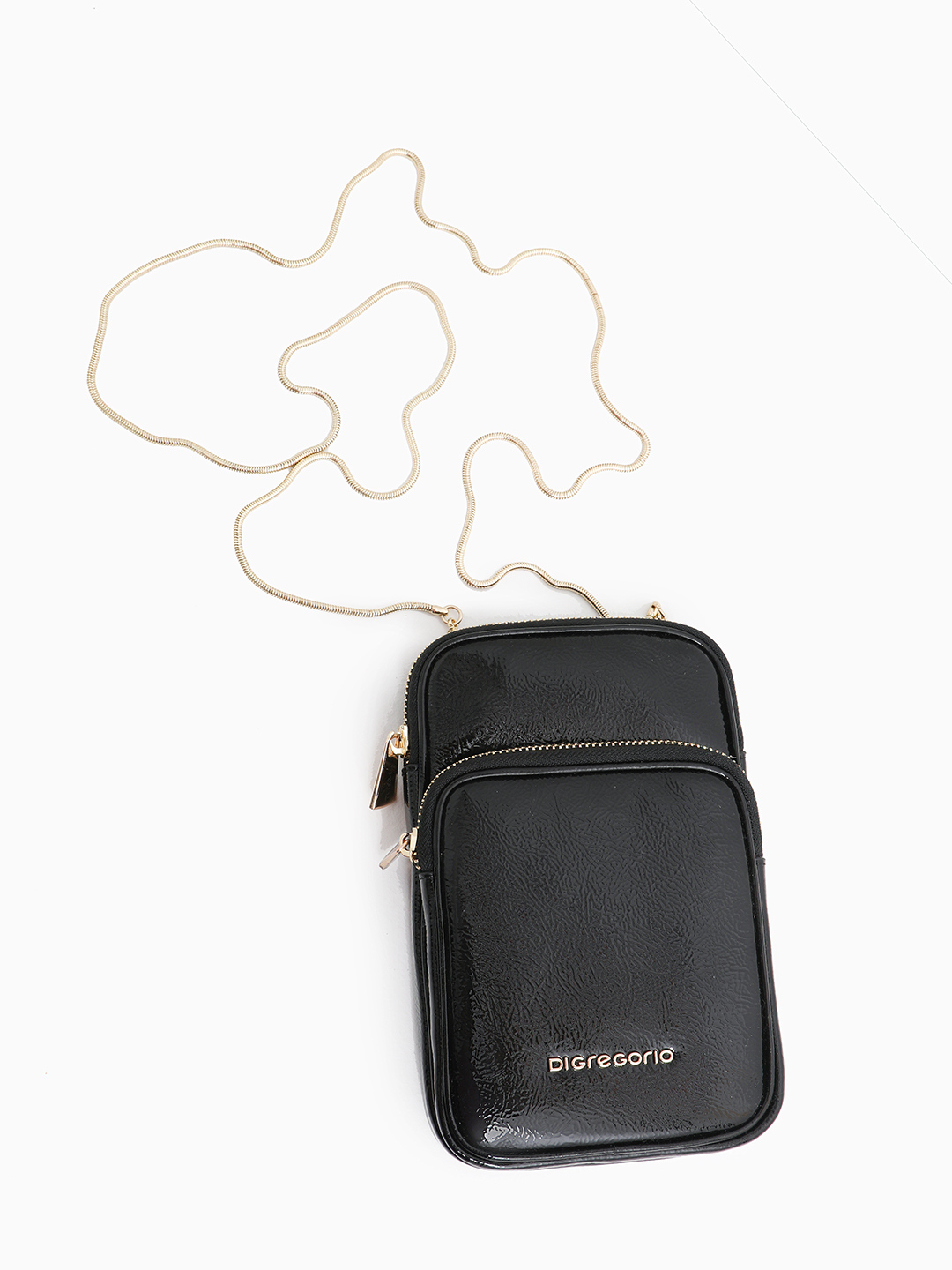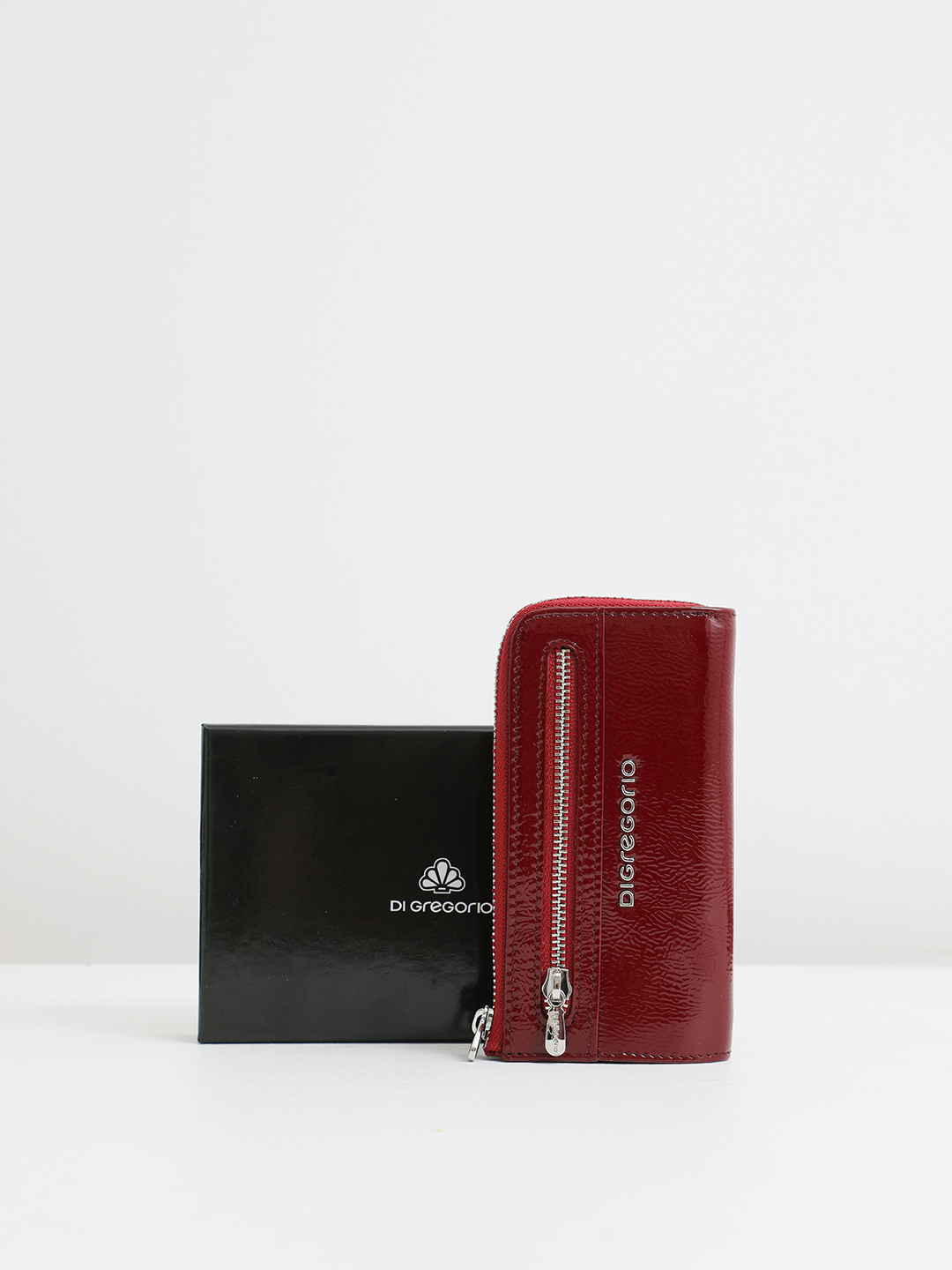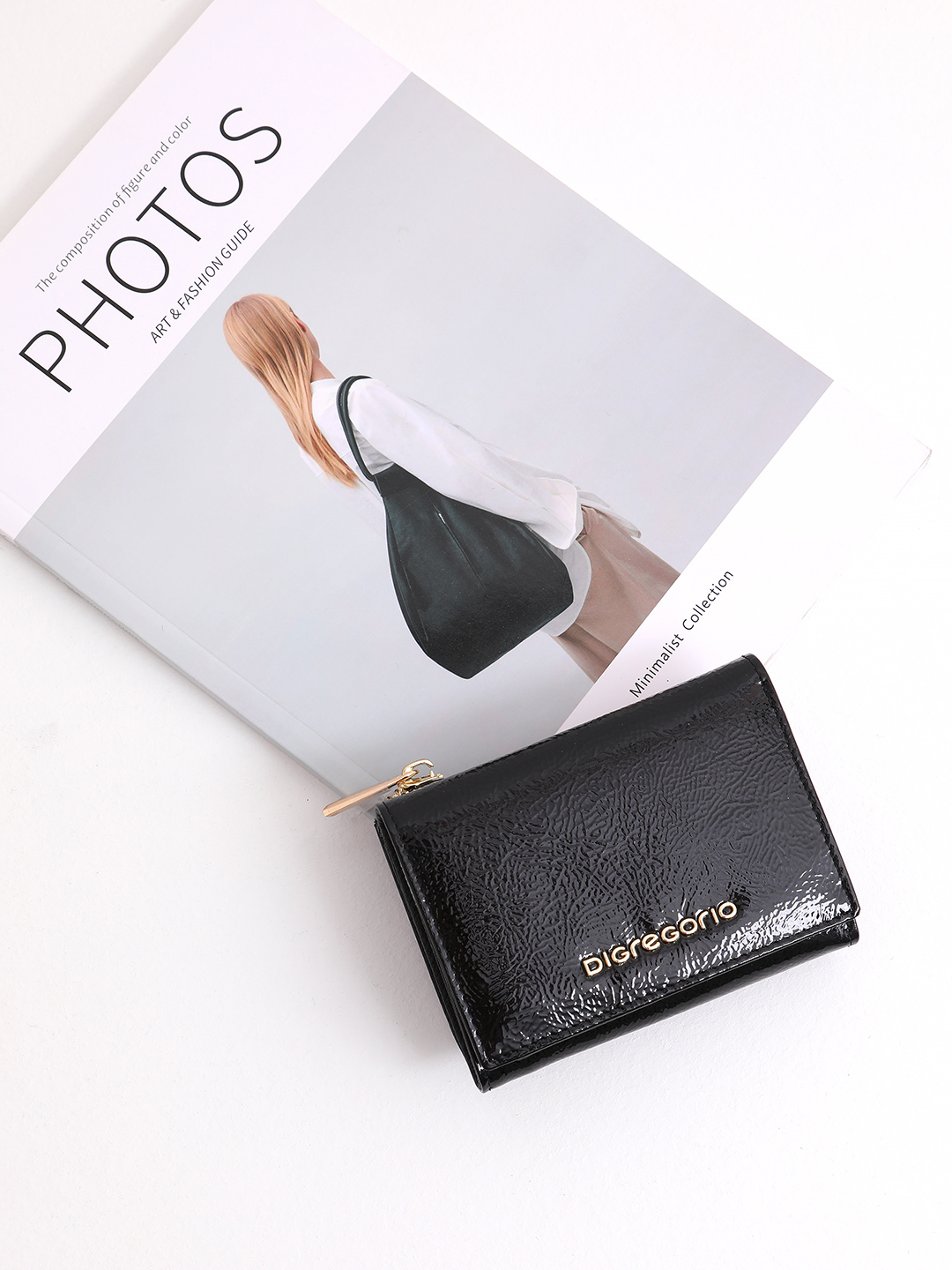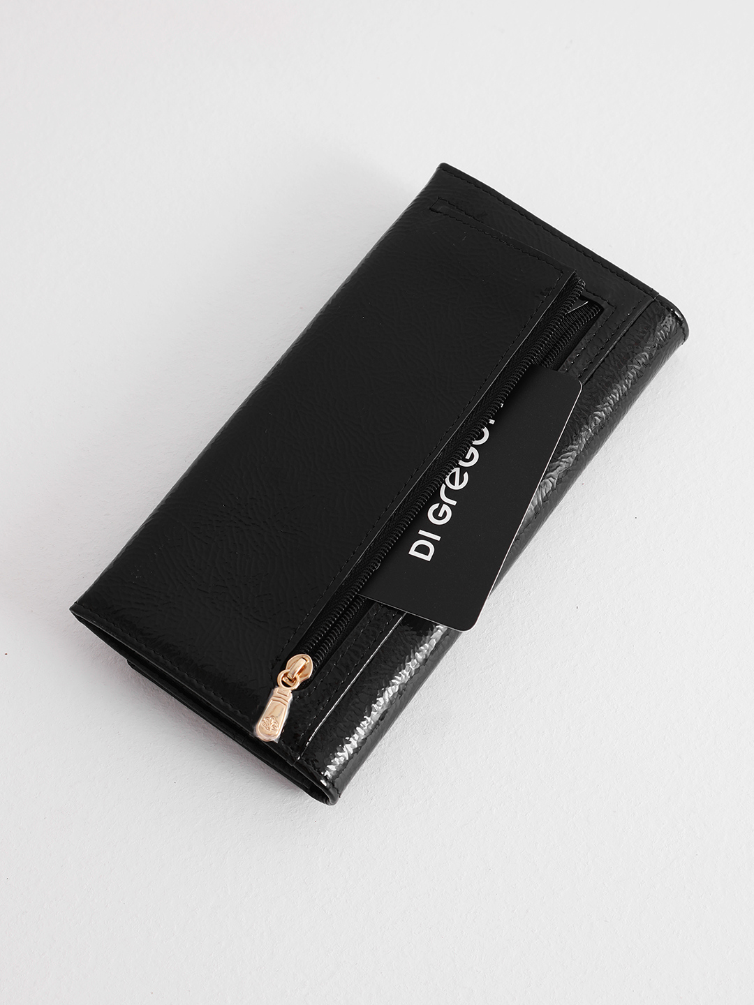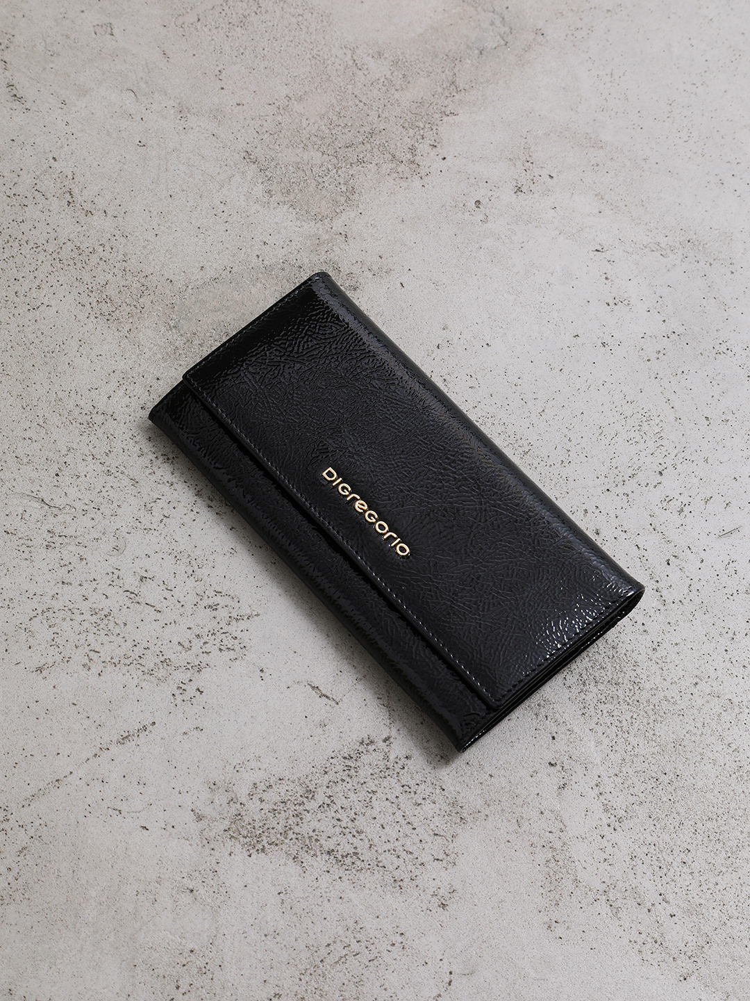 Чёрный лаковый кошелёк с металлическими буквами логотипа Di Gregorio