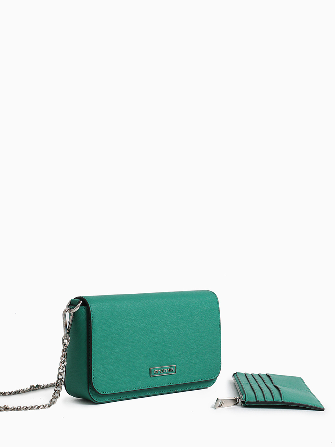 Сумка-клатч с дополнительным кошельком от CROMIA в зелёном цвете