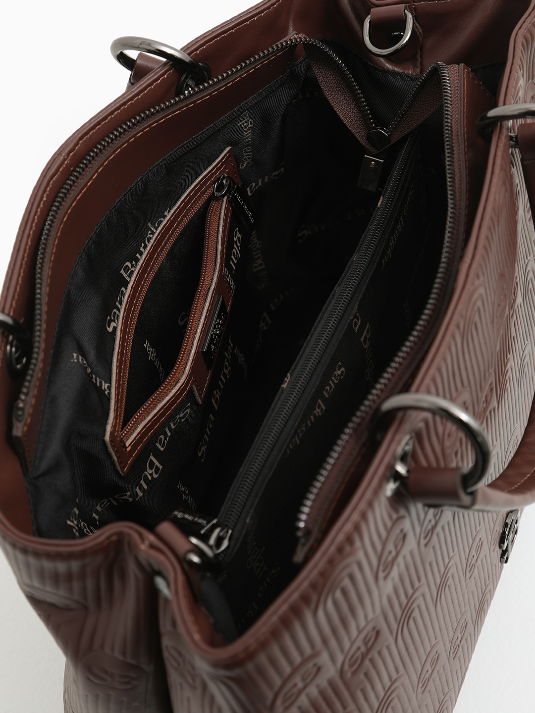 Сумка-тоут с рельефным паттерном в виде логотипа Sara Burglar коричневого оттенка