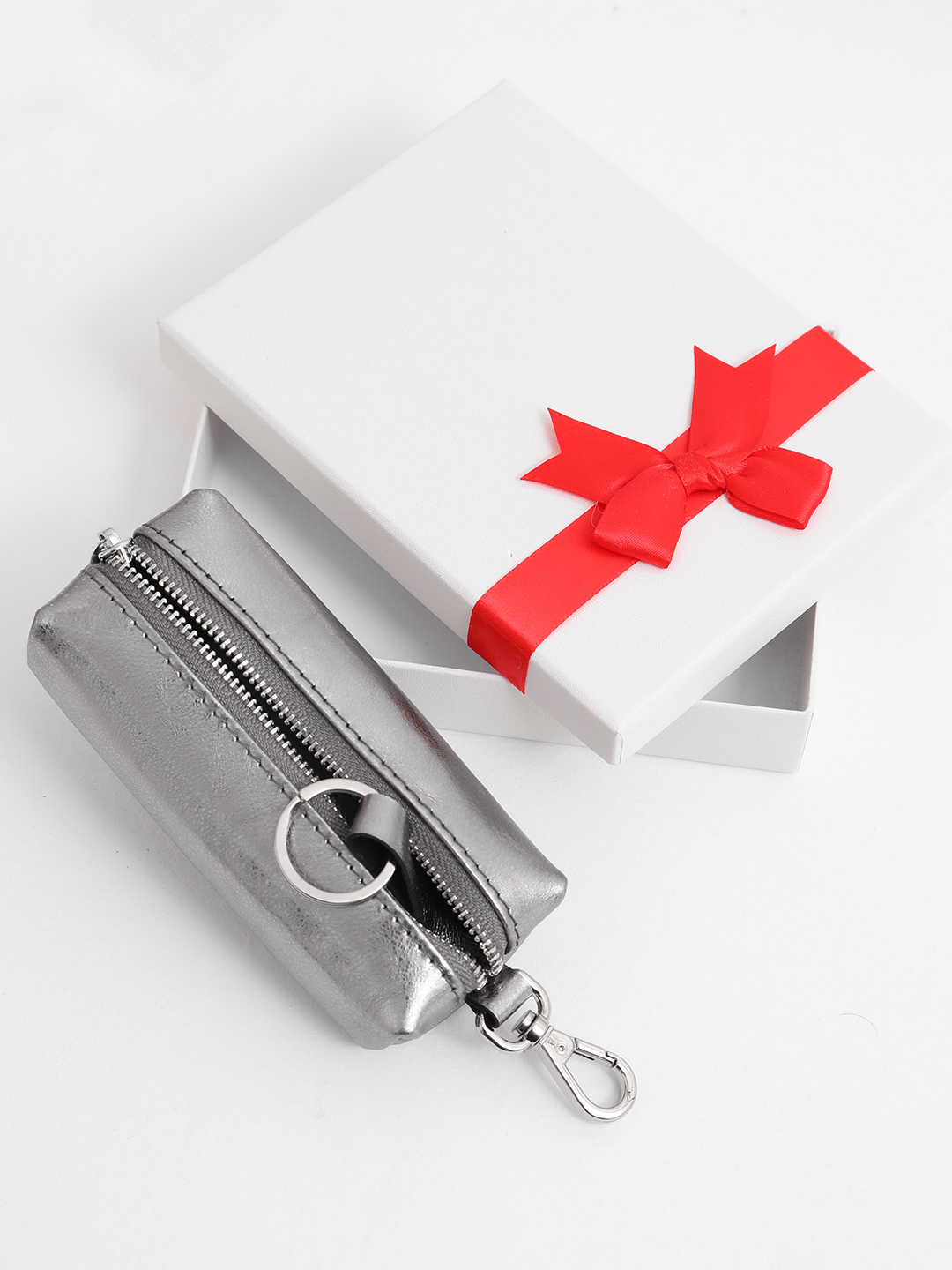 Ключница из натуральной кожи в подарочной коробке бренда Alessandro Beato серебристого оттенка