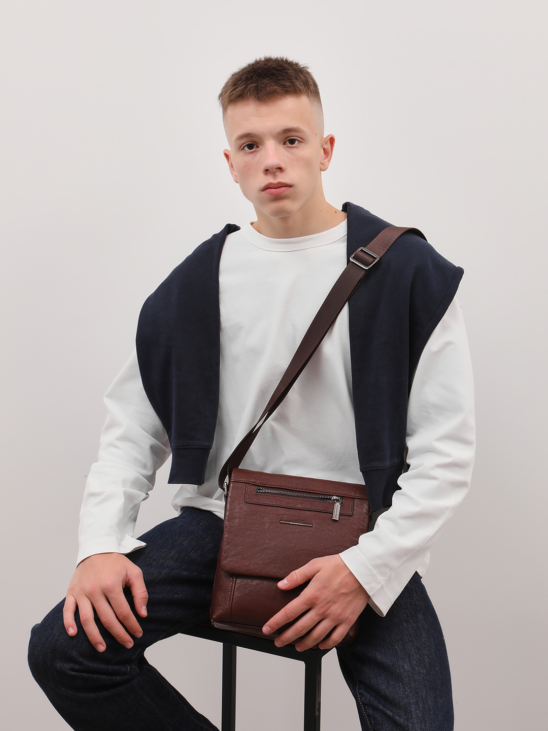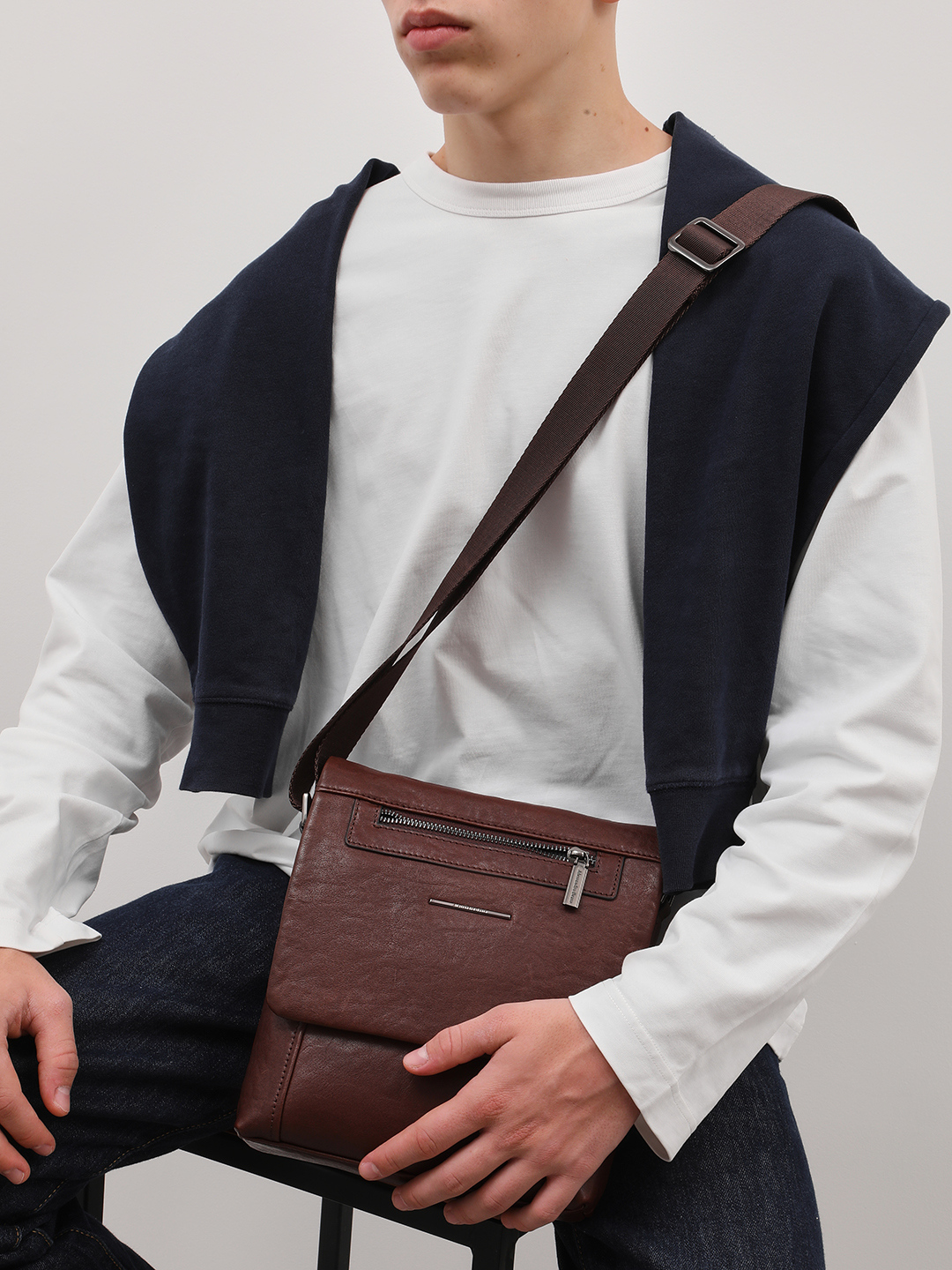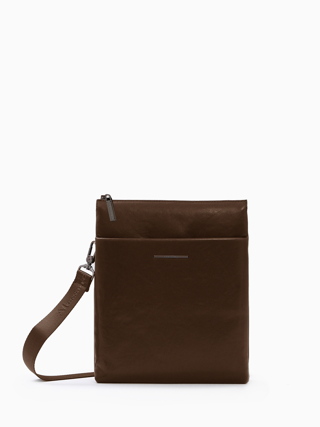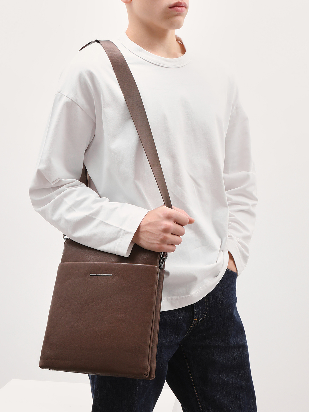 Сумка-планшет с передним карманом в винтажной коже коричневого цвета от Alessandro Beato