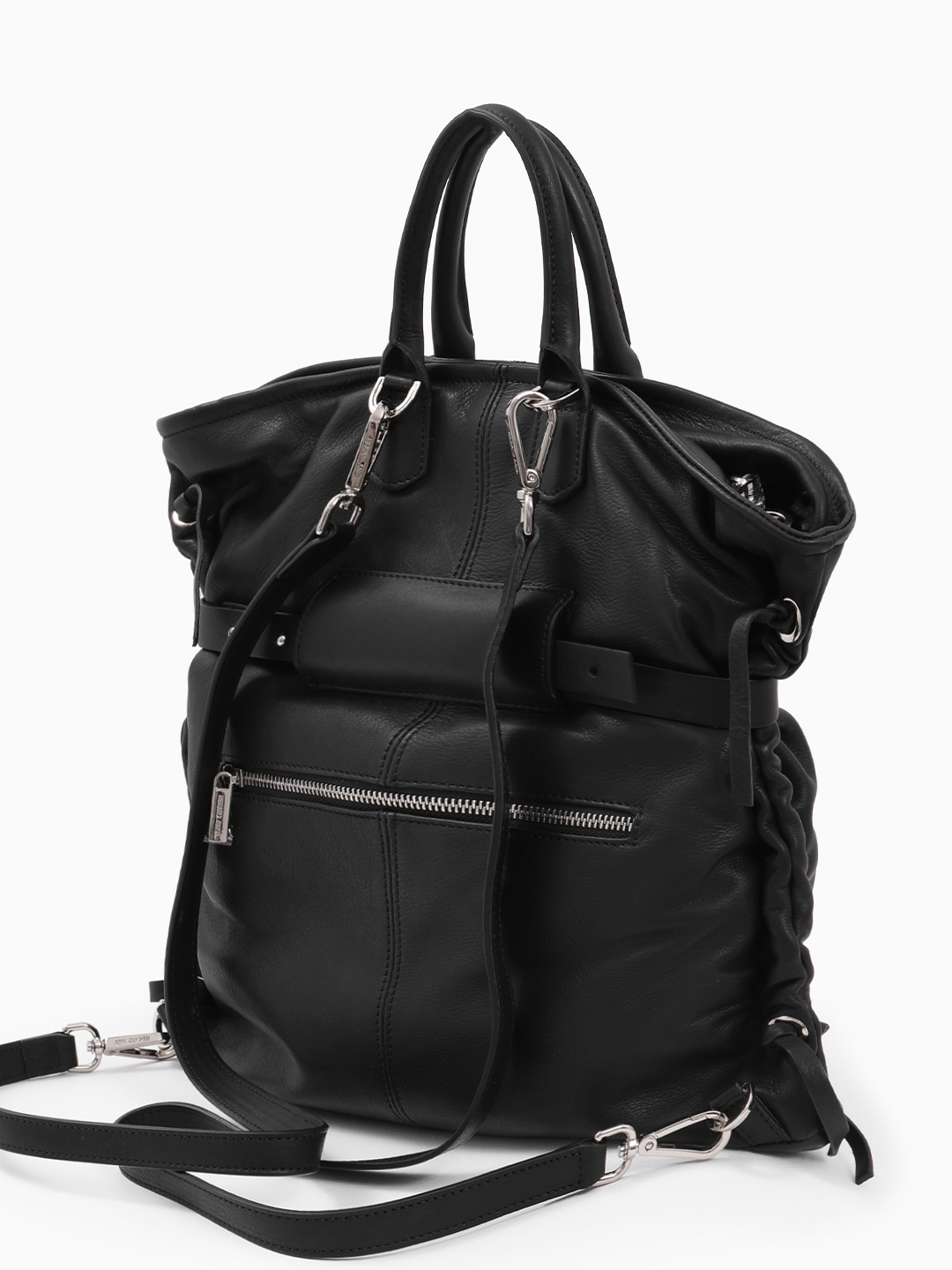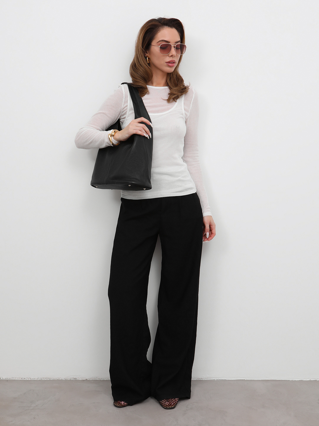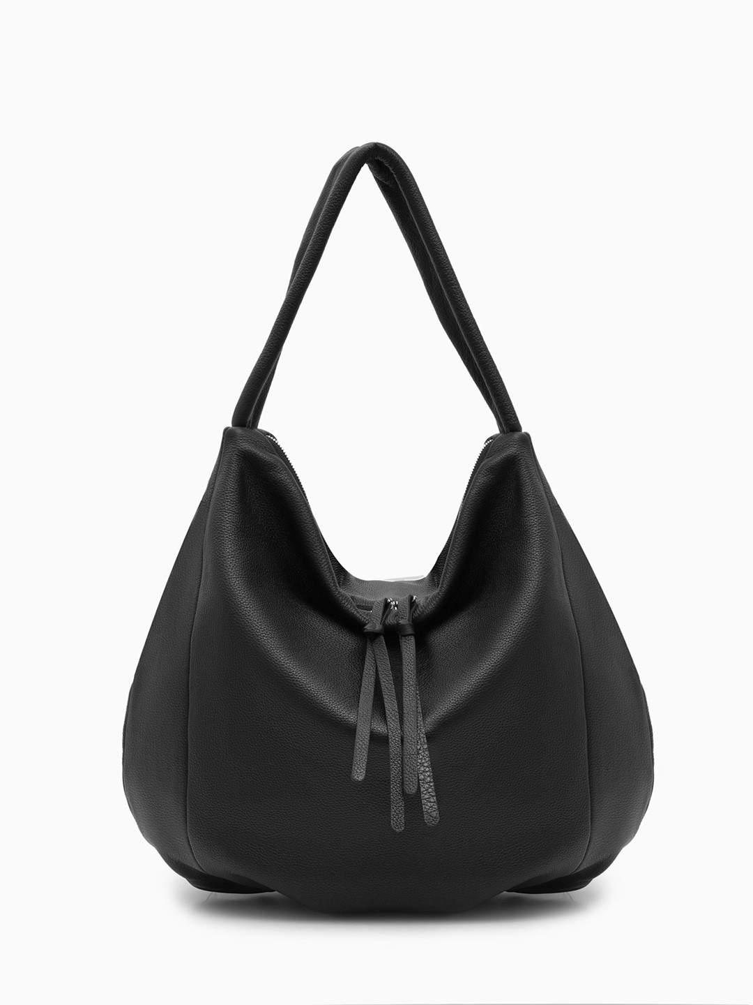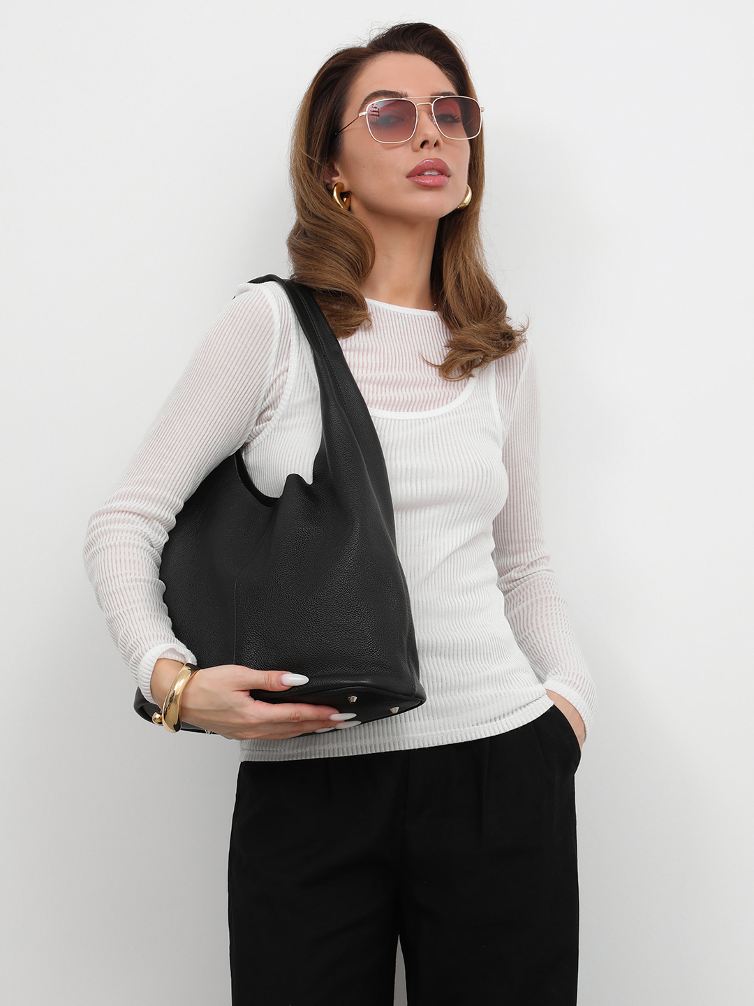 Сумка-мешок с длинными кожаными пуллерами от FOLLE в чёрном цвете