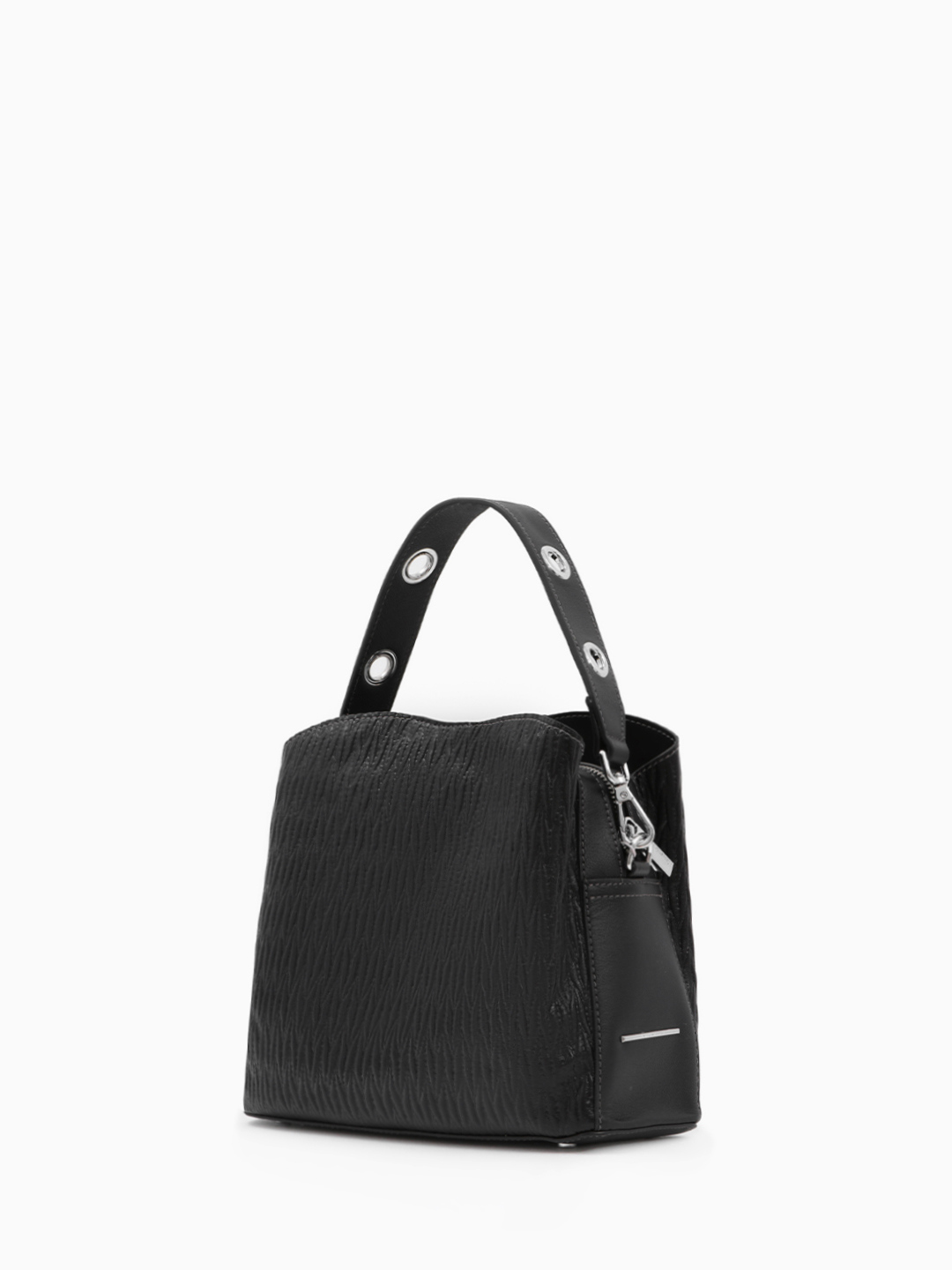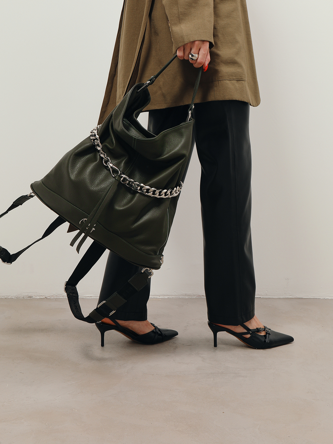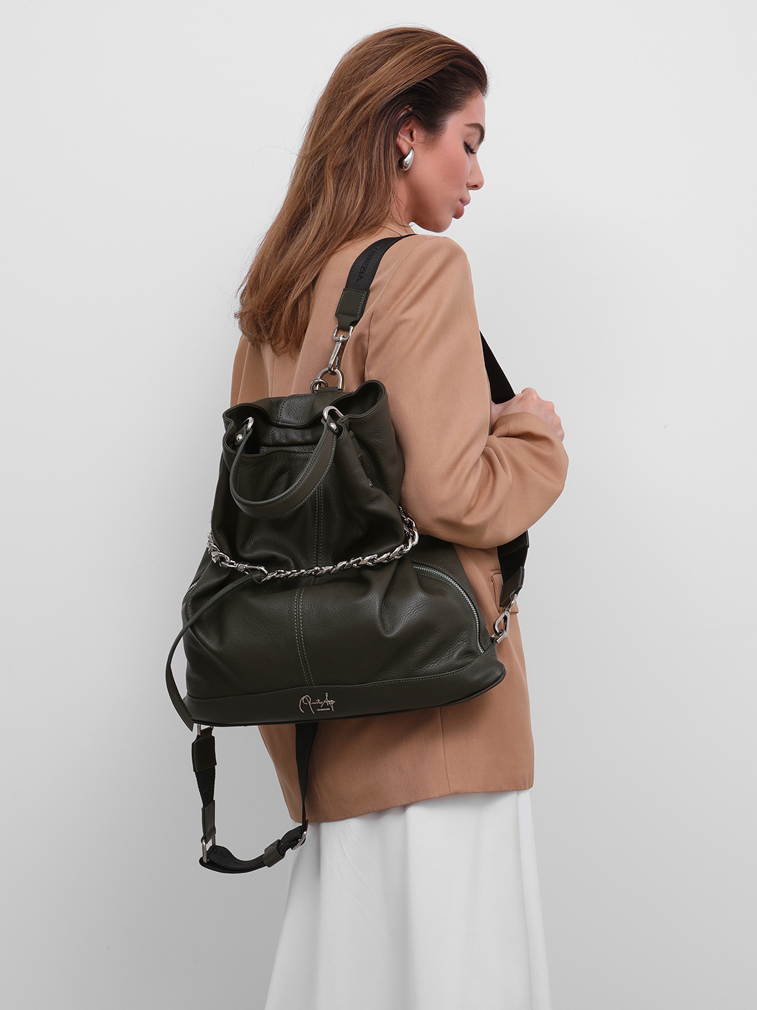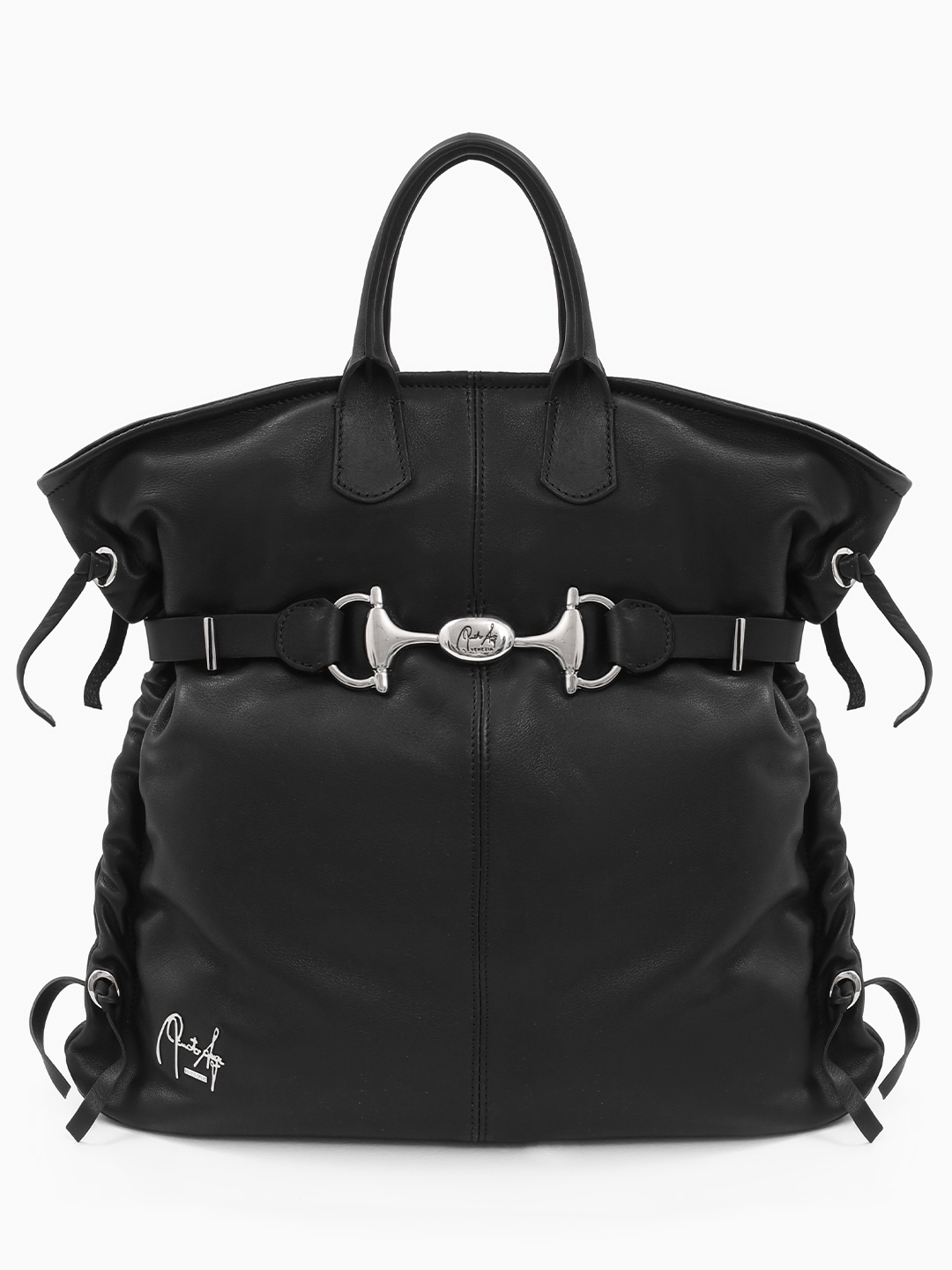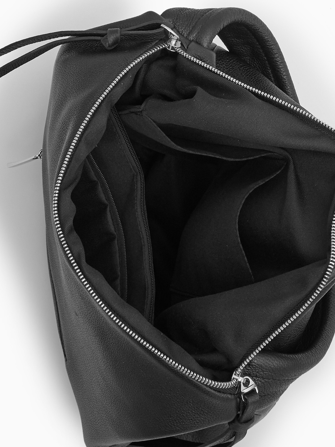 Сумка-мешок с длинными кожаными пуллерами от FOLLE в чёрном цвете