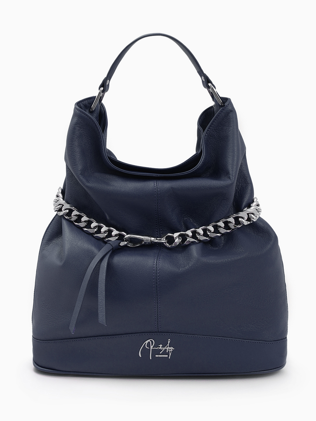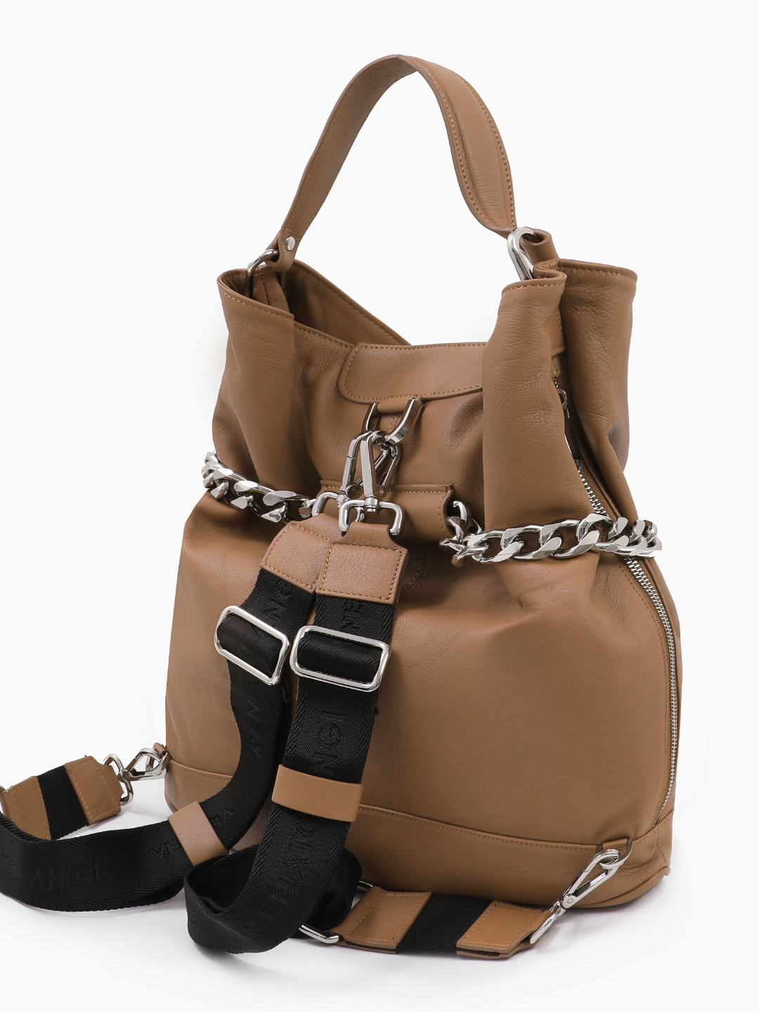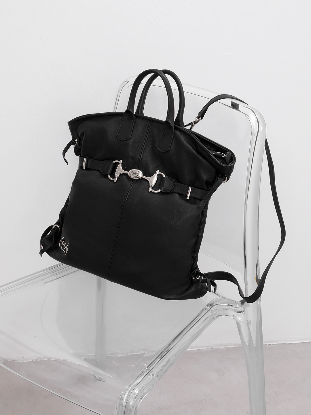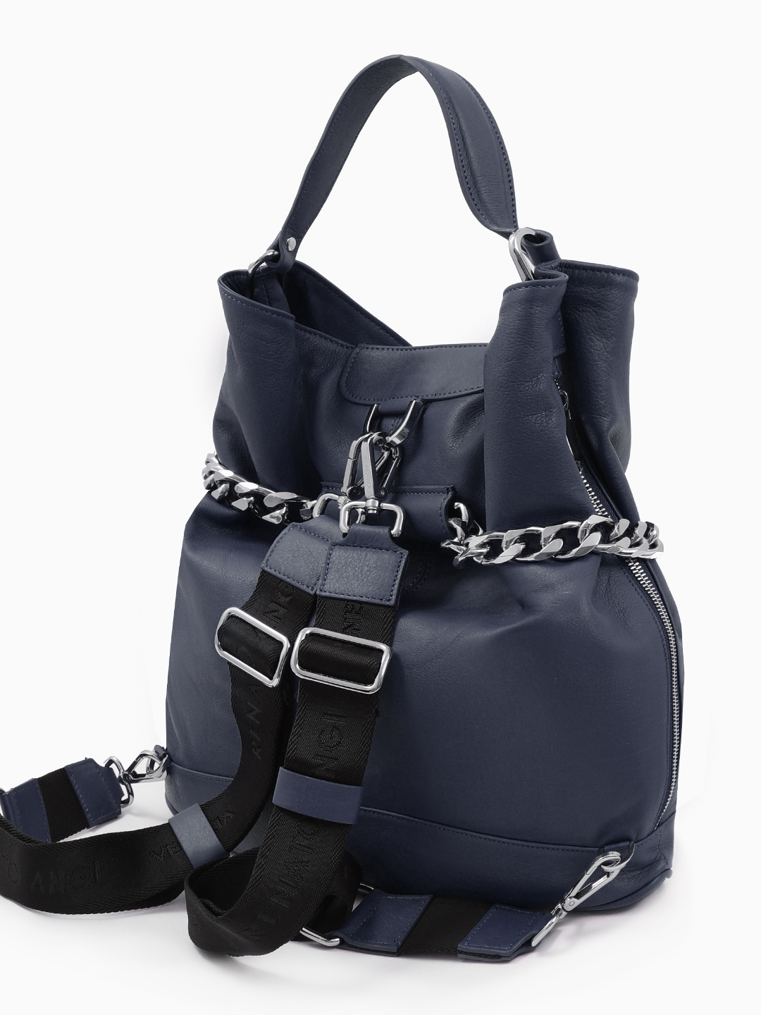 Сумка-мешок с длинными кожаными пуллерами от FOLLE в чёрном цвете