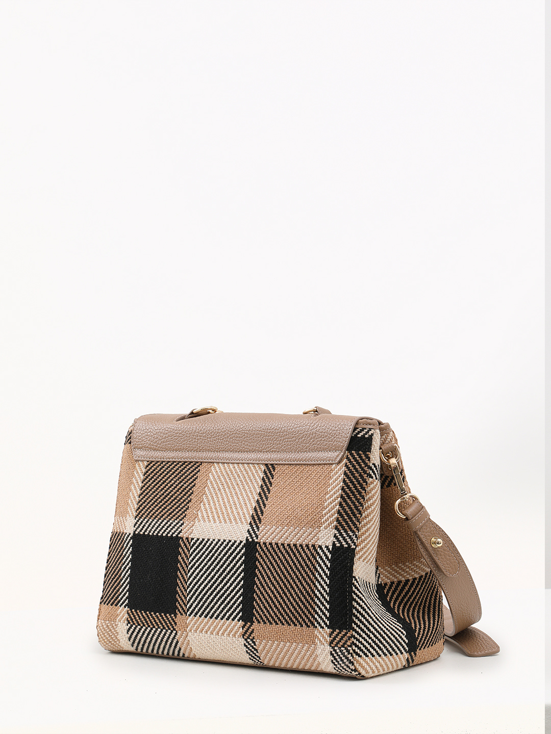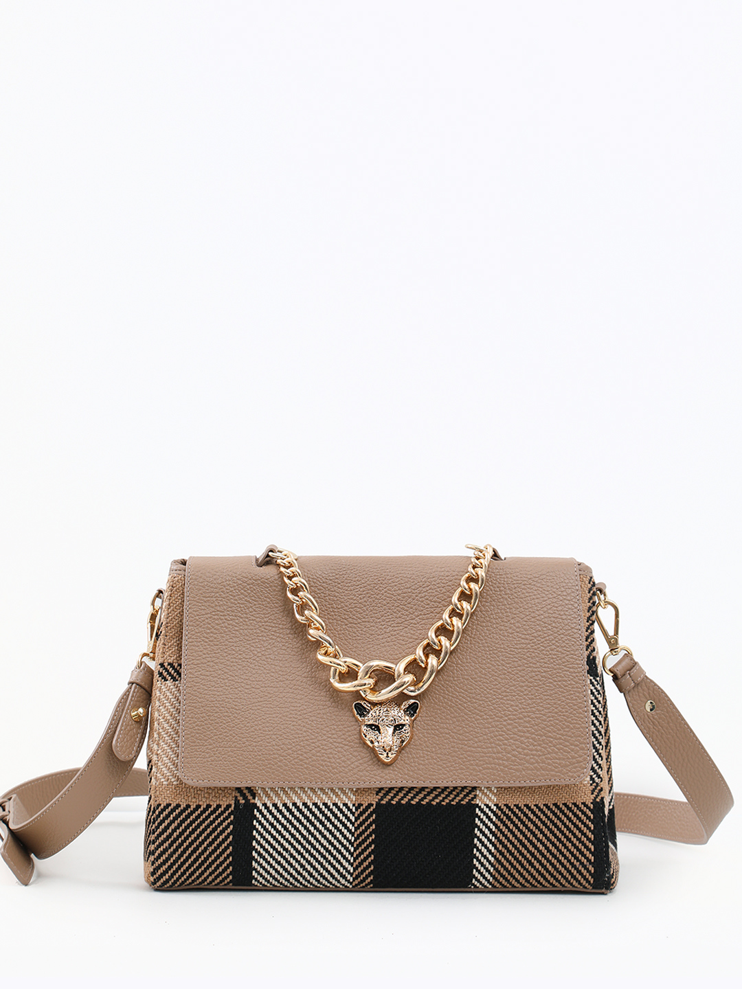 Cэтчел с головой леопарда и узором в клетку от KELLEN оттенка капучино