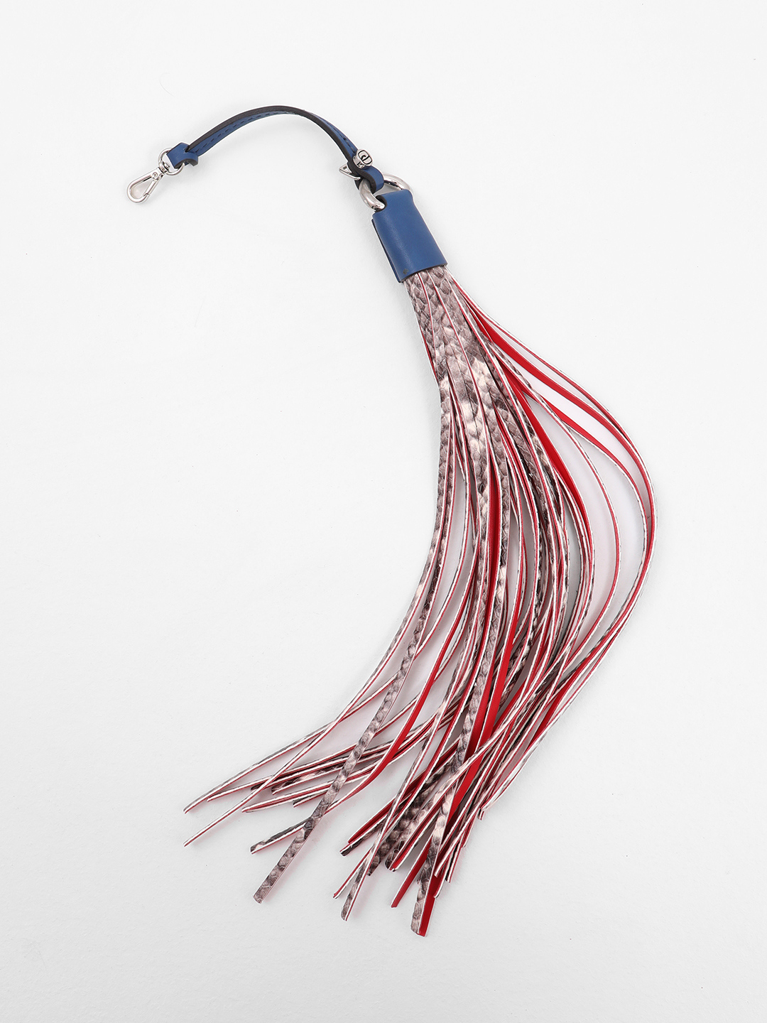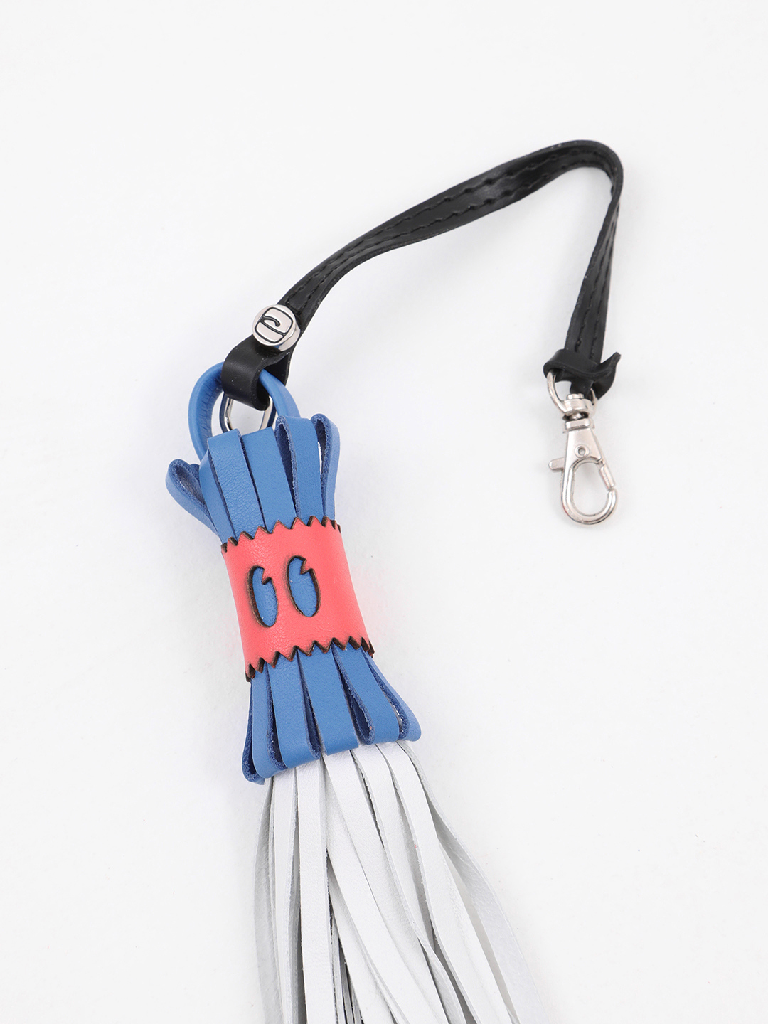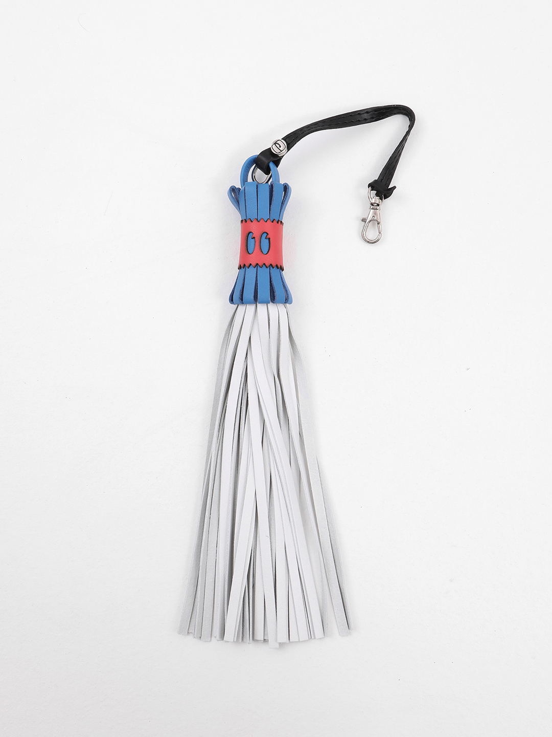 Брелок-подвеска в виде кисточки в сочетании белого и голубого оттенков