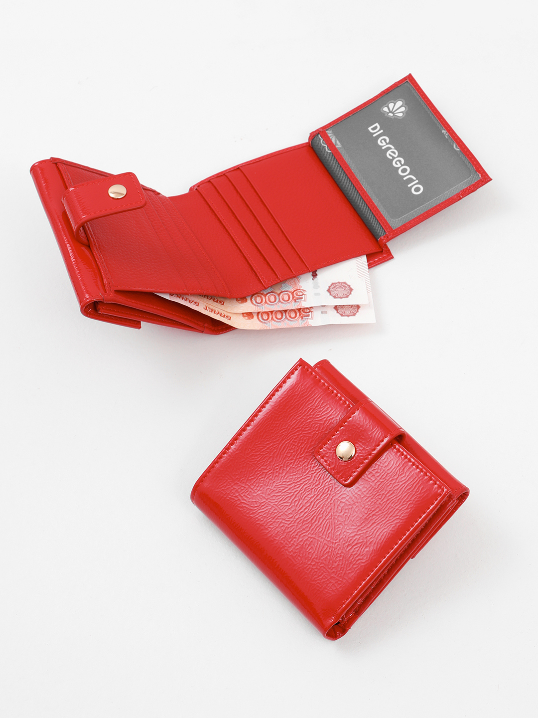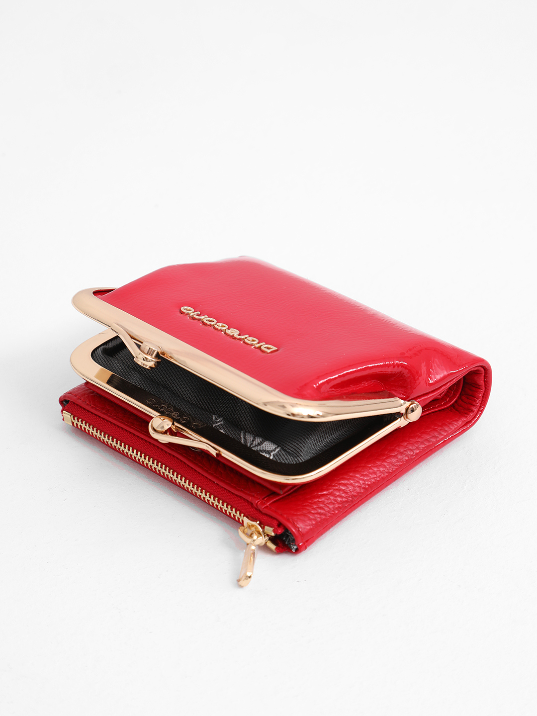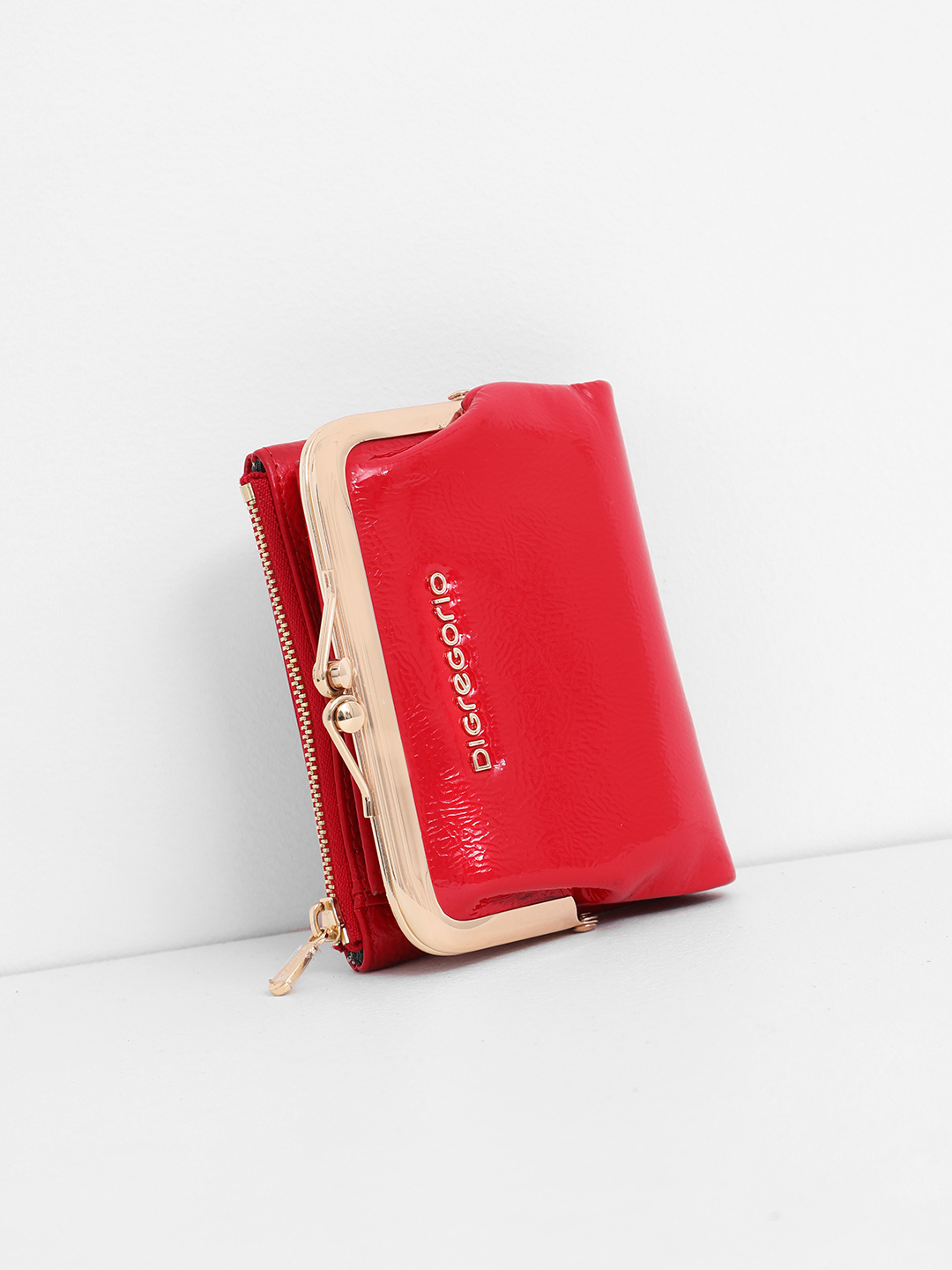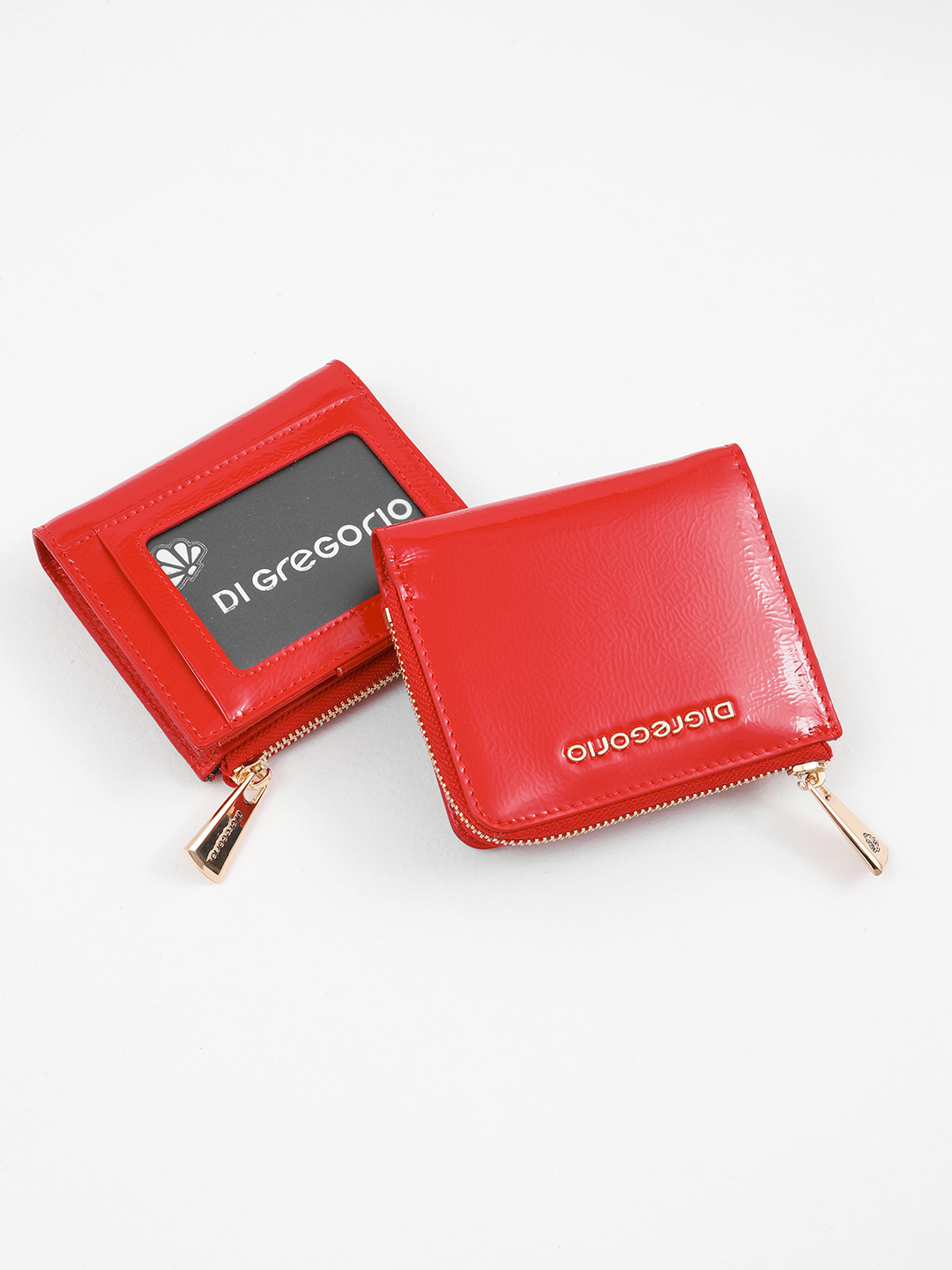 Небольшой кошелёк с застёжкой-фермуаром из лаковой кожи красного цвета от Di Gregorio