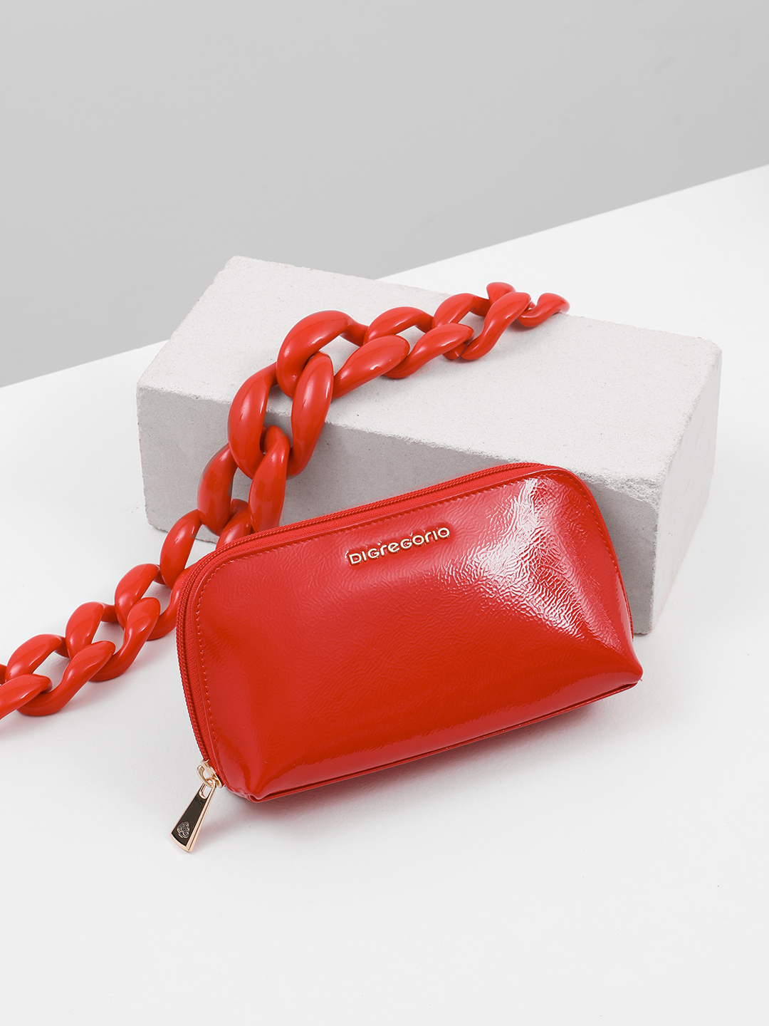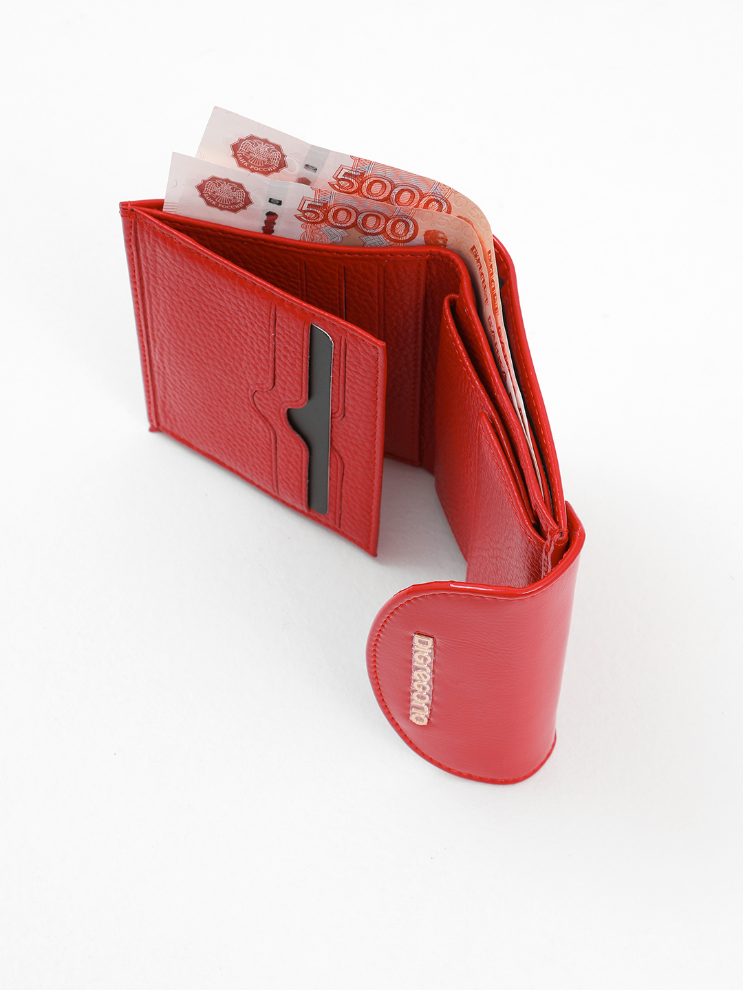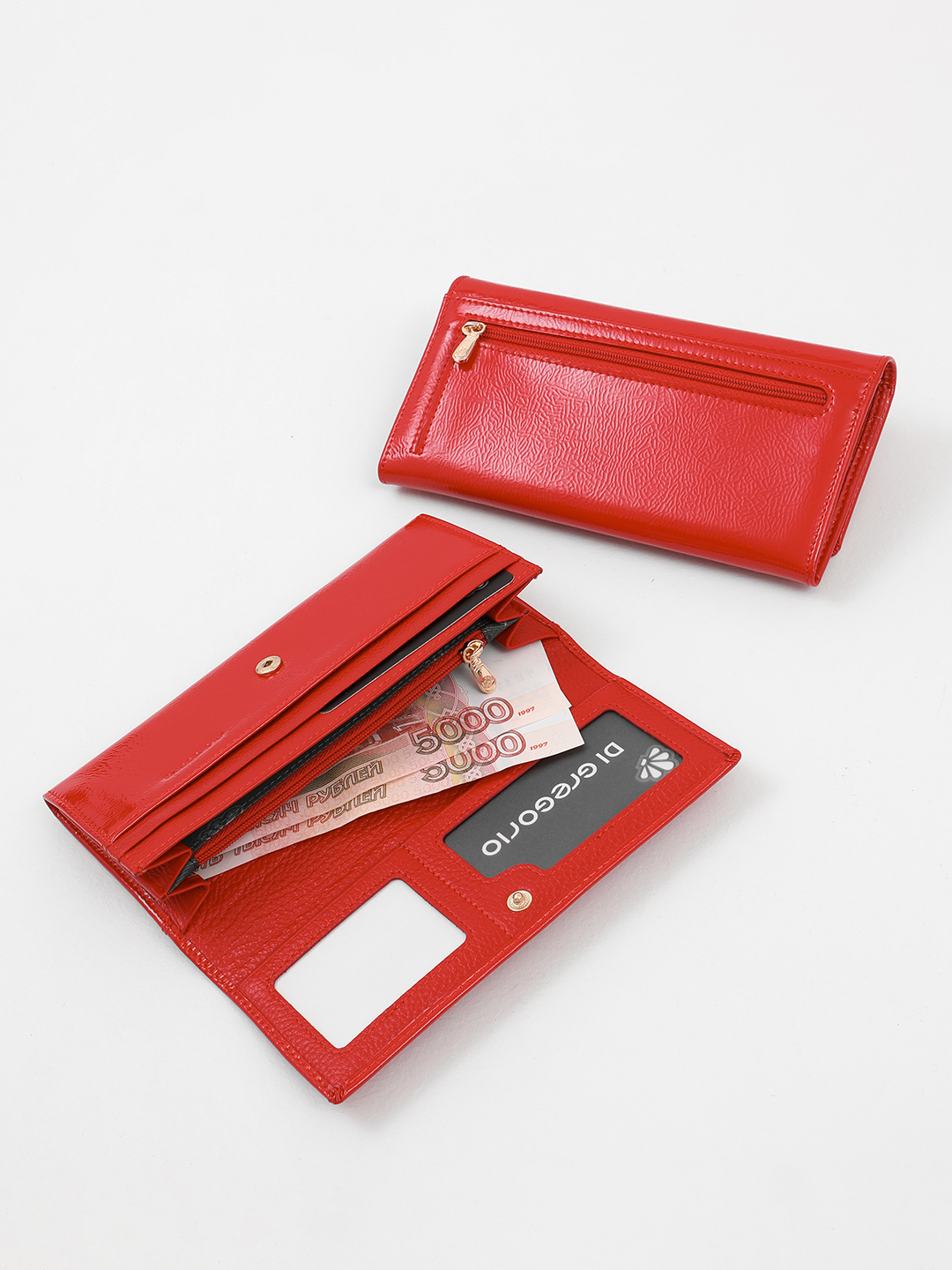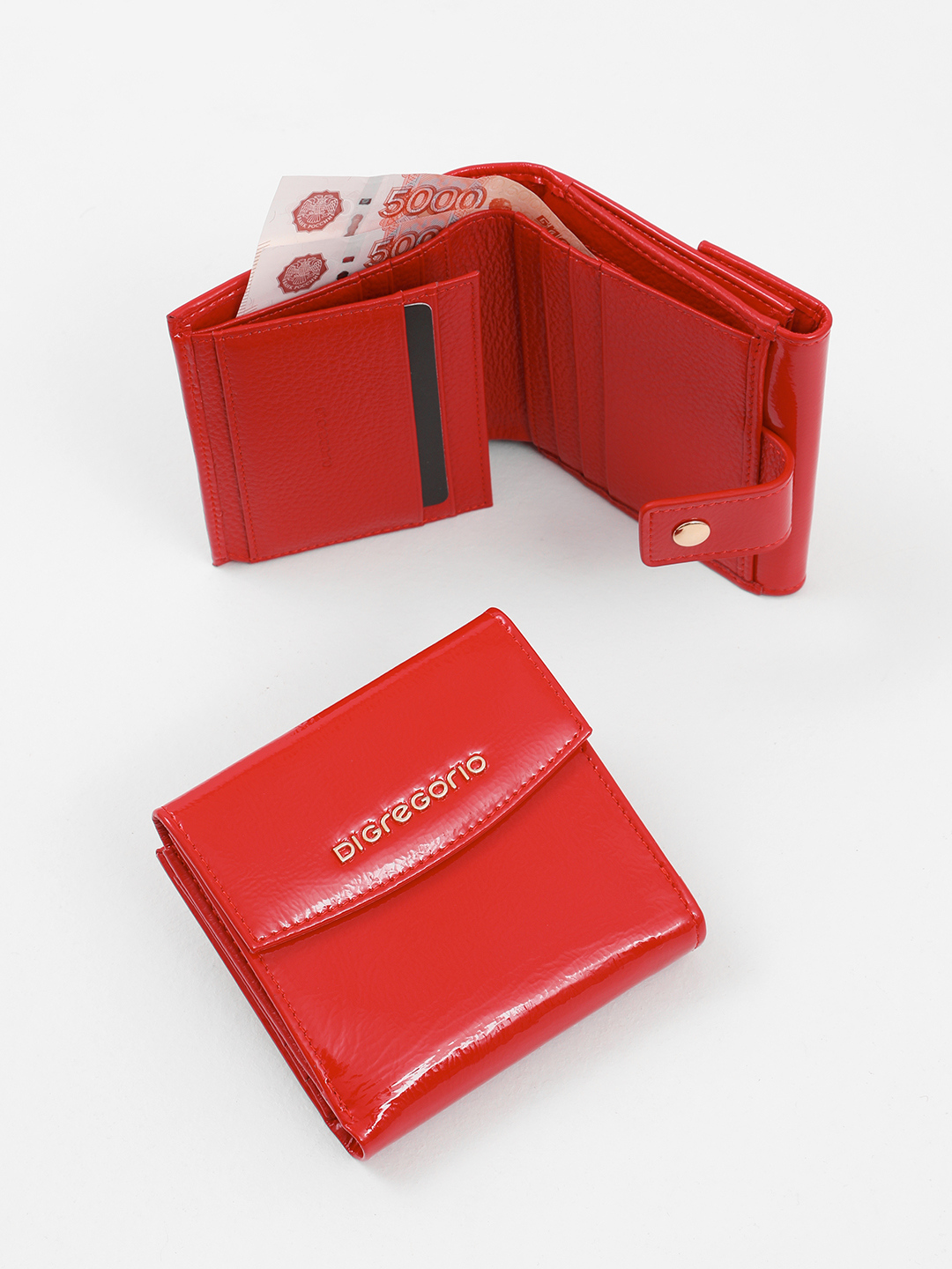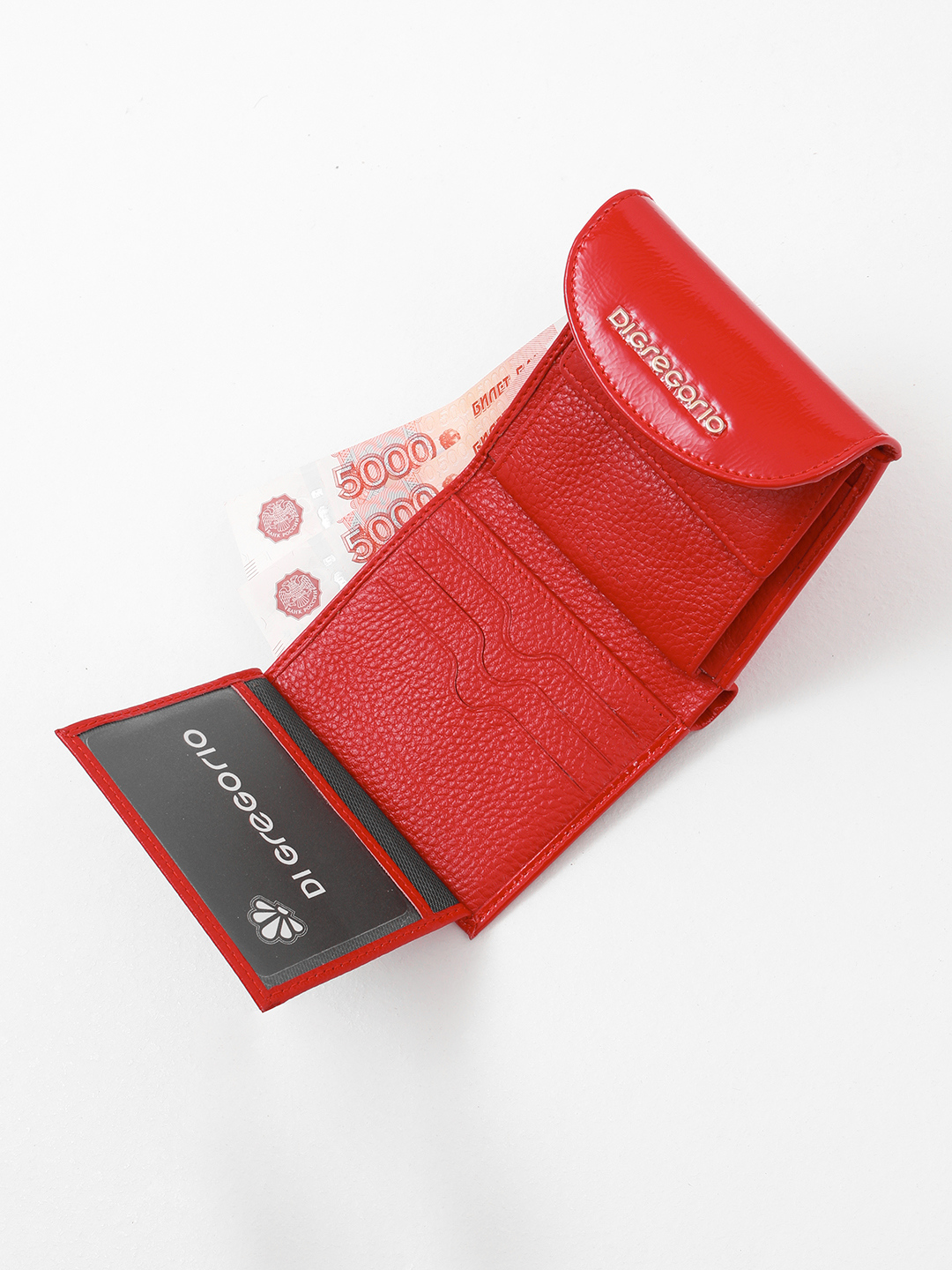 Небольшой кошелёк с застёжкой-фермуаром из лаковой кожи красного цвета от Di Gregorio