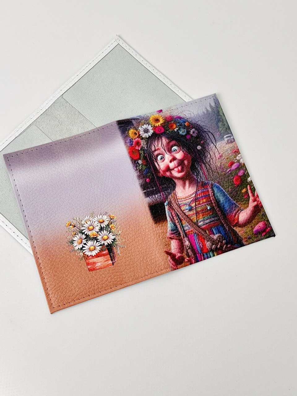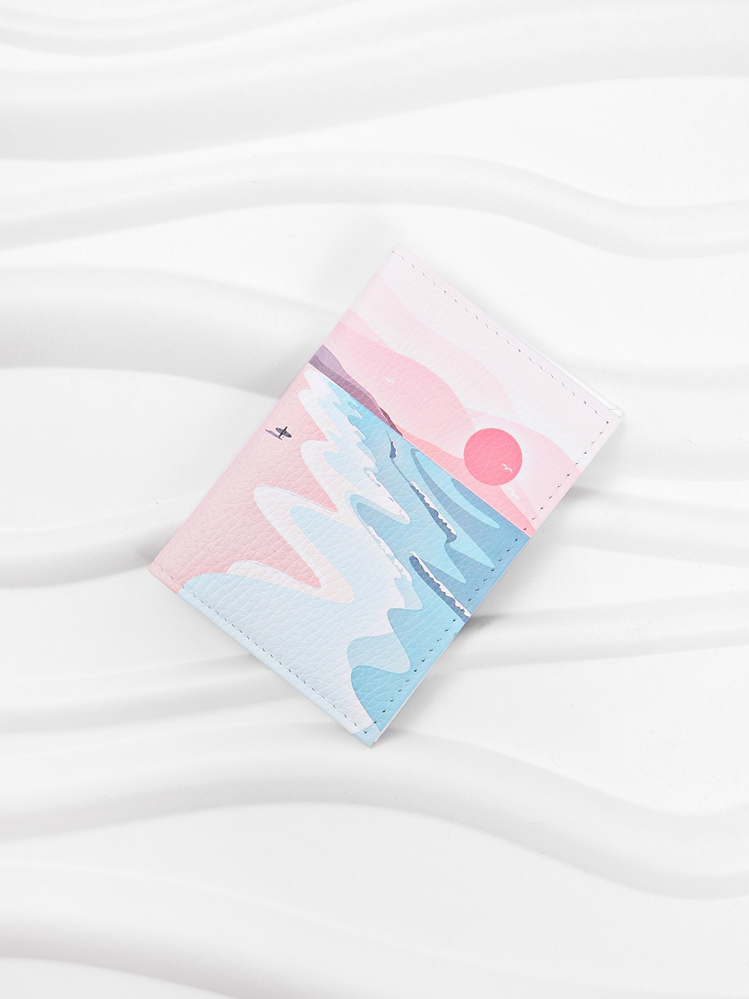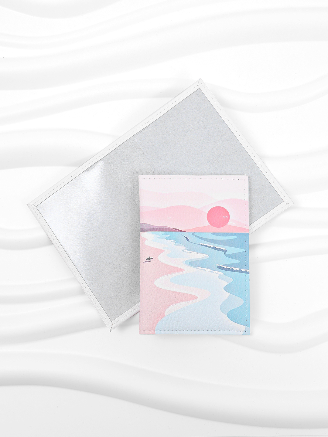 Обложка из натуральной кожи от бренда Alessandro Beato с принтом "закат на пляже"