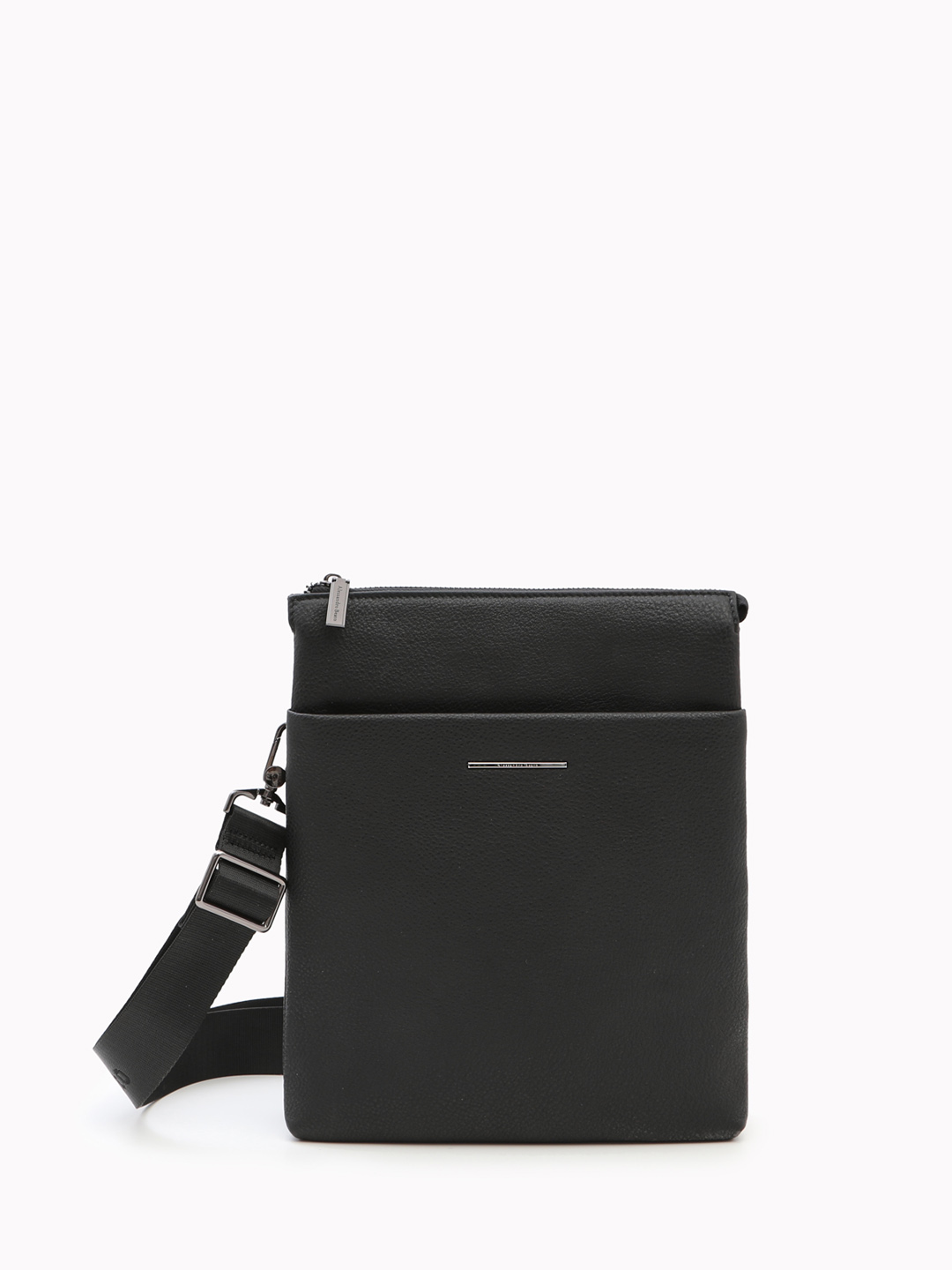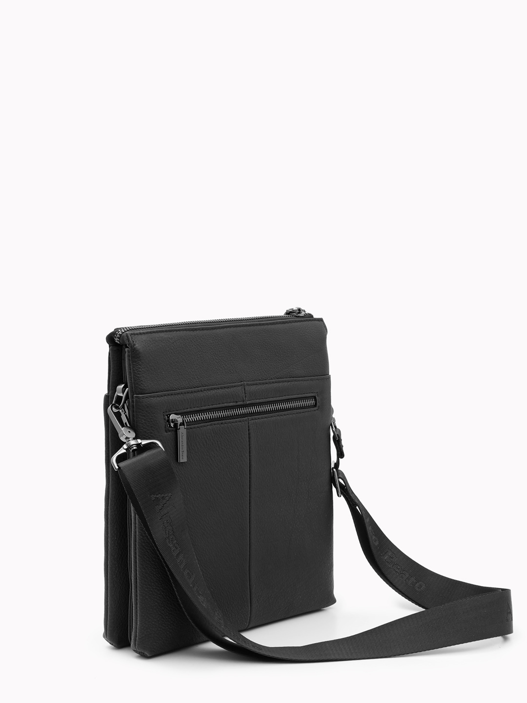 Сумка-планшет с передним карманом в коже чёрного цвета от Alessandro Beato