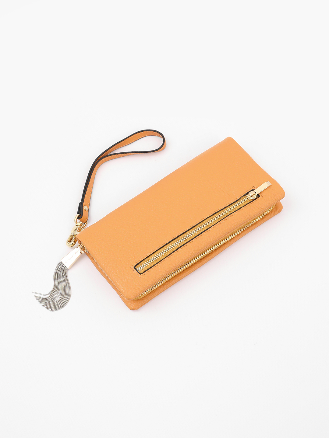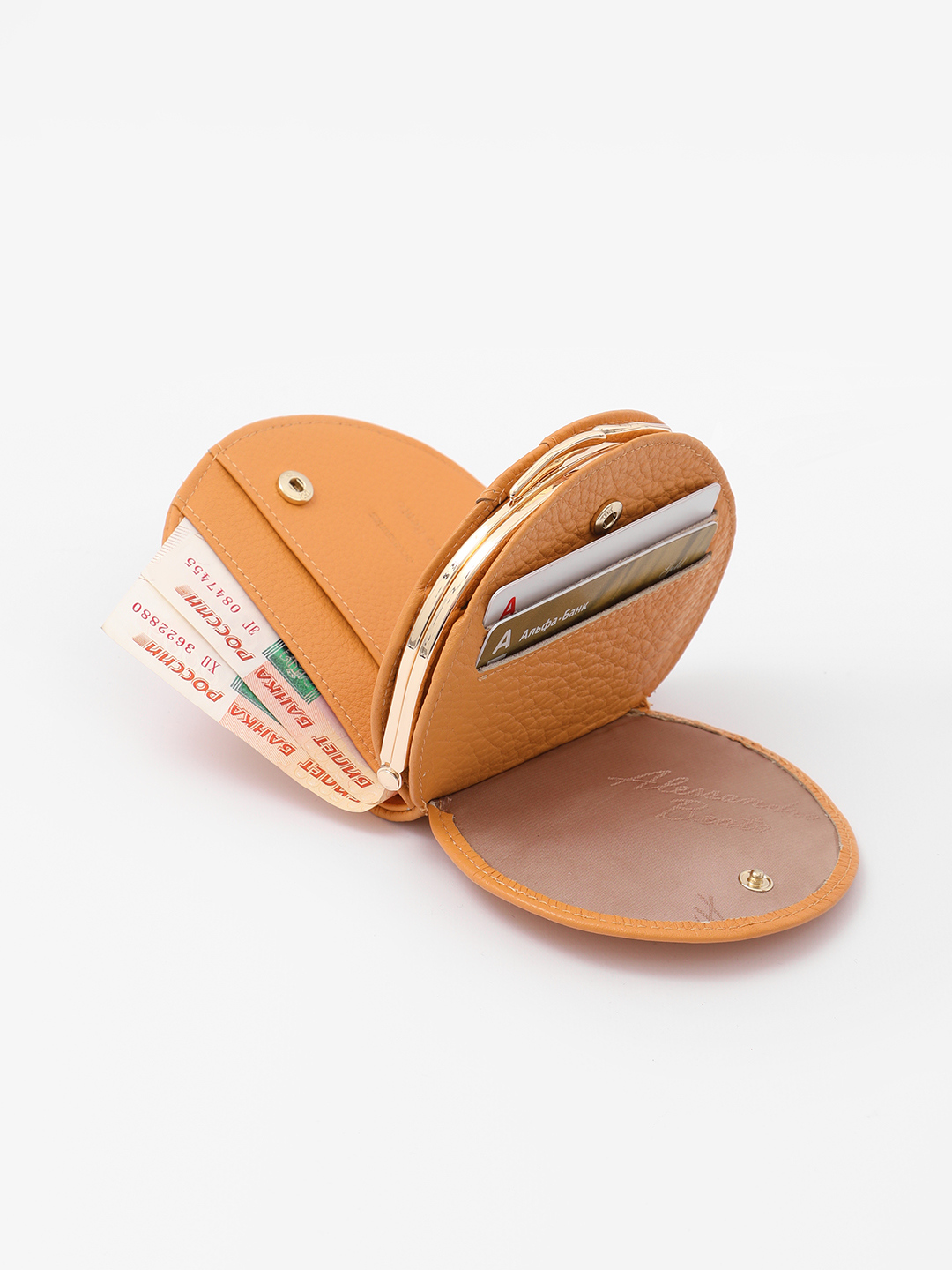 Кошелёк-бумажник с металлическим пуллером и золотистой фурнитурой от Alessandro Beato в апельсиновом оттенке
