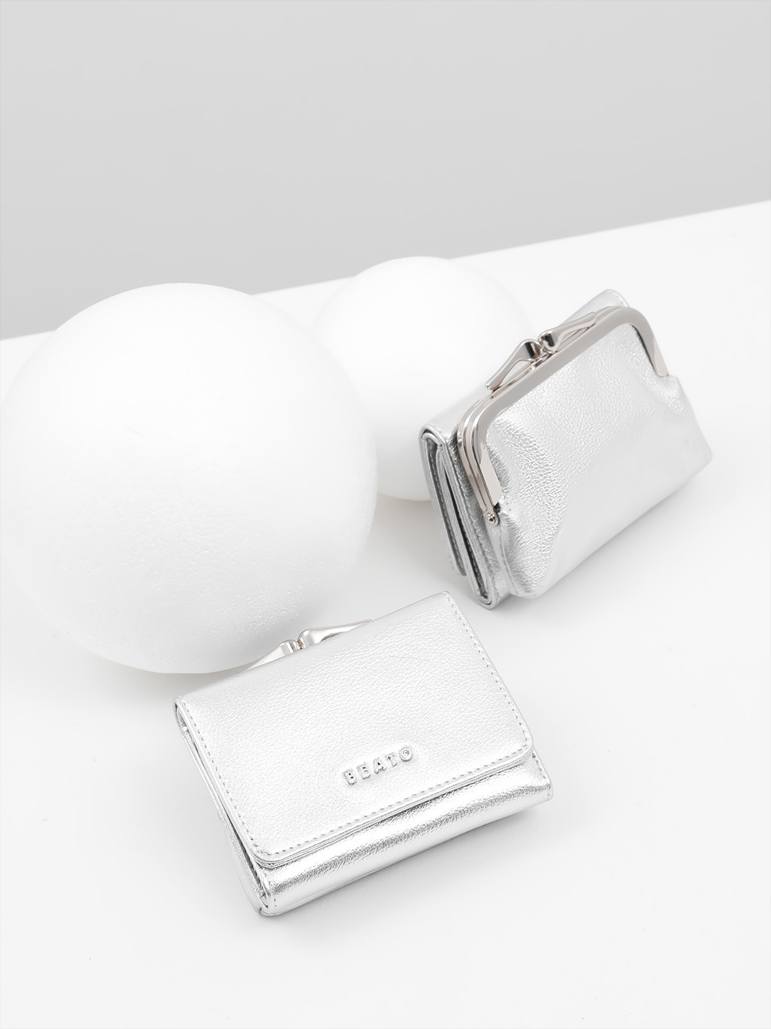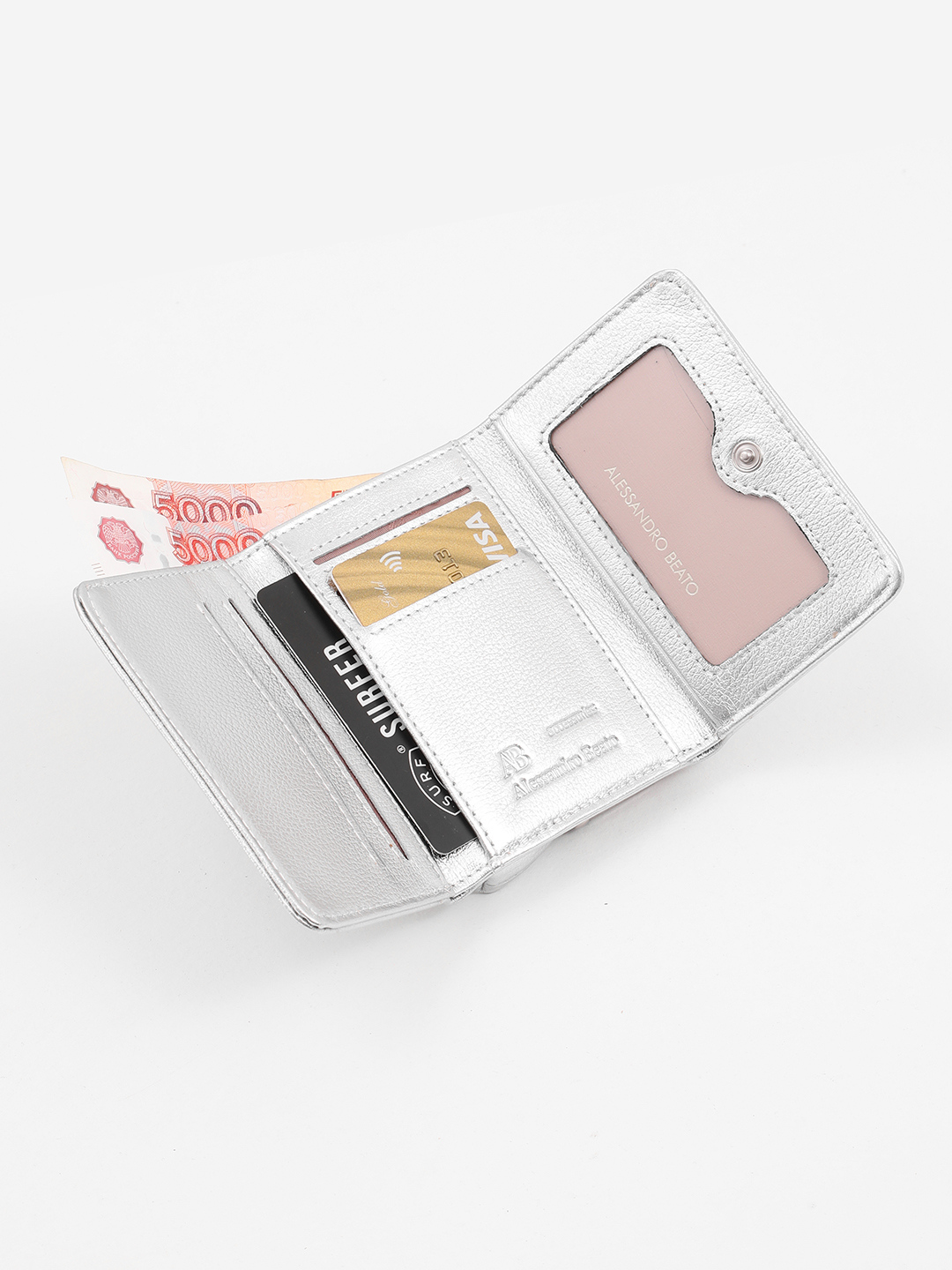 Серебристый мини-кошелёк с застёжкой-фермуаром и логотипом Alessandro Beato