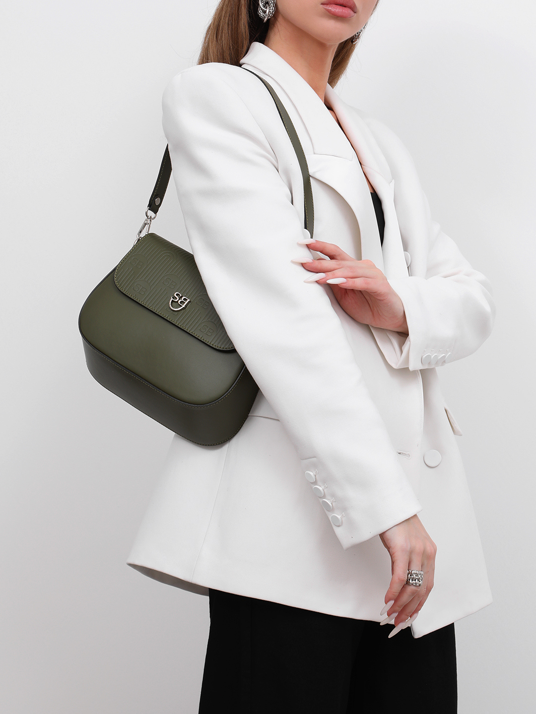 Сумка со скошенным дном и монограммой Sara Burglar в зелёном цвете