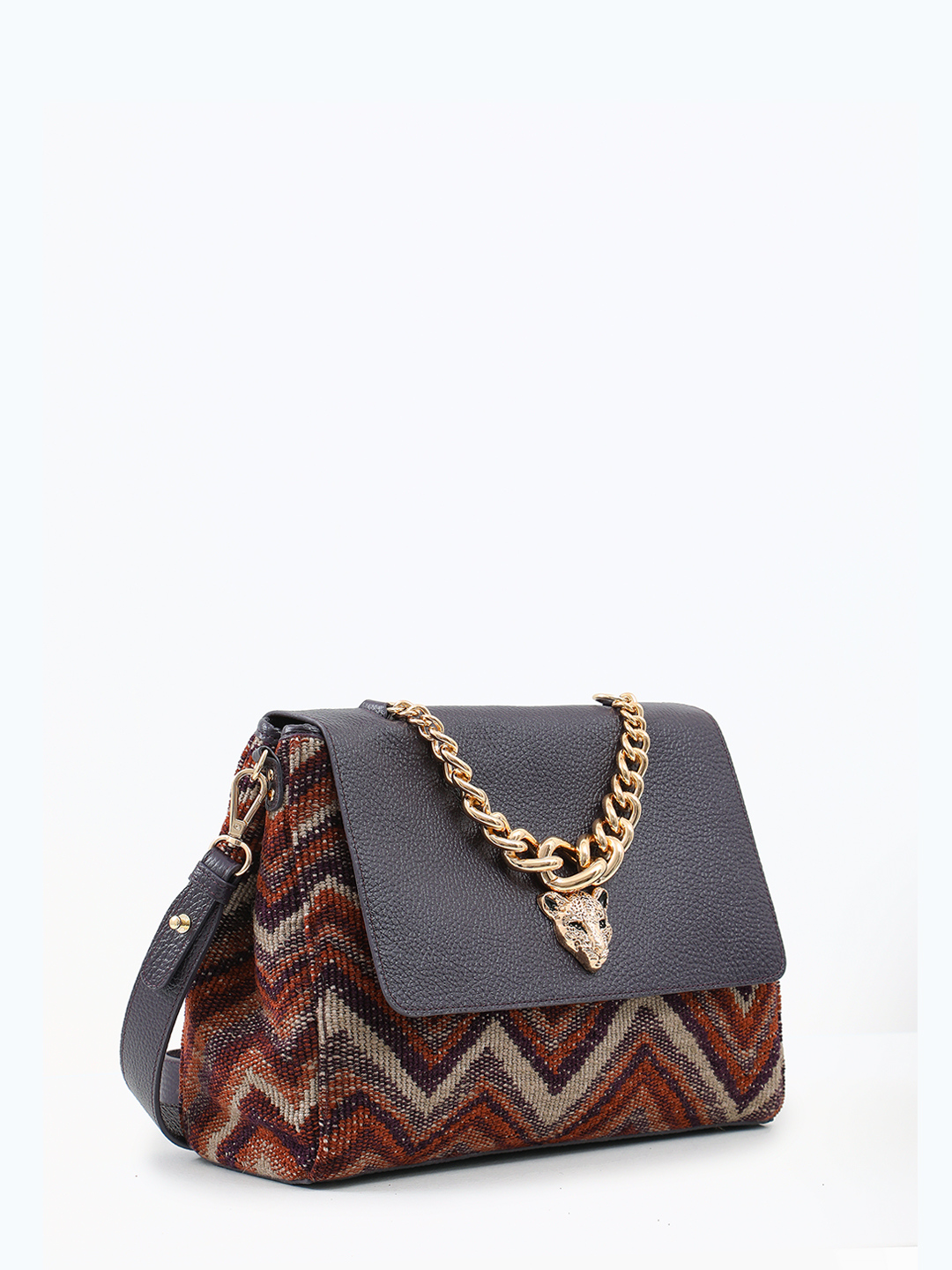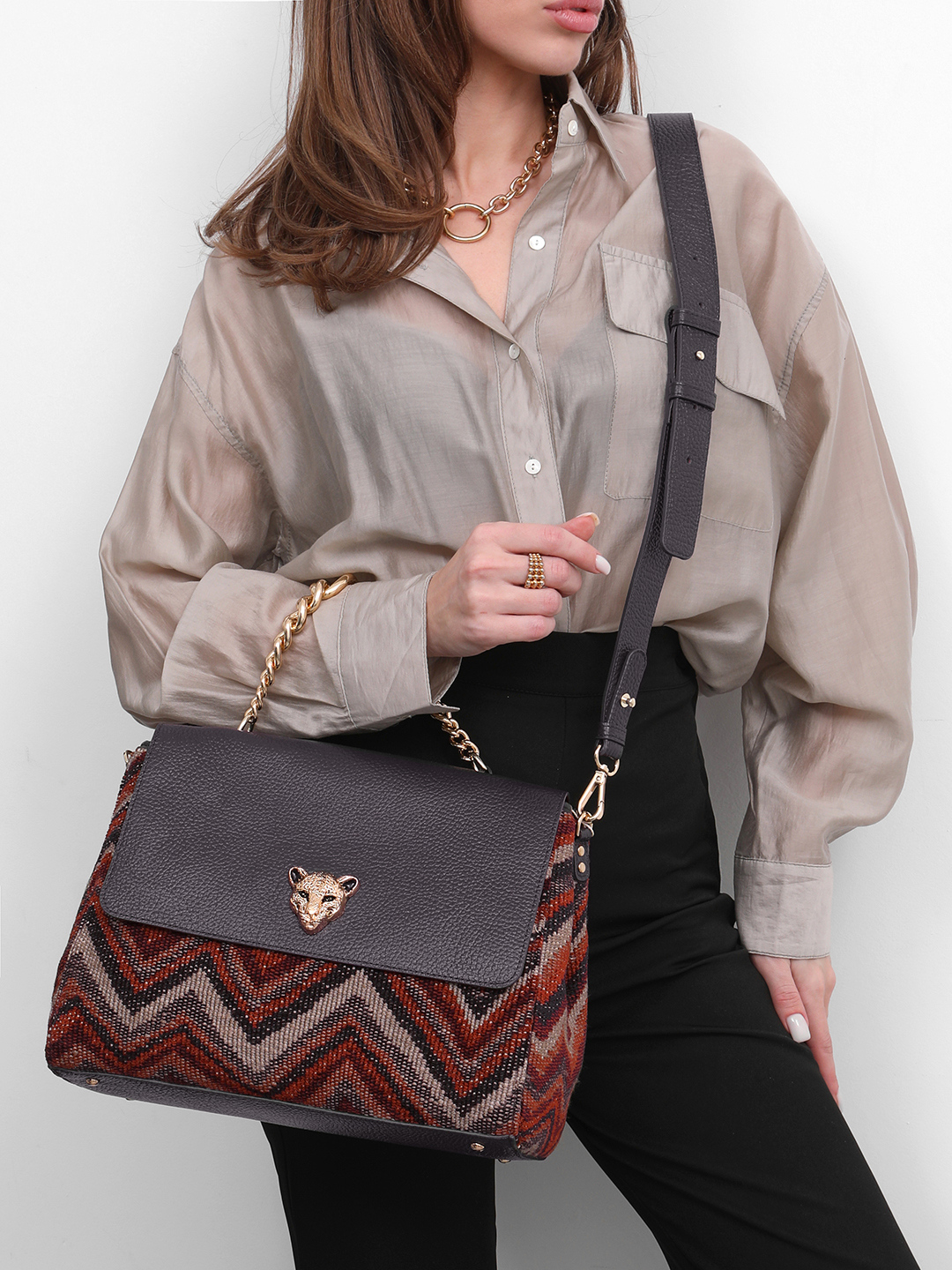 Cэтчел с головой леопарда и геометричным узором от KELLEN баклажанового оттенка