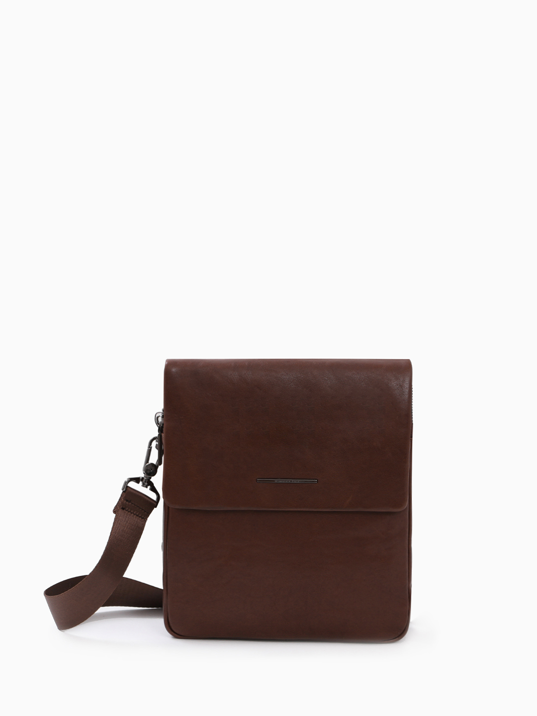 Сумка-планшет с передним клапаном в винтажной коже коричневого цвета от Alessandro Beato