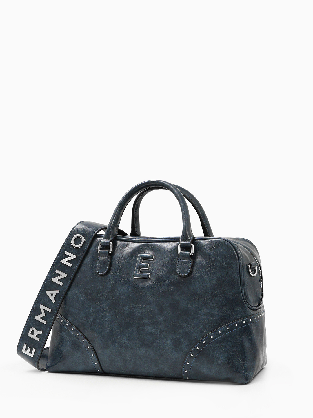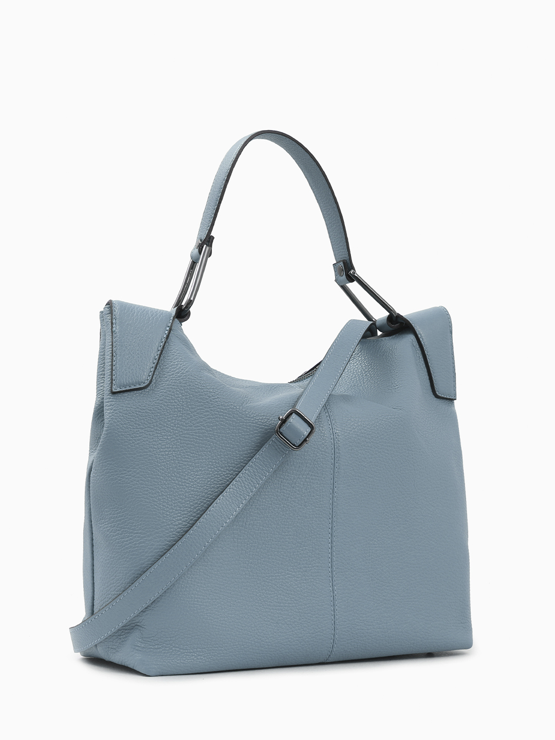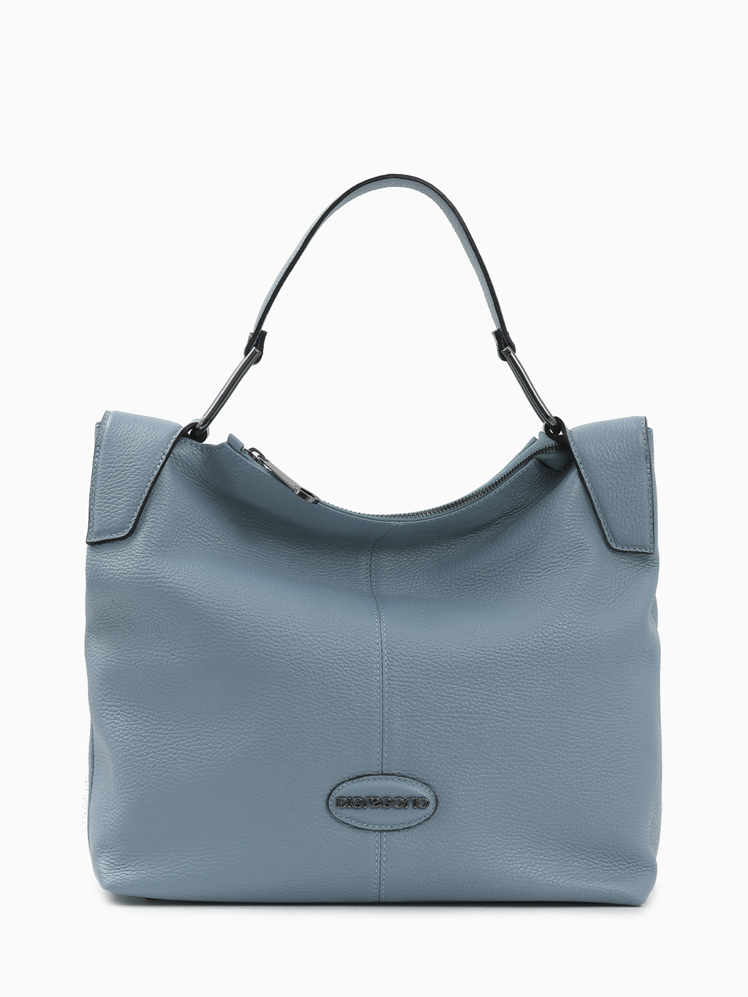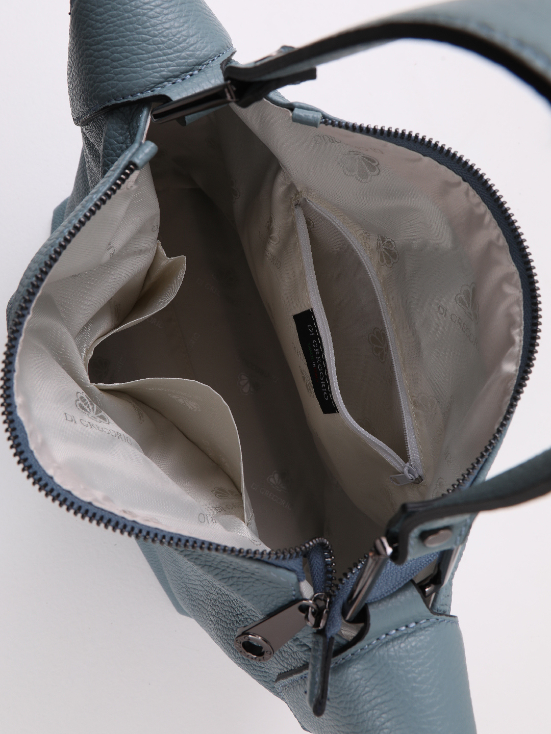 Сумка с круглой пряжкой и металлическими буквами Di Gregorio серо-голубого оттенка avio