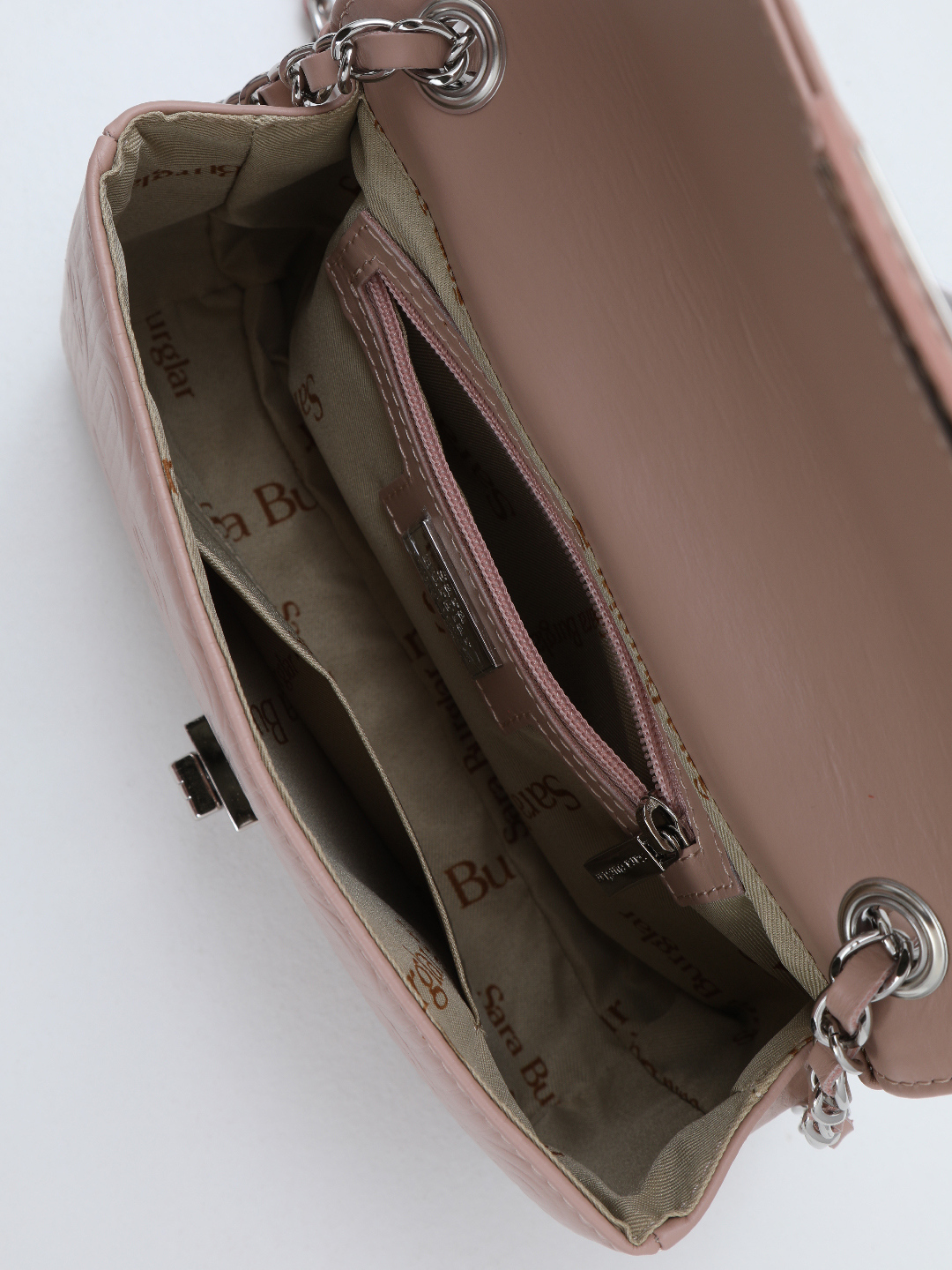 Прямоугольная кросс-боди с брендированным штампом Sara Burglar в оттенке nude