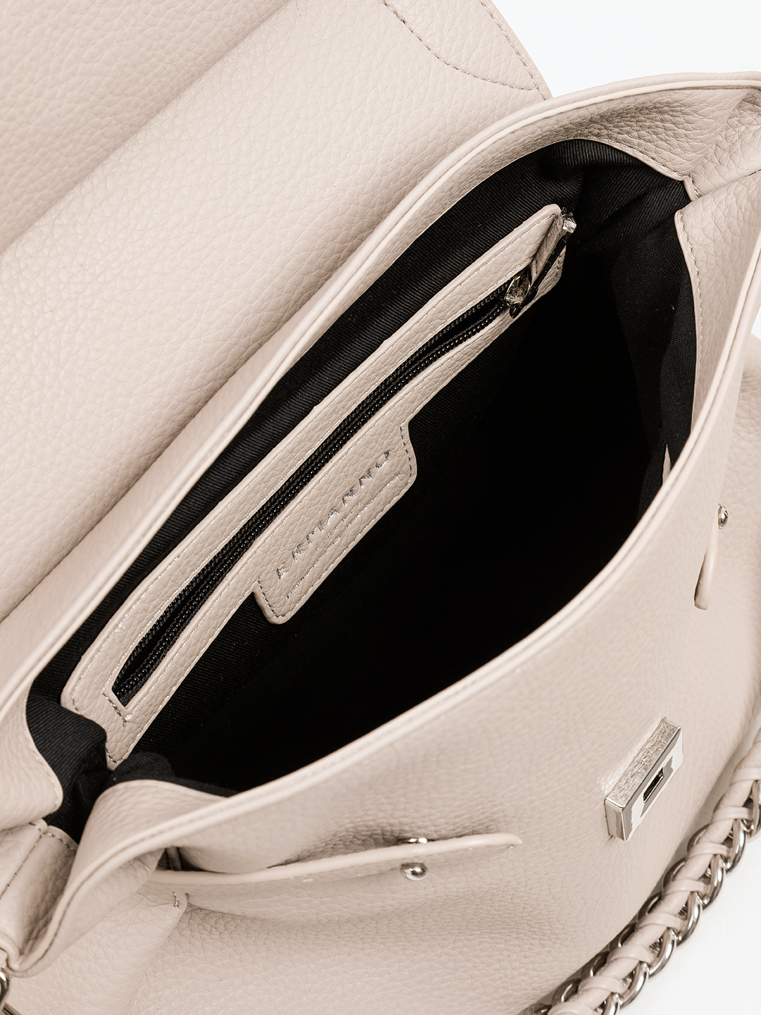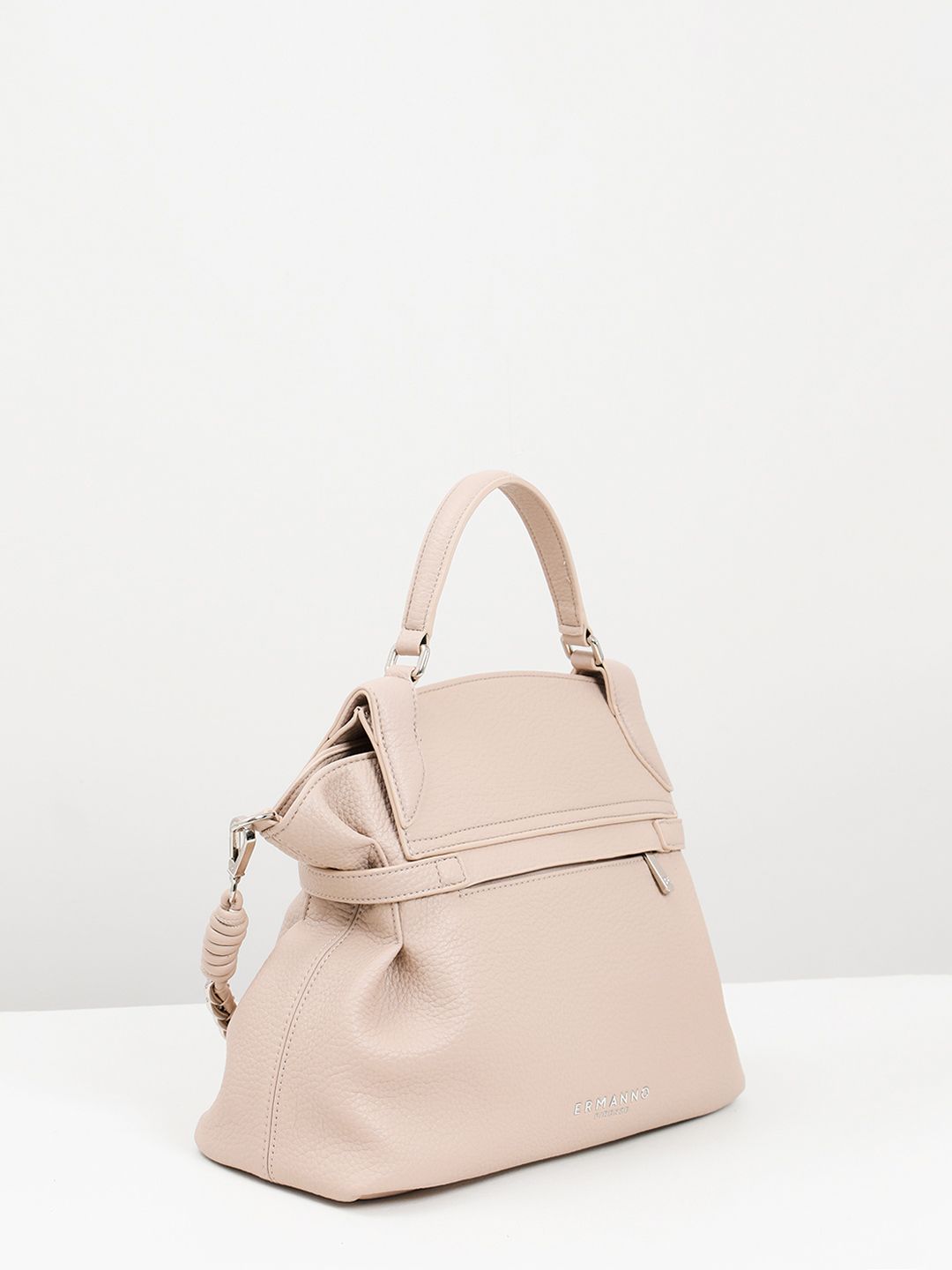 Сумка-кисет с серебристой фурнитурой и комбинированной ручкой от ERMANNO FIRENZE песочного оттенка